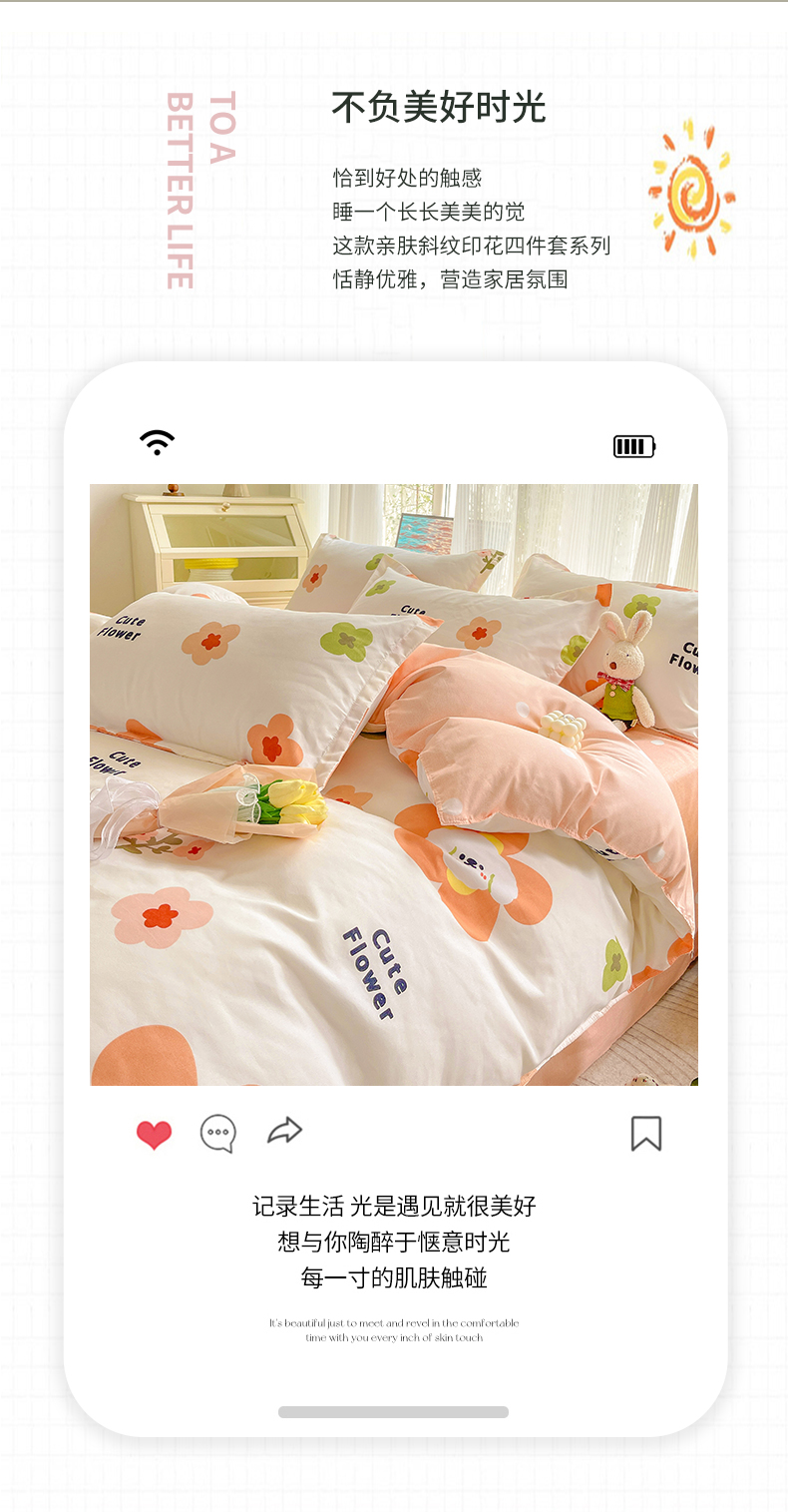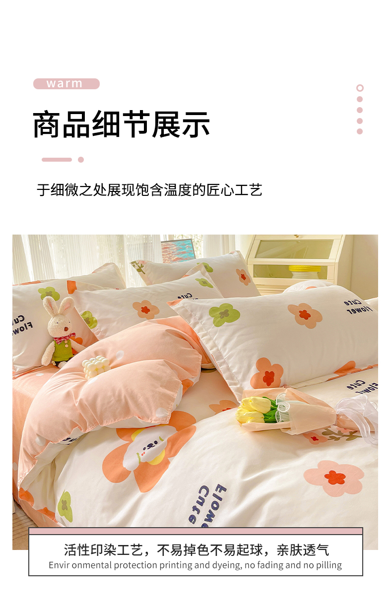 商品名称:文黛家居 2025新款植物羊绒亲肤小版花单被套 花香怡人-桔