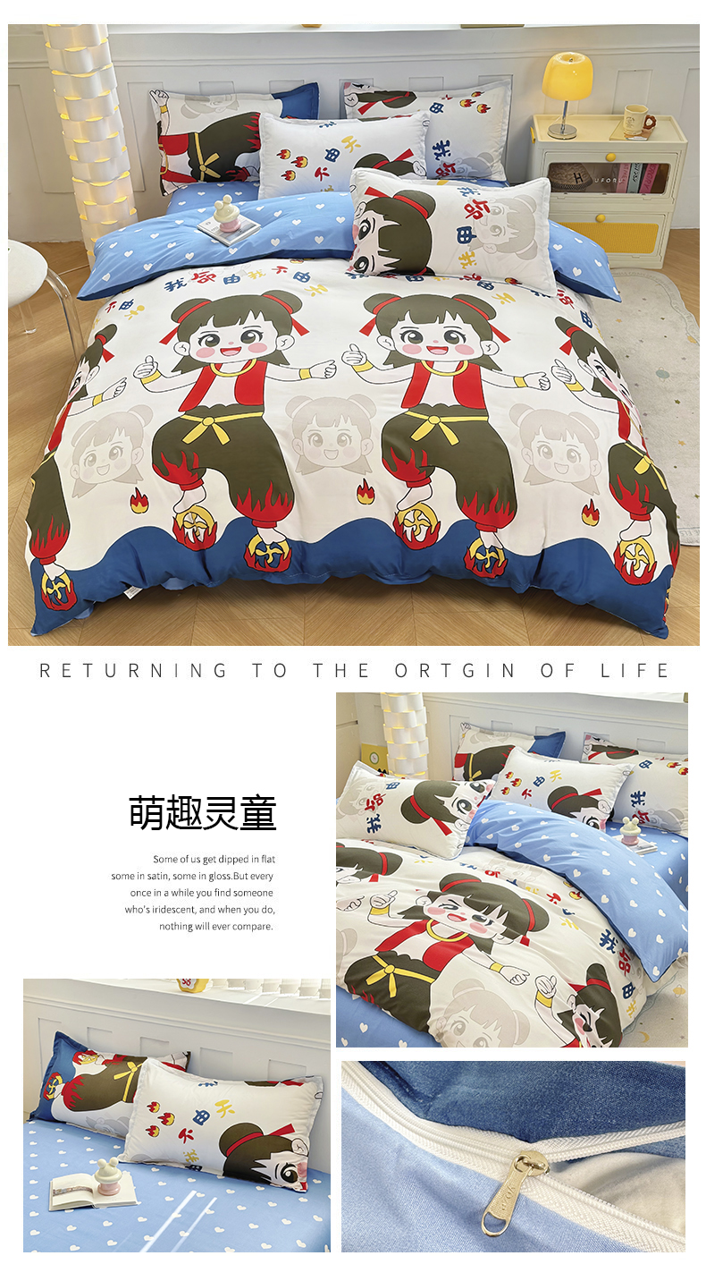 商品名称:佑泽家纺 2025活性印花芦荟棉四件套 萌趣灵童