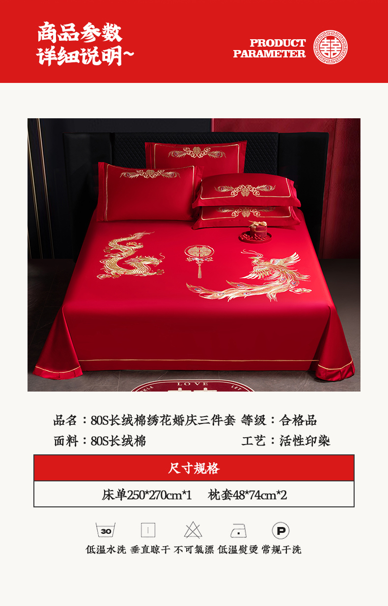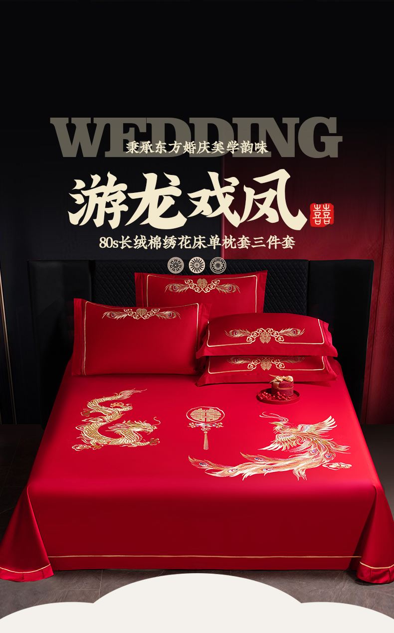 商品名称:千禧家纺 2024新款长绒棉绣花婚庆三件套 游龙戏凤