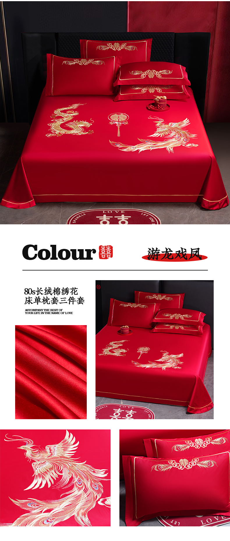 (总)千禧家纺 2025新款长绒棉绣花婚庆三件套,百年好合,花团锦簇,盘龙飞凤,喜结良缘,新婚快乐,游龙戏凤,乘龙配凤,花开并蒂,龙凤合鸣,钟爱一生,钟爱一生 本色,爱情永固,白首之约,欢天喜地,佳偶天成,江山如画,两情相悦,龙飞凤舞,龙跃凤鸣,吾家有喜