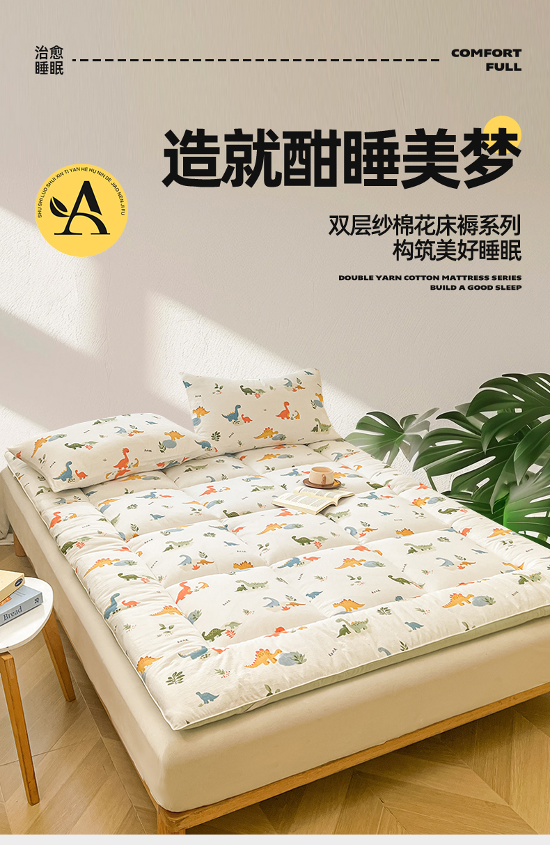 • 91家纺网 家纺一手货源 找家纺 雯豆2025秋冬新品棉花床褥床垫床护垫加厚双层纱学学生宿舍床褥子 棉花床褥-恐龙
