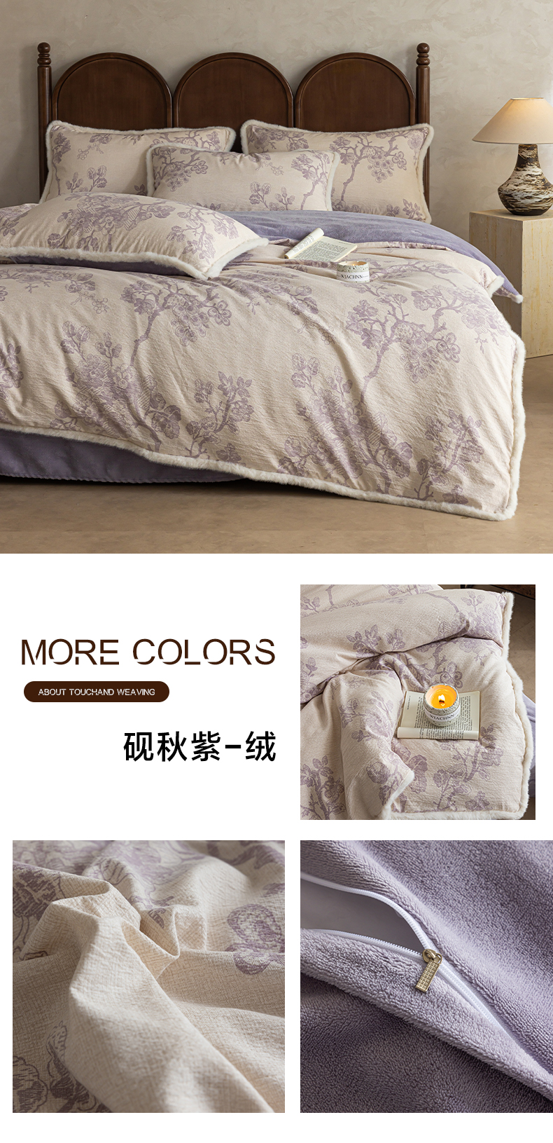 商品名称:迷尚家居 2025新款复古色织棉麻牛奶绒棉加绒四件套 砚秋紫-绒