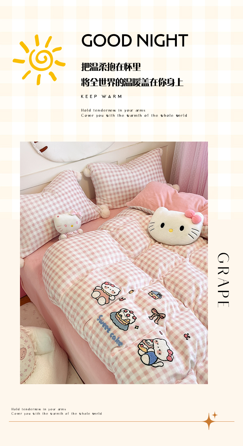 (总)川悦生活 2025新款立体雪花绒印花四件套学生床系列一场景一,ins樱桃,爱米兔,冰激凌小熊,波波熊,啵啵草莓,彩虹爱心粉,彩虹爱心蓝,彩虹爱语粉,彩虹爱语蓝,哒哒鸭丫,嘎嘎小熊,橘兔,可爱熊,可可小狗,快乐鸭鸭,蜜语奶兔,奶芙小花,奶咖小熊,奶味云朵,妮娜兔,巧克力熊,桃心爱语,甜蜜日常粉,甜系粉熊,甜系龙龙,小熊花园,幸福甜兔,熊小巴,郁金奶兔