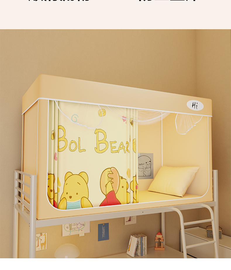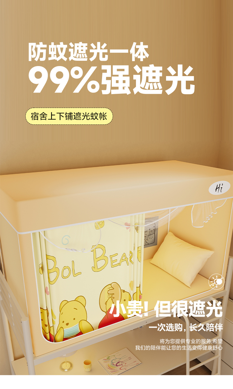 当前位置: 91家纺网 > 商品网购 > 床上用品 > 蚊帐 > 学生蚊帐 > 安金蚊帐2025新款防蚊遮光一体99%强遮光学生宿舍上下铺遮光学生蚊帐-黄色系列 尼尼熊