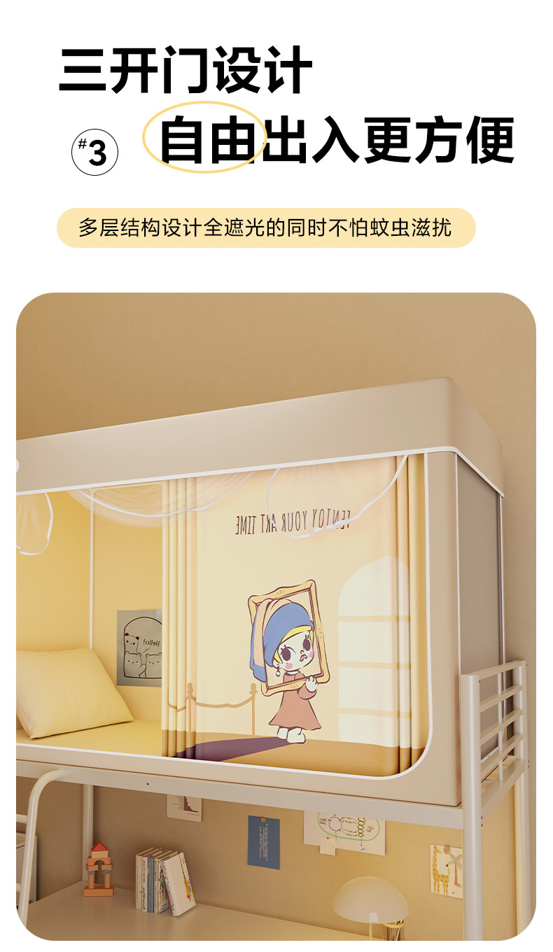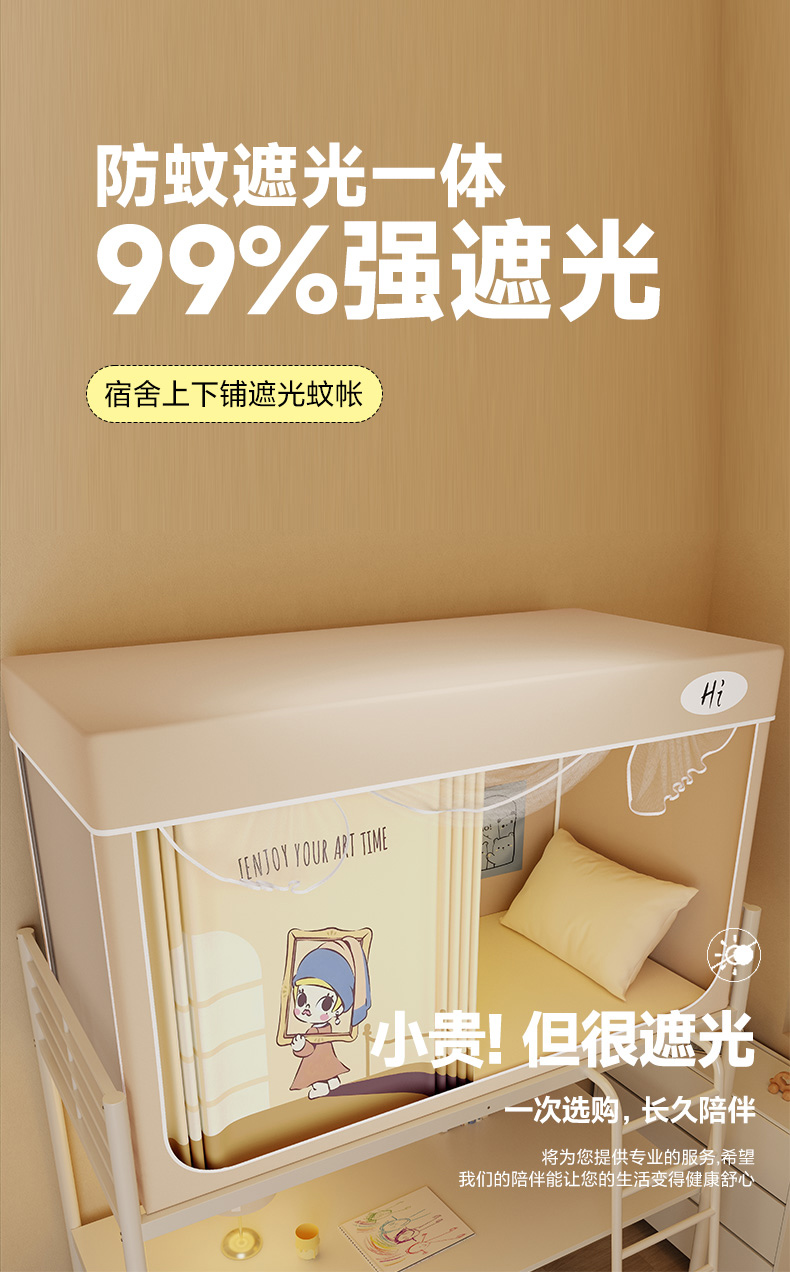 当前位置: 91家纺网 > 商品网购 > 床上用品 > 蚊帐 > 学生蚊帐 > 安金蚊帐2025新款防蚊遮光一体99%强遮光学生宿舍上下铺遮光学生蚊帐-卡其系列 蒙娜莉