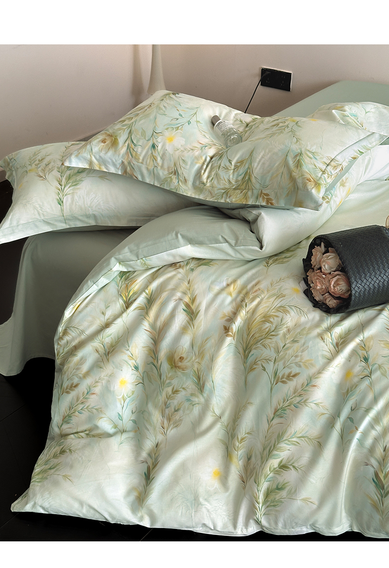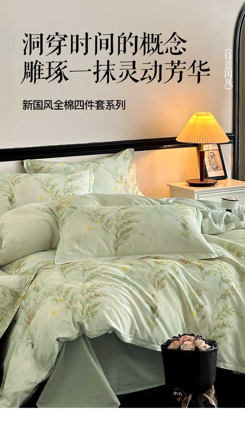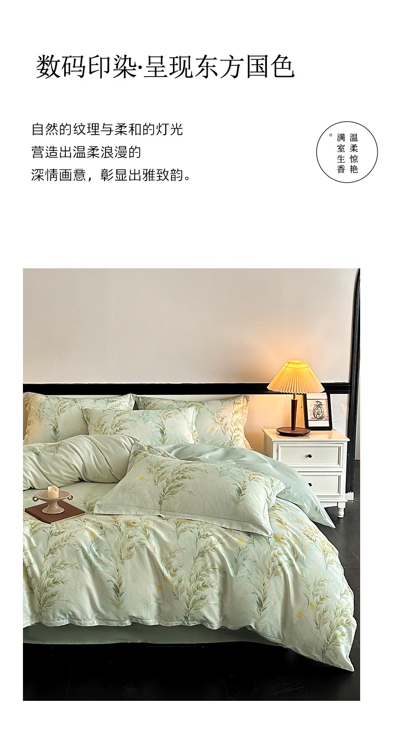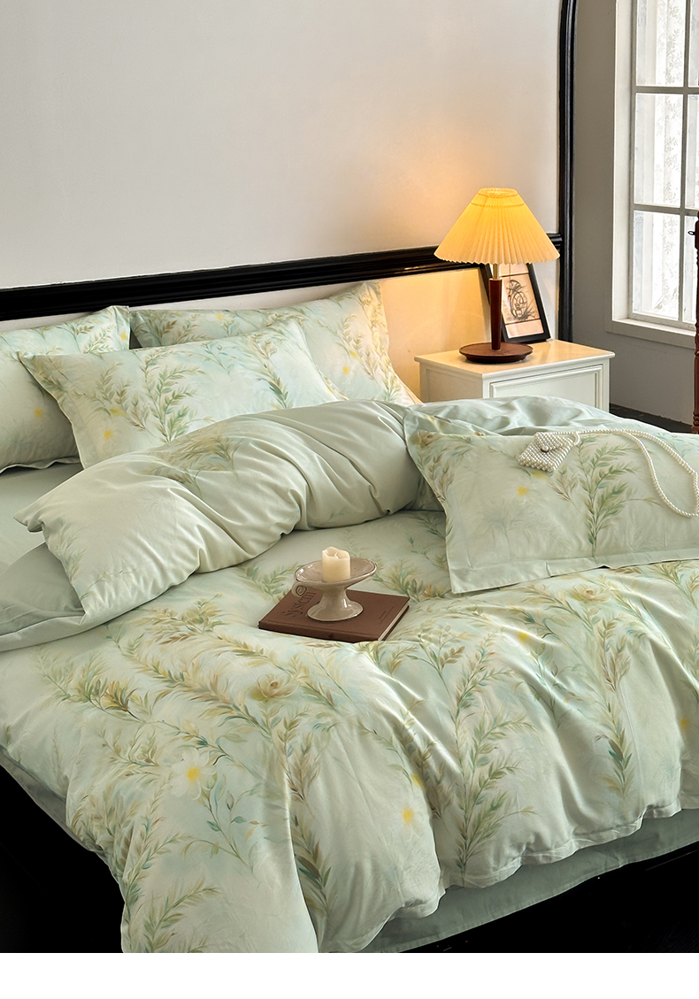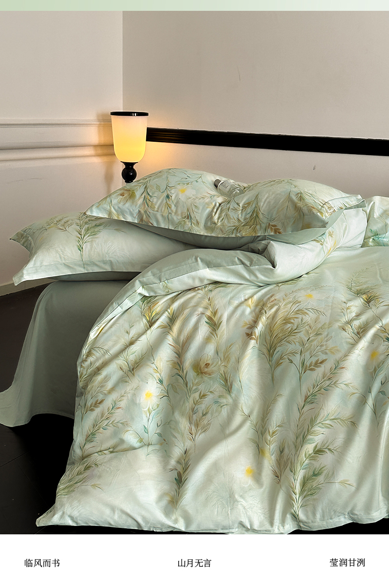 当前位置: 91家纺网 > 商品网购 > 床品套件 > 四件套 > 全棉普通四件套 > 金鑫汇家纺 2025新款13372全棉纯棉高端数码印花四件套 幽兰生香-绿