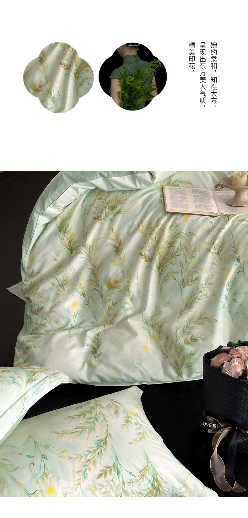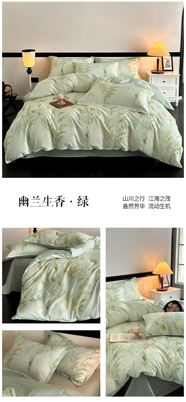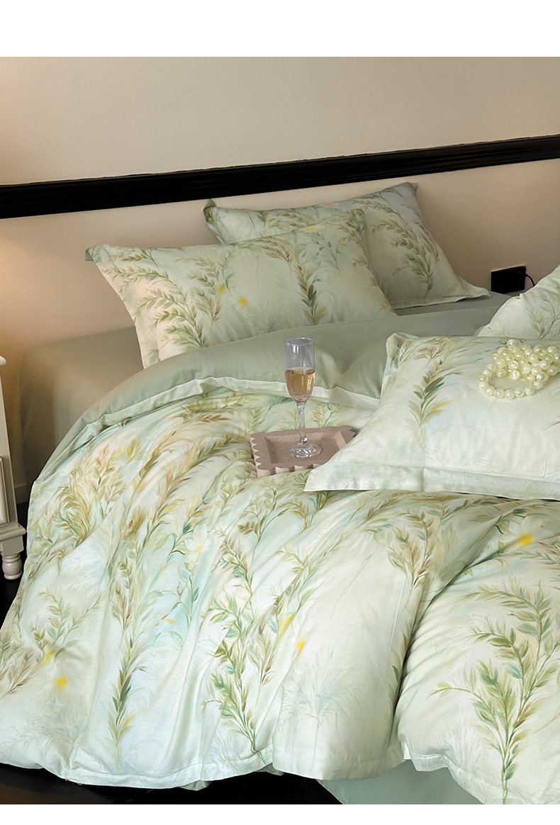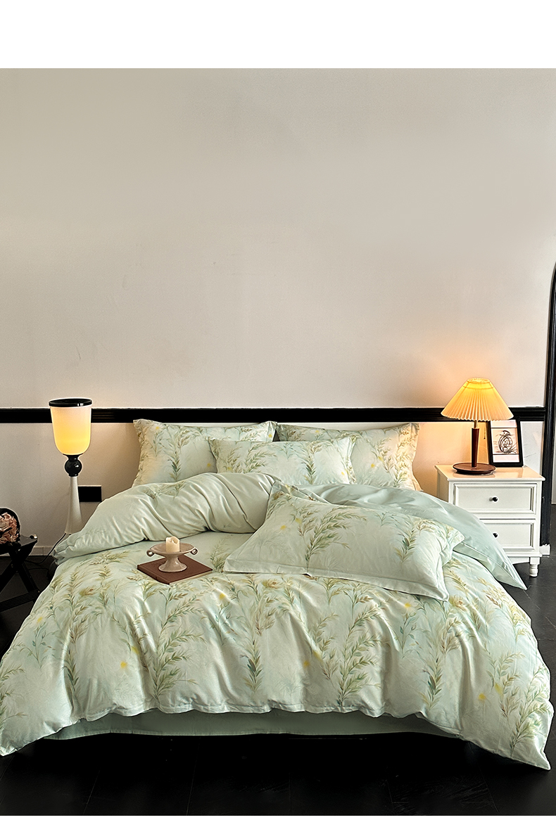 当前位置: 91家纺网 > 商品网购 > 床品套件 > 四件套 > 全棉普通四件套 > 金鑫汇家纺 2025新款13372全棉纯棉高端数码印花四件套 幽兰生香-绿