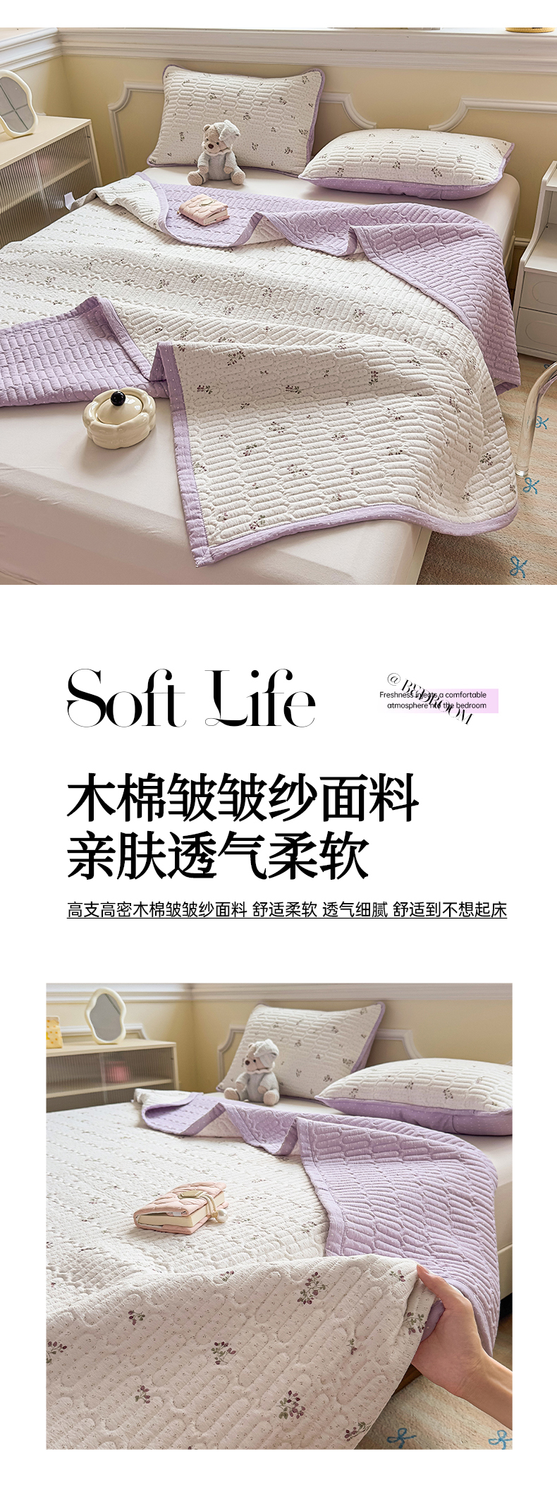 商品名称:芯元素 2025新款木棉绉绉纱双面可用床盖 紫恋