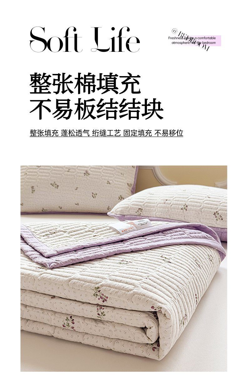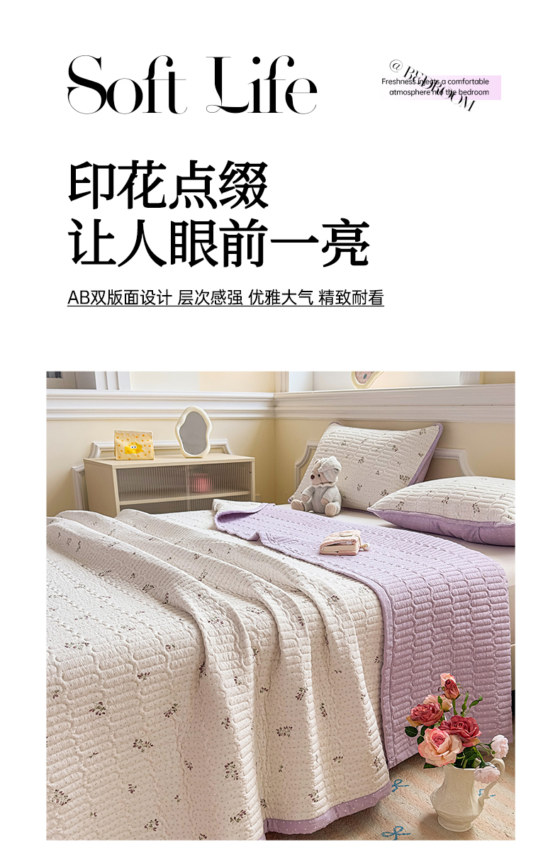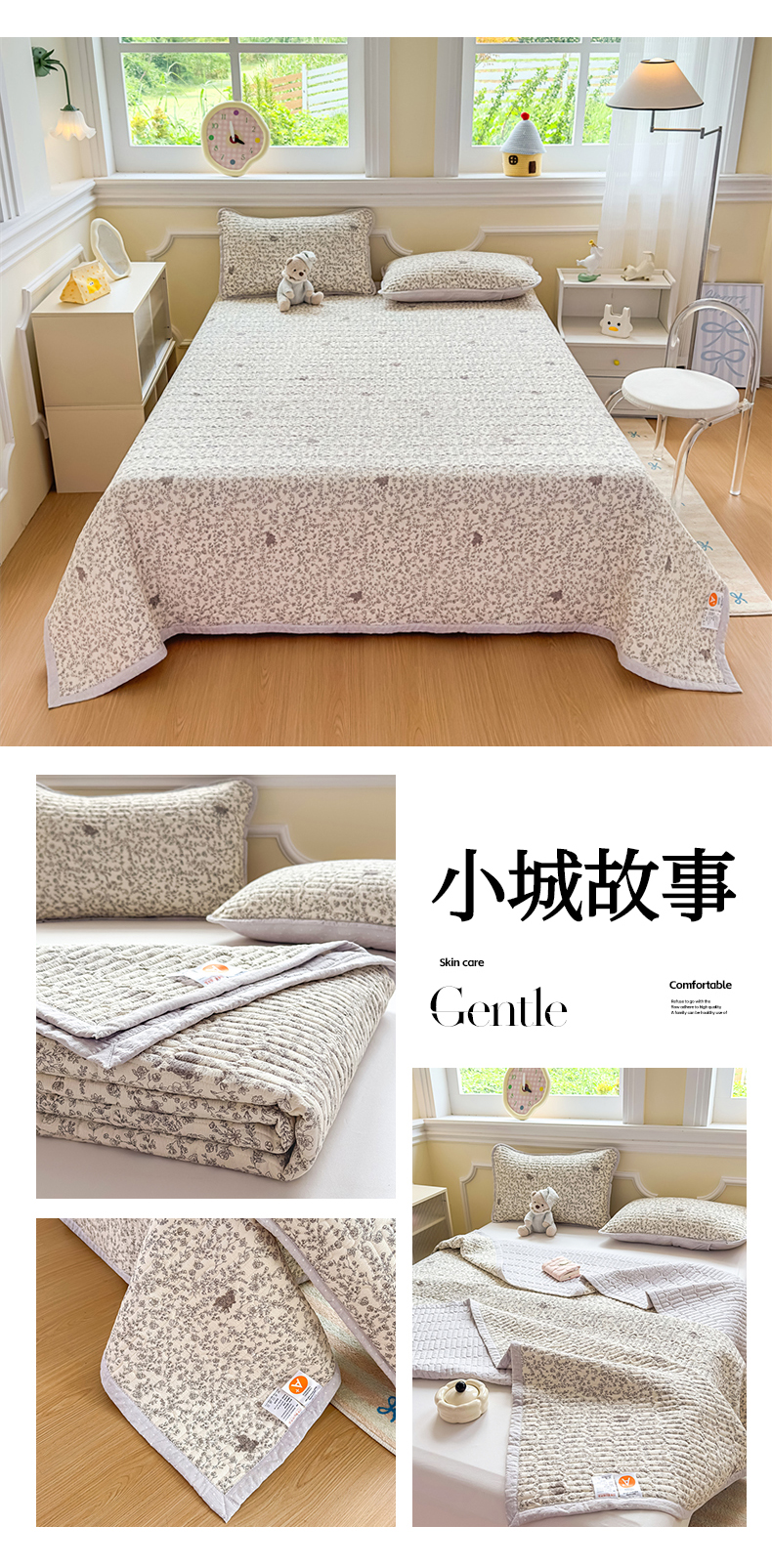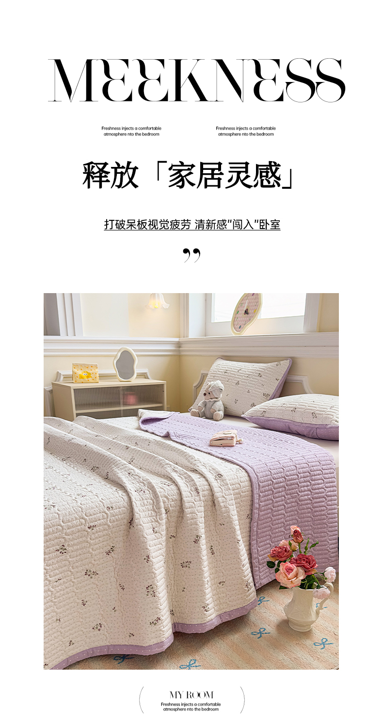 (总)芯元素 2025新款木棉绉绉纱双面可用床盖,紫恋,花季,梦境-灰,梦境-紫,山野栀子,小城故事