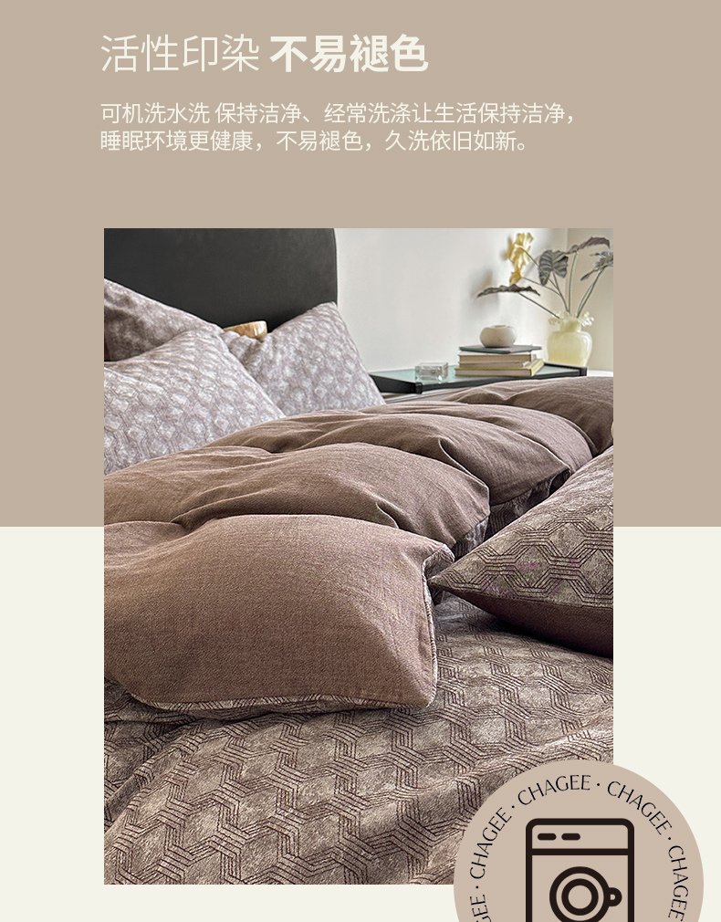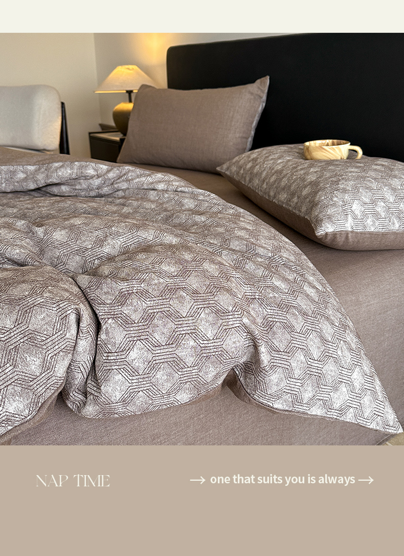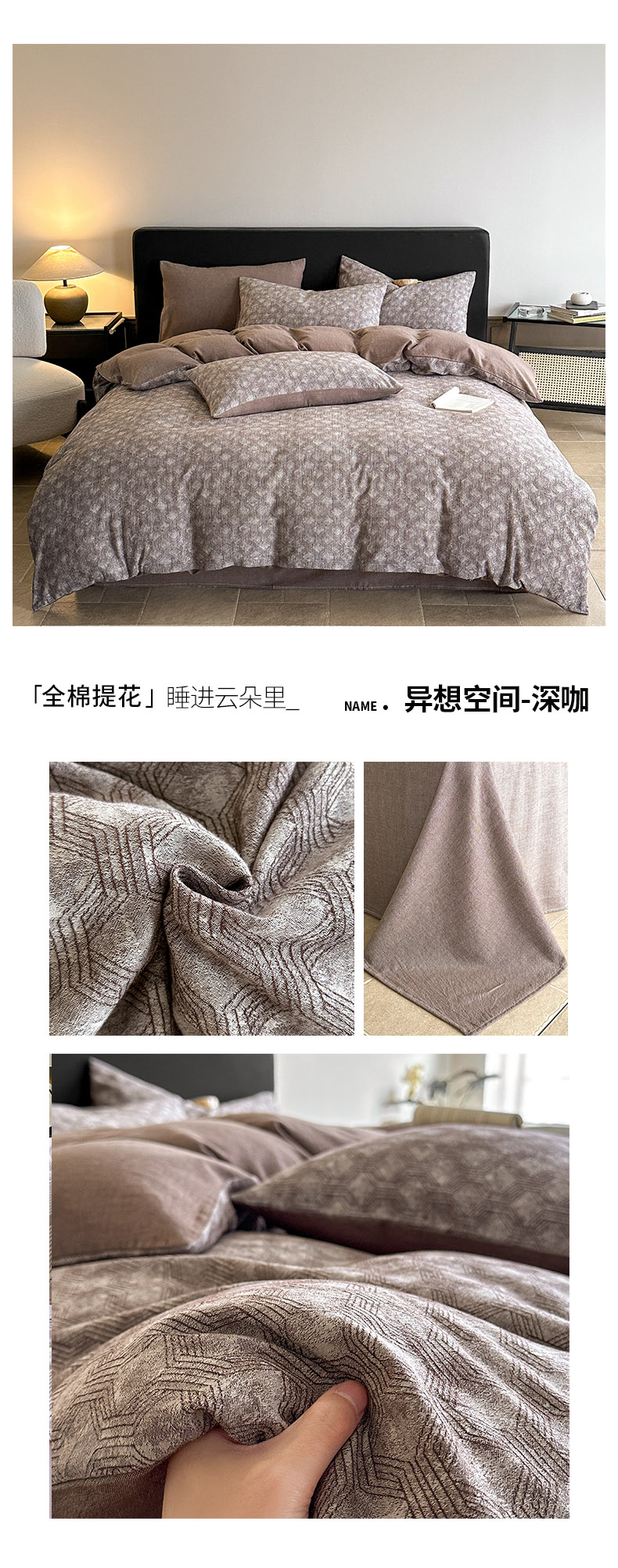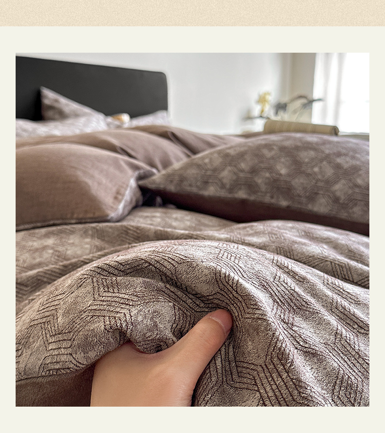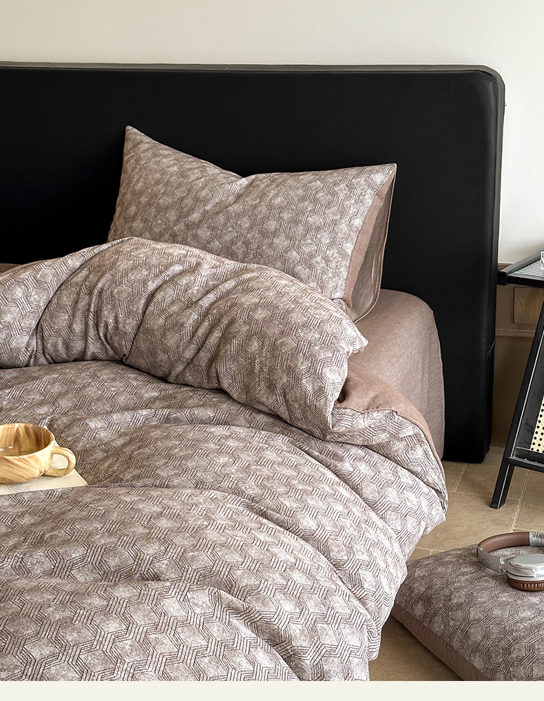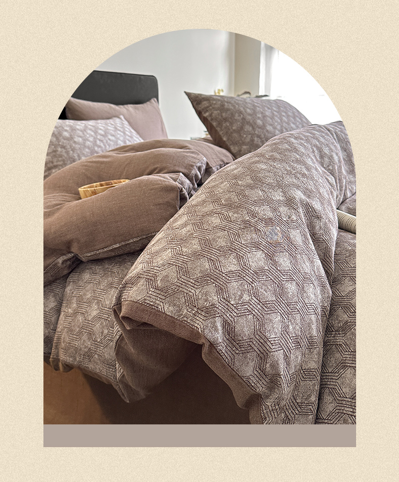当前位置: 91家纺网 > 商品网购 > 床品套件 > 四件套 > 全棉普通四件套 > ab家纺 2025新款全棉纯棉提花四件套-款式二 异想空间-深咖