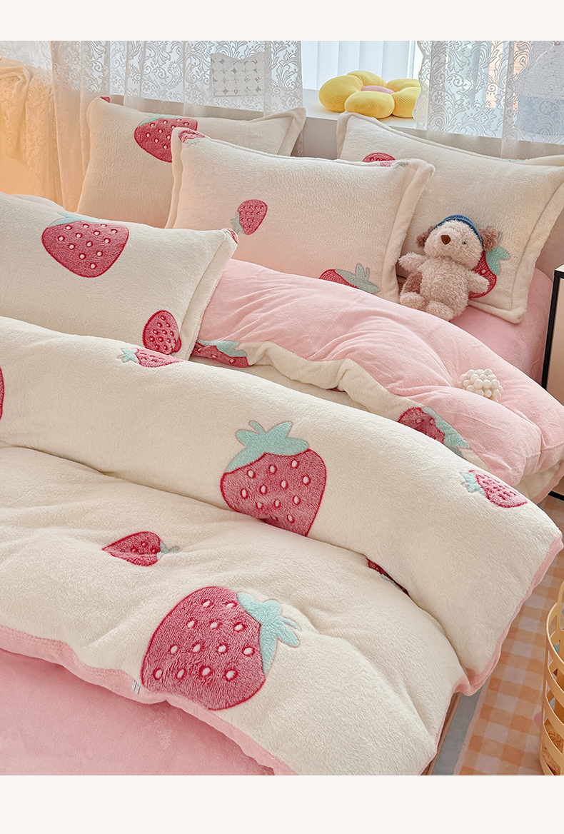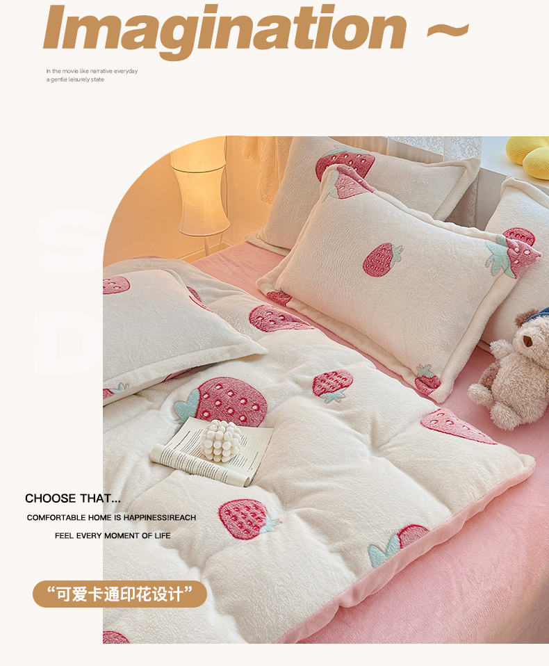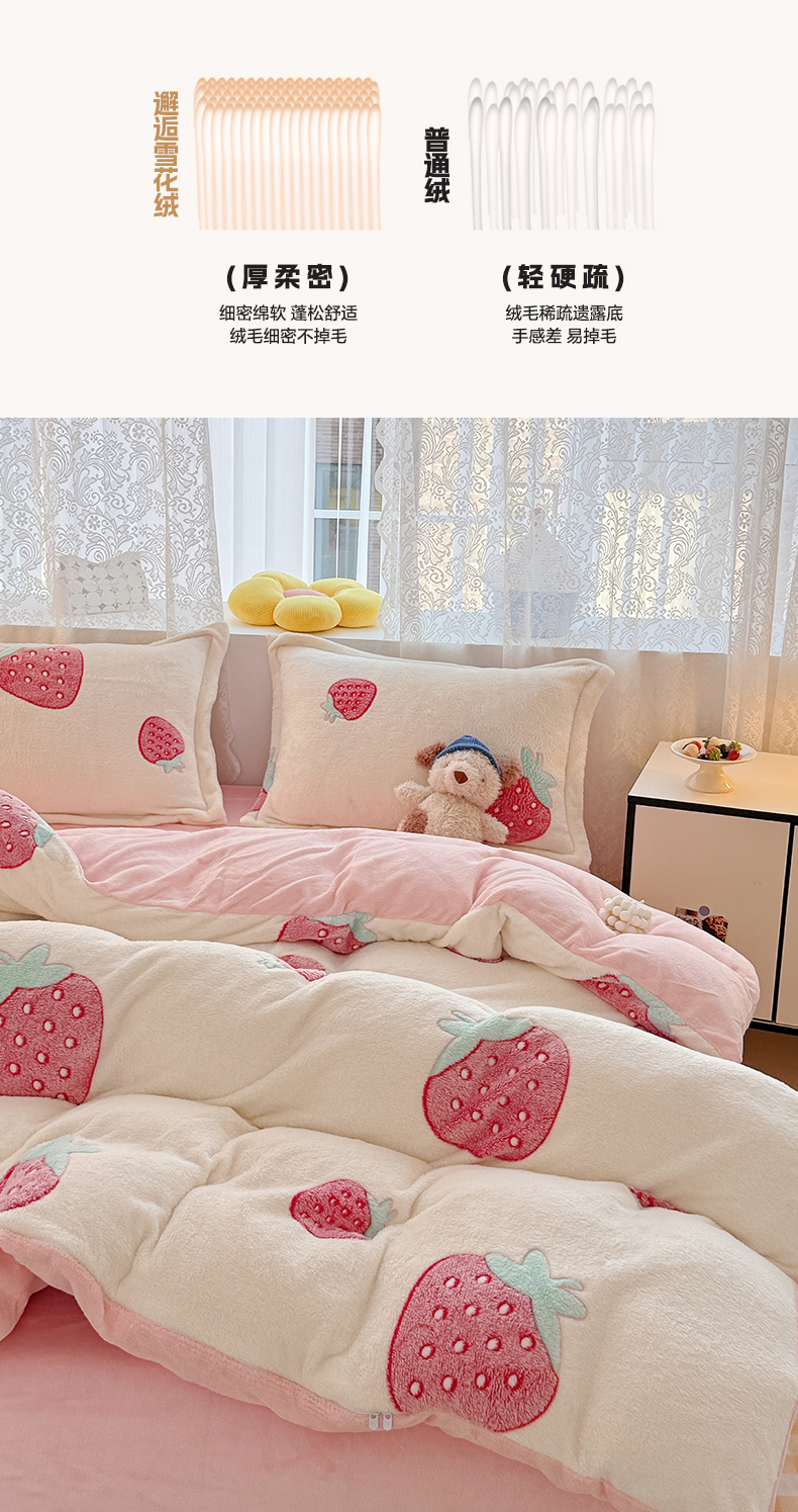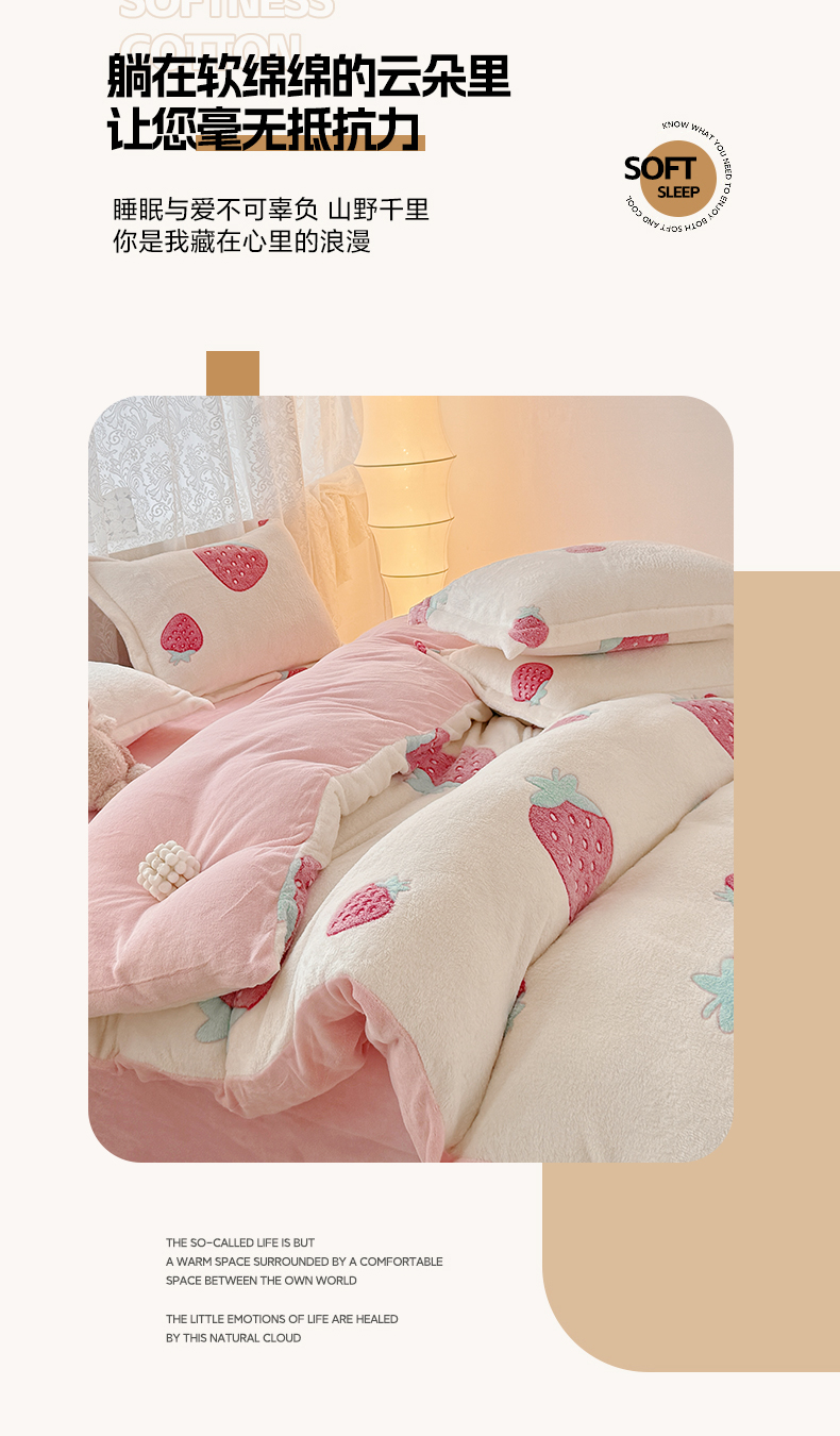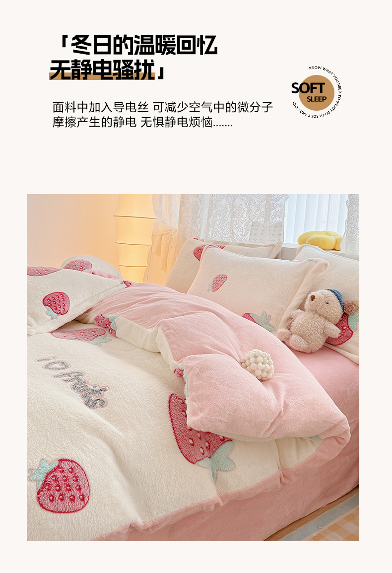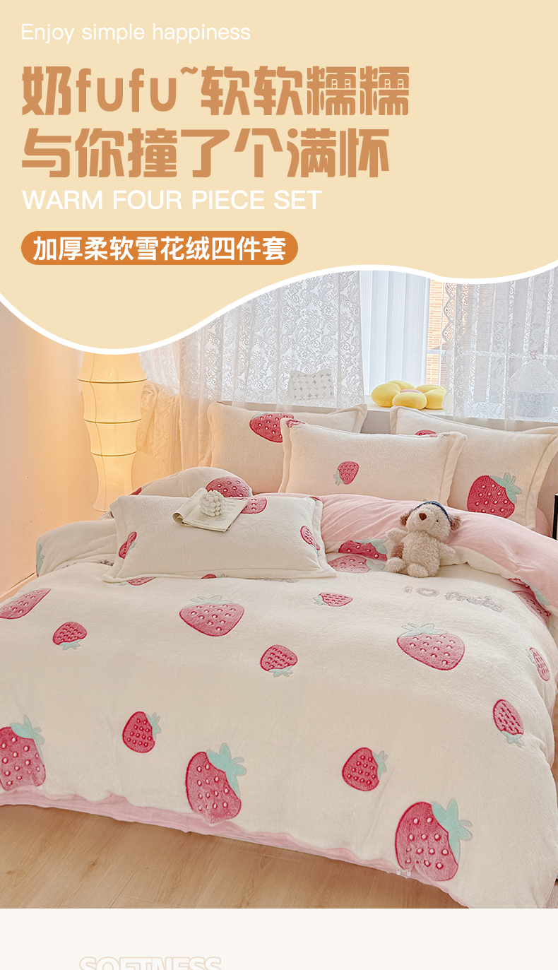 商品名称:曼町家居 2025新款雪花绒四件套 甜心草莓