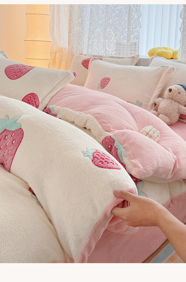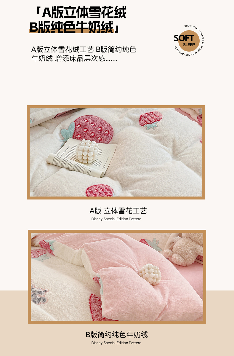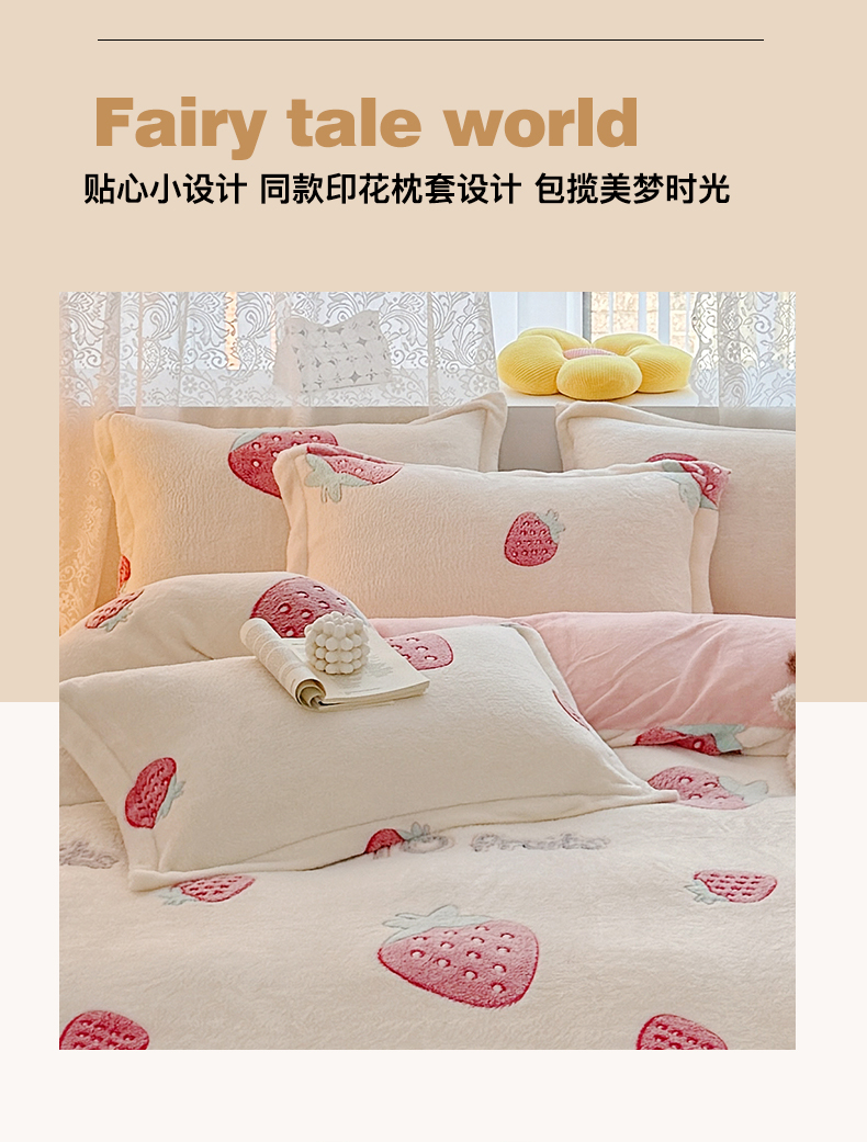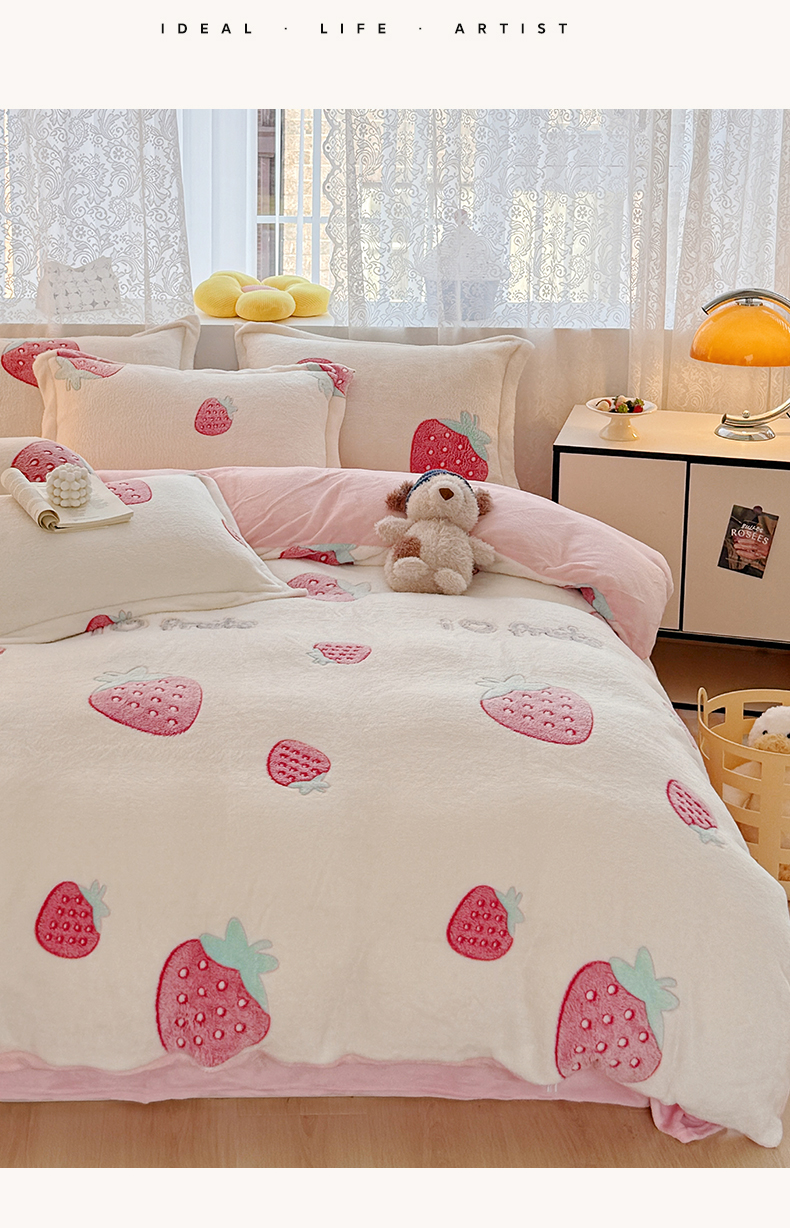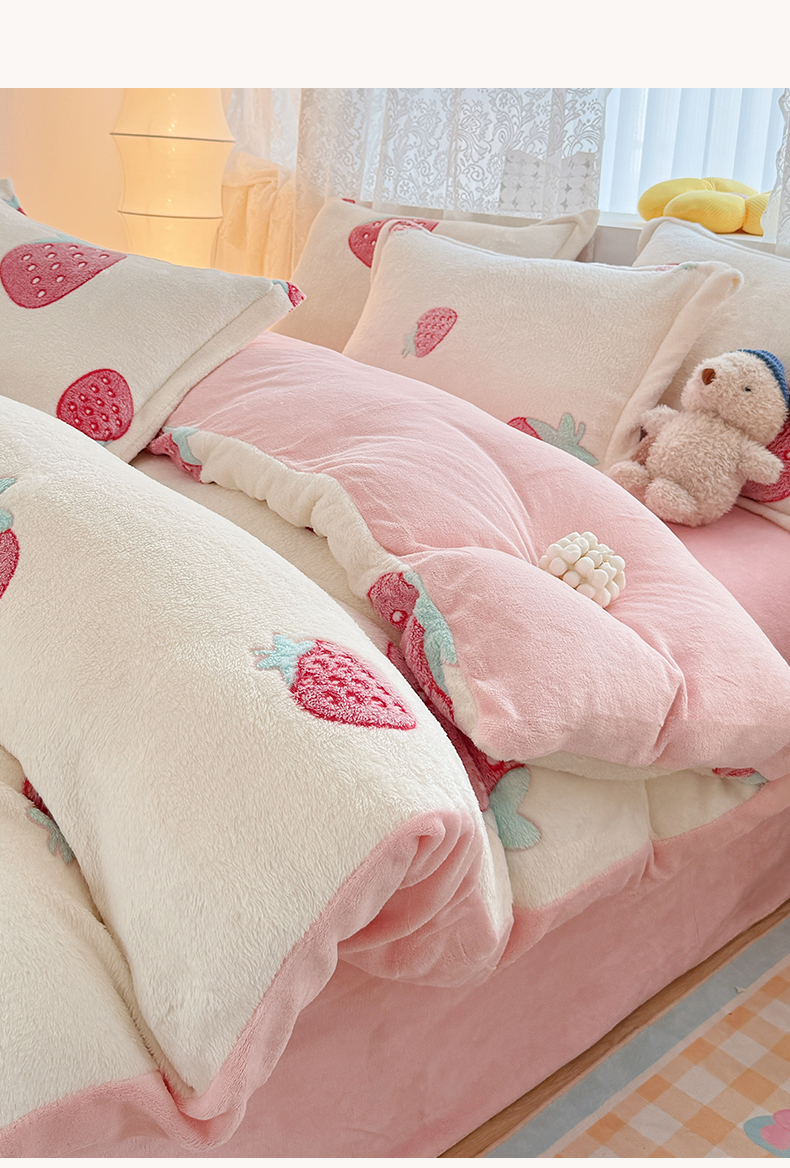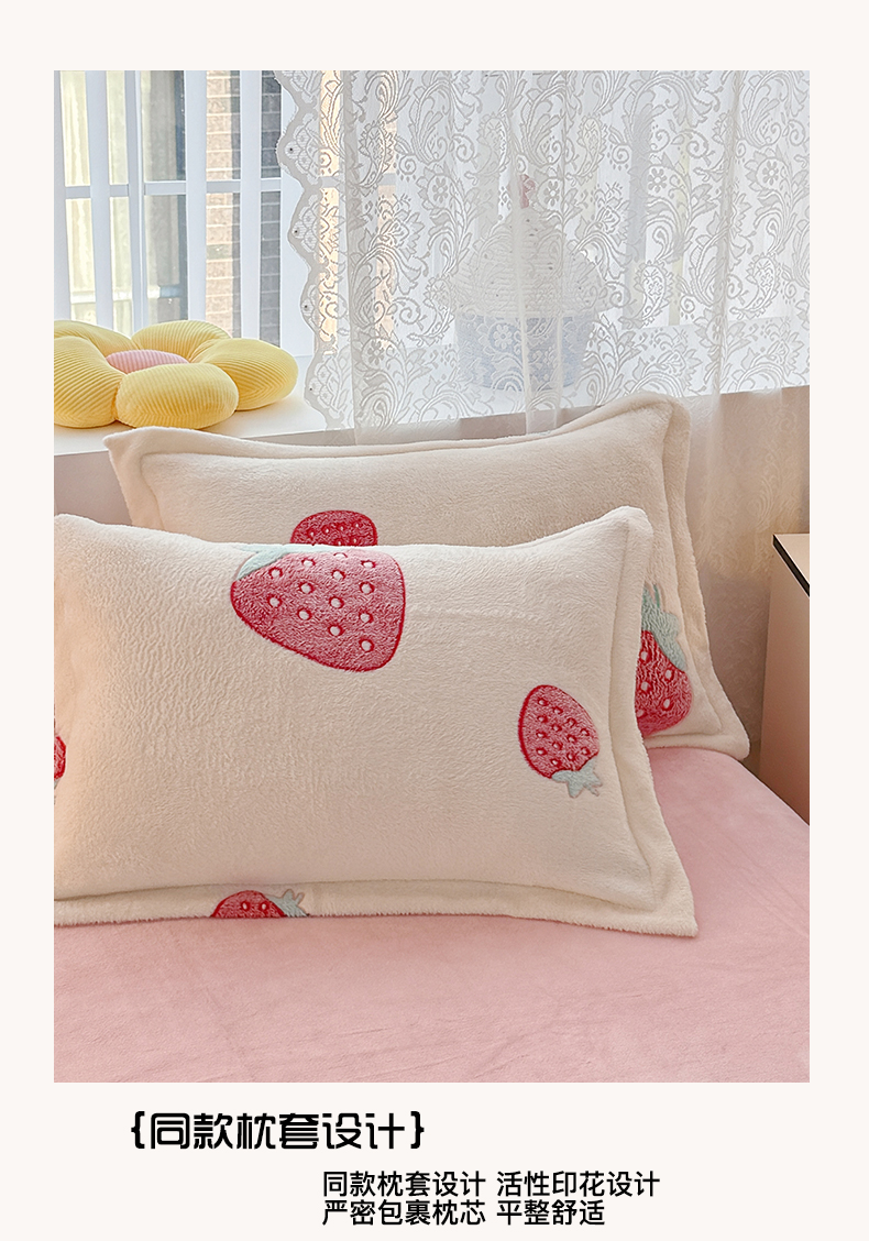 商品名称:曼町家居 2025新款雪花绒四件套 甜心草莓