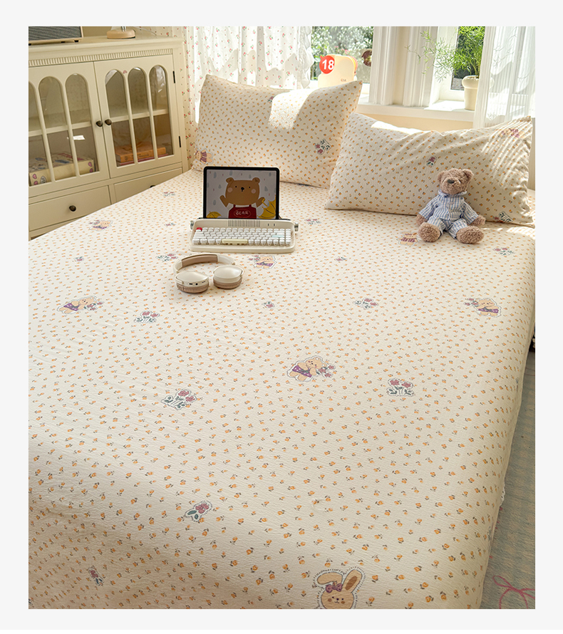 • 91家纺网 家纺一手货源 找家纺 沐芷 2025 A类双层纱花边床单单件 单人双人床单三件套 春日小熊