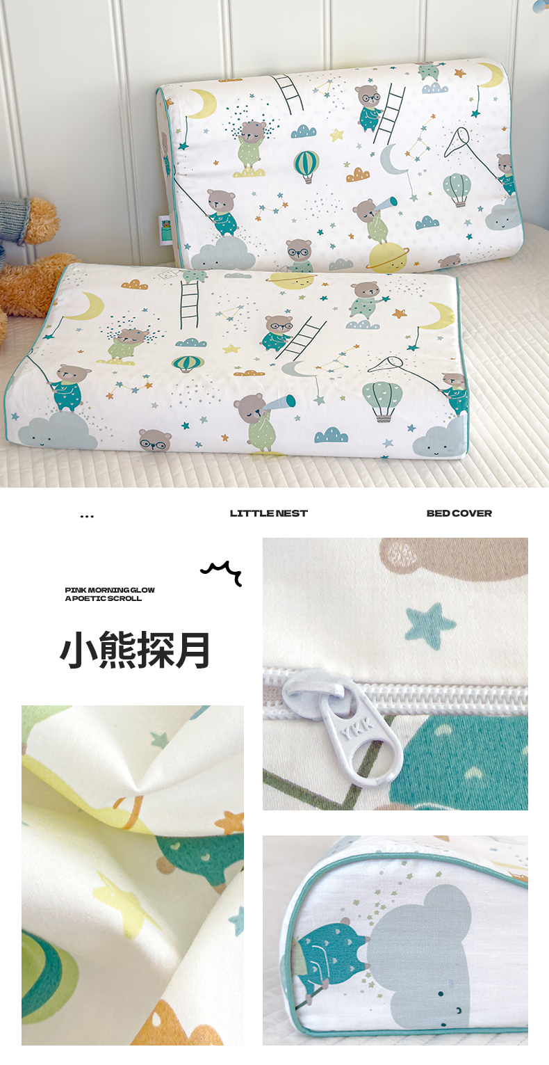 商品名称:良佐生活 2025新款A类60s全棉贡缎乳胶枕套 晚安熊宝