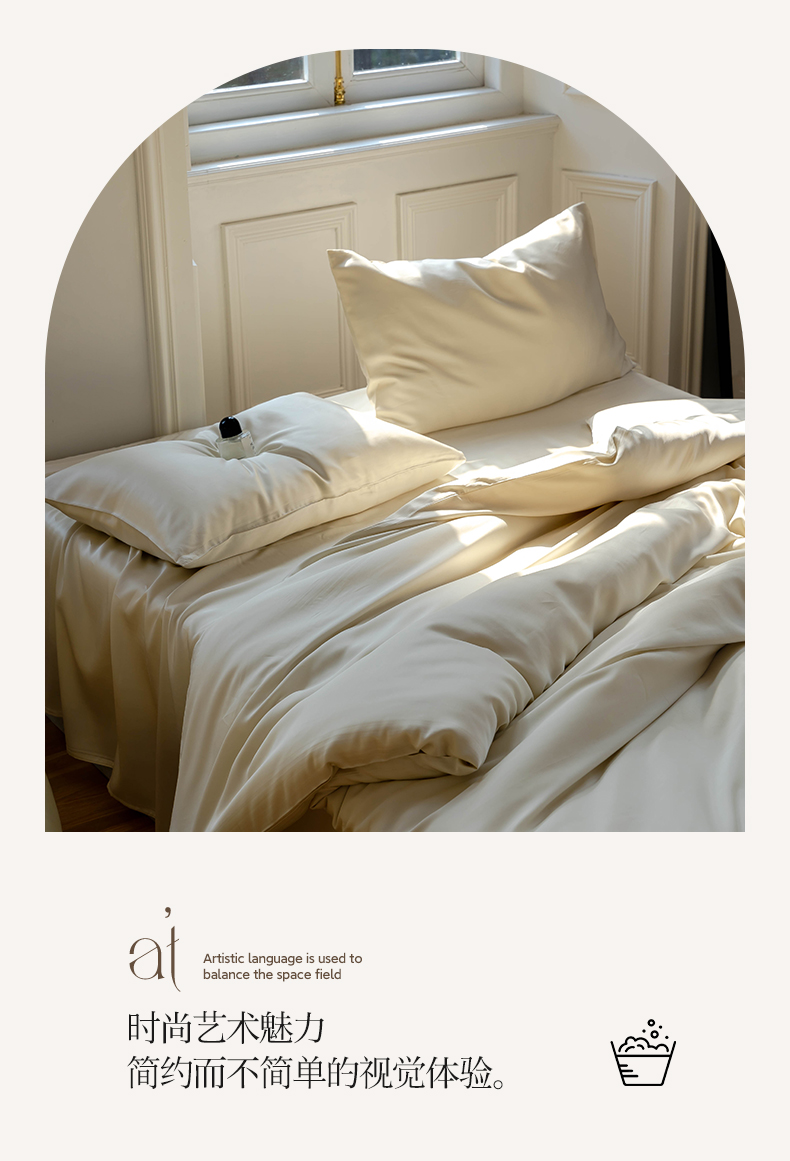 麦田家纺 2025新款A类60S纯色兰精天丝四件套 极地白