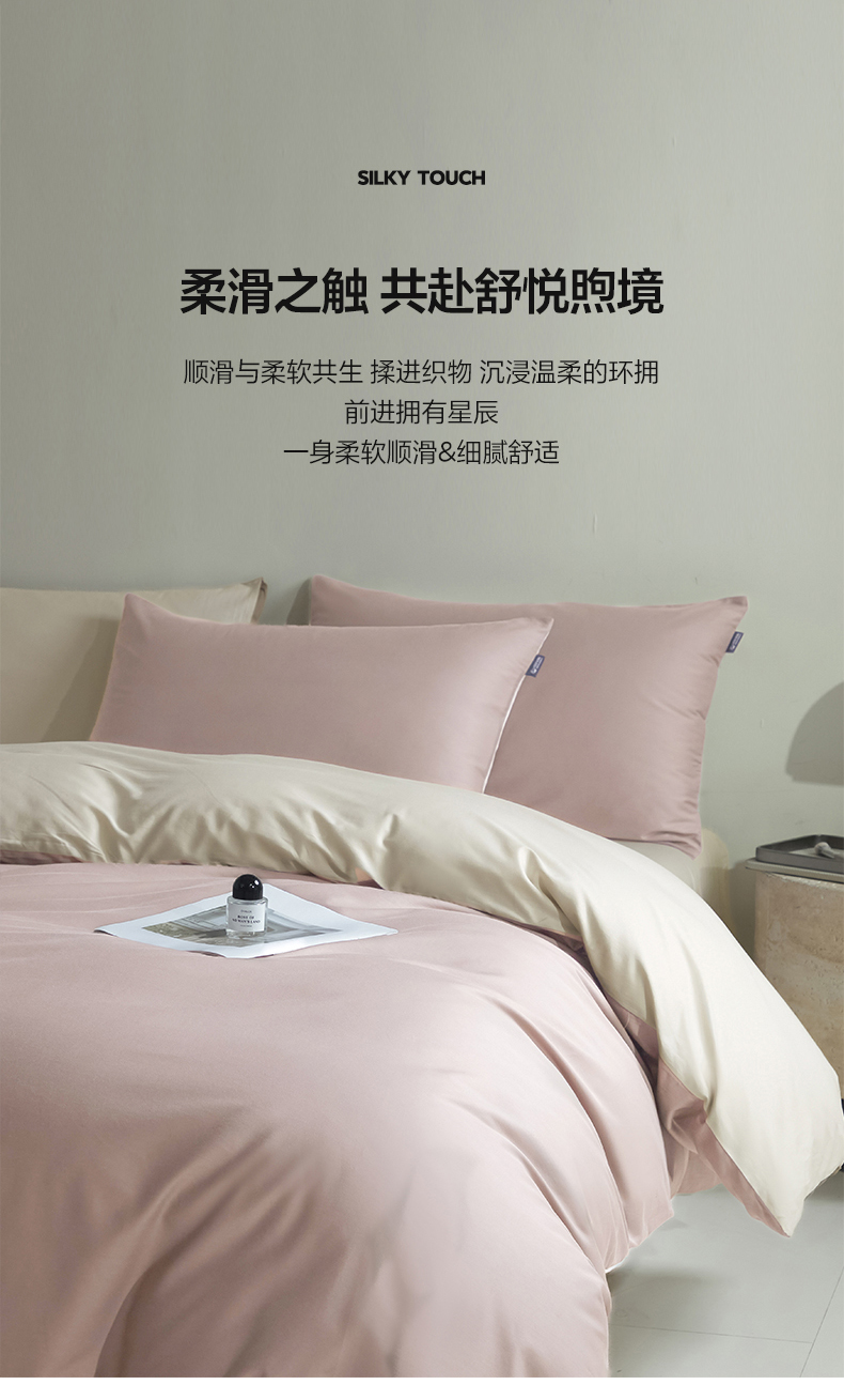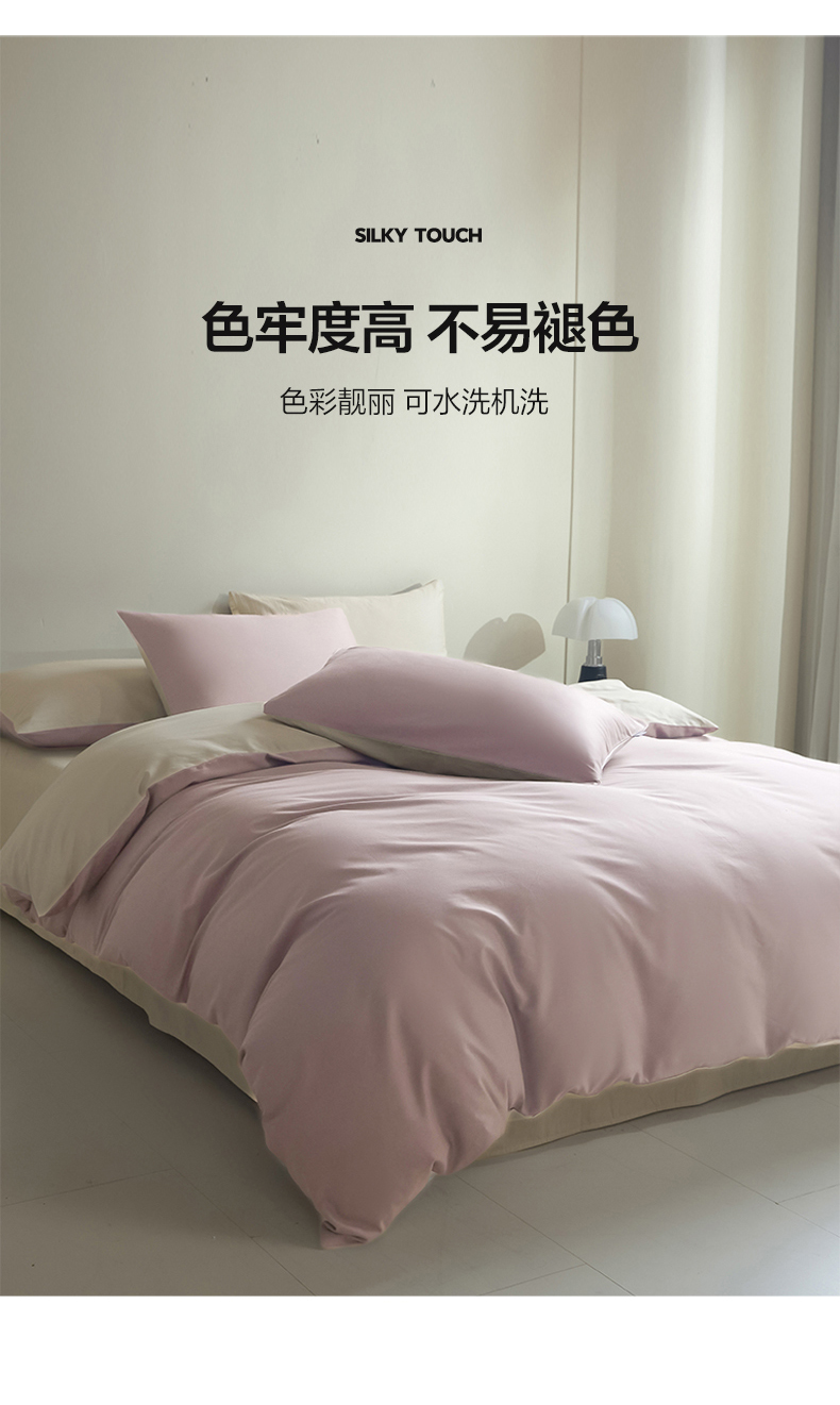 麦田家纺 2025新款A类全棉13372纯色四件套 裸粉奶昔白