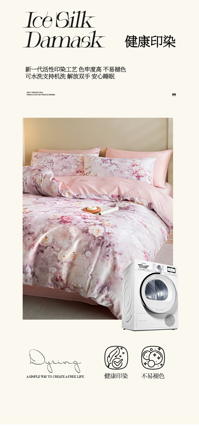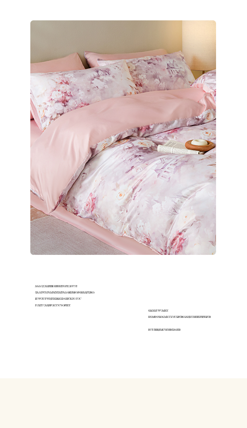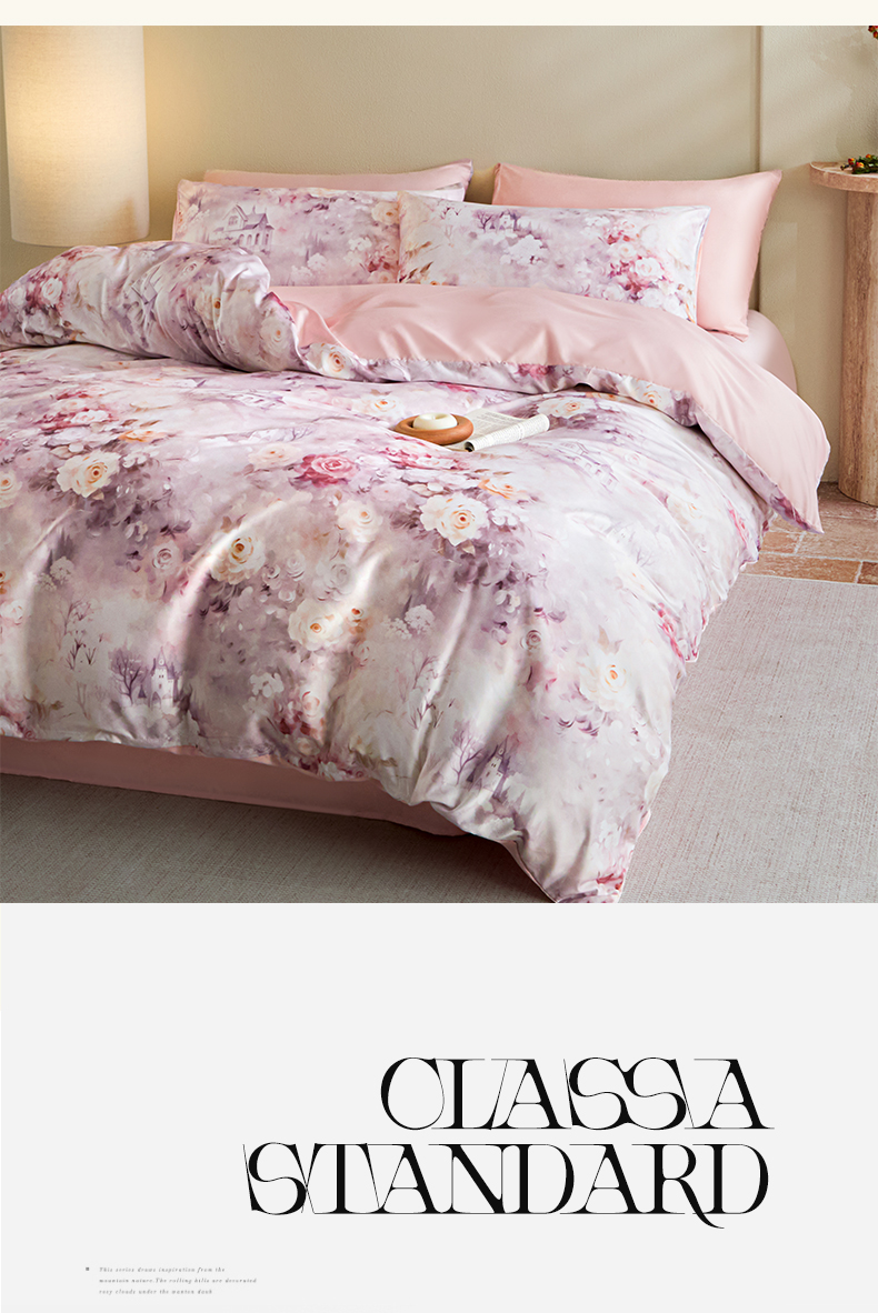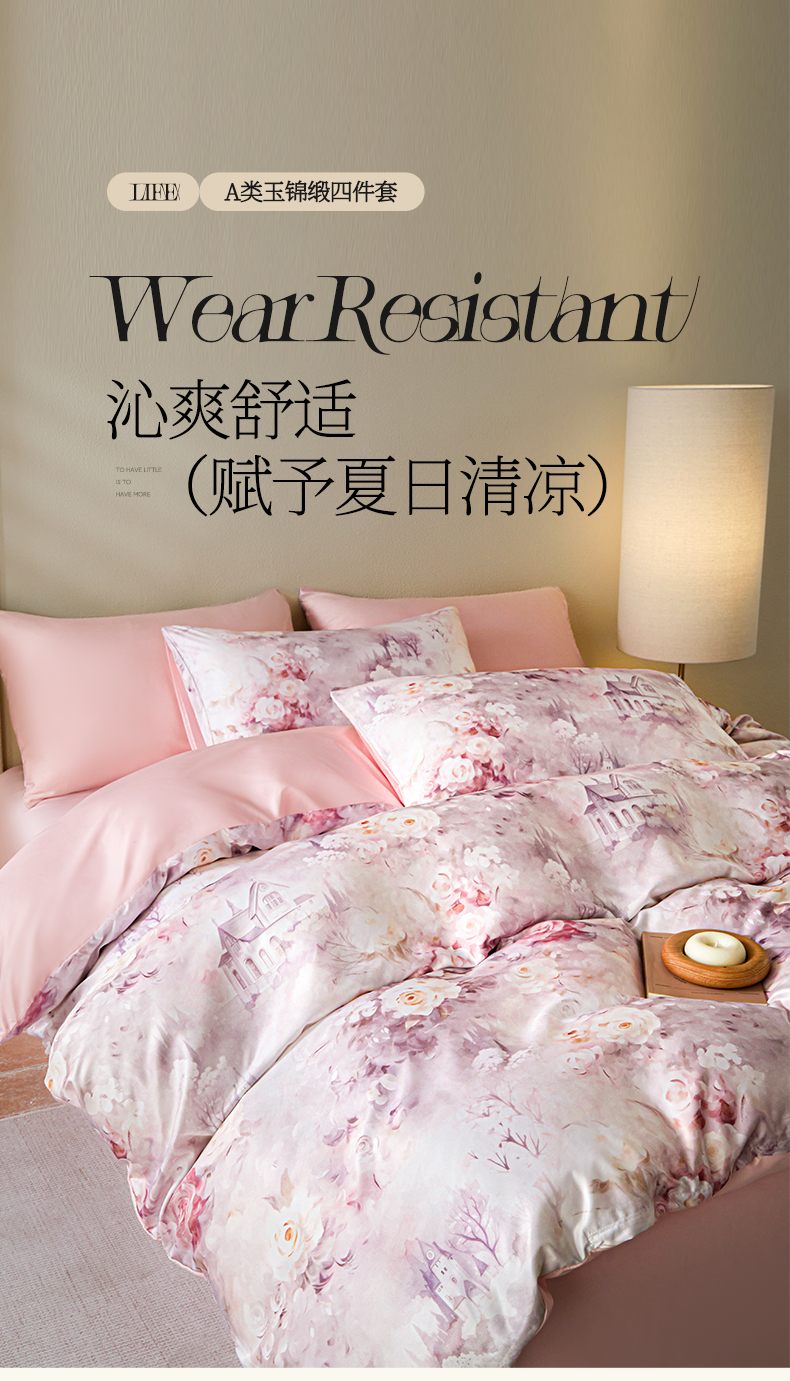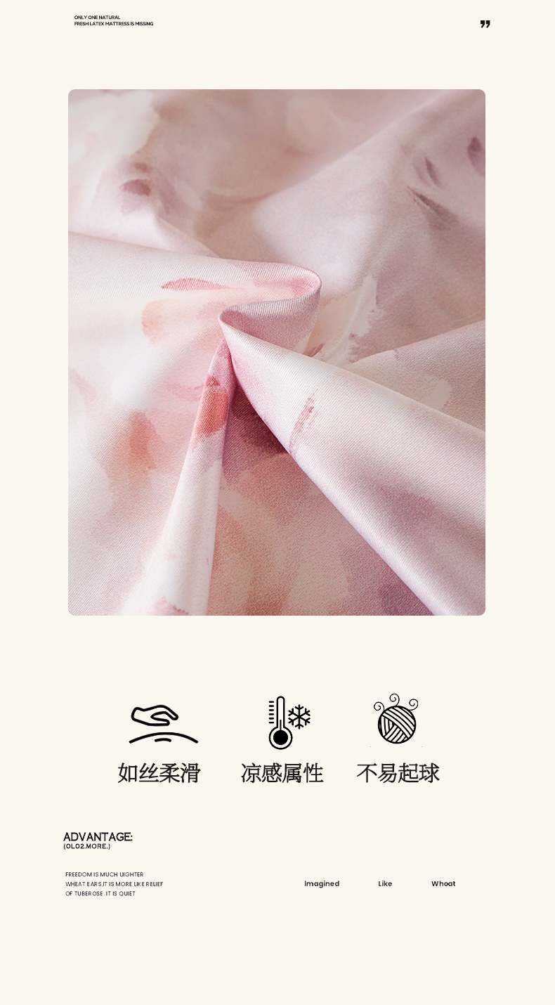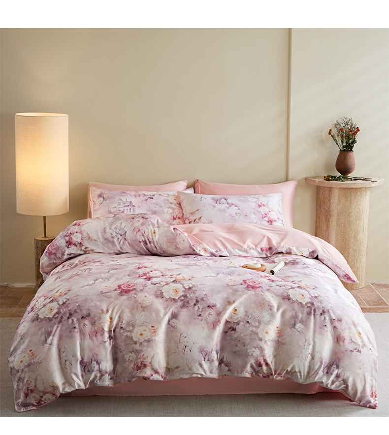 商品名称:麦田家纺 2025新款A类冰丝天丝玉锦缎印花四件套 梦丽雅仙豆沙