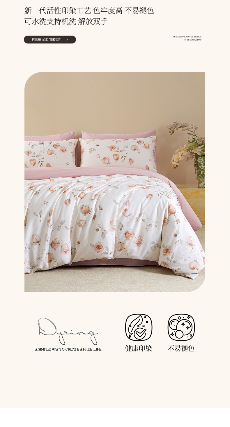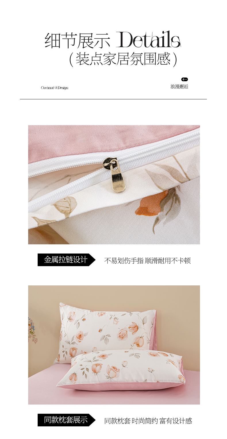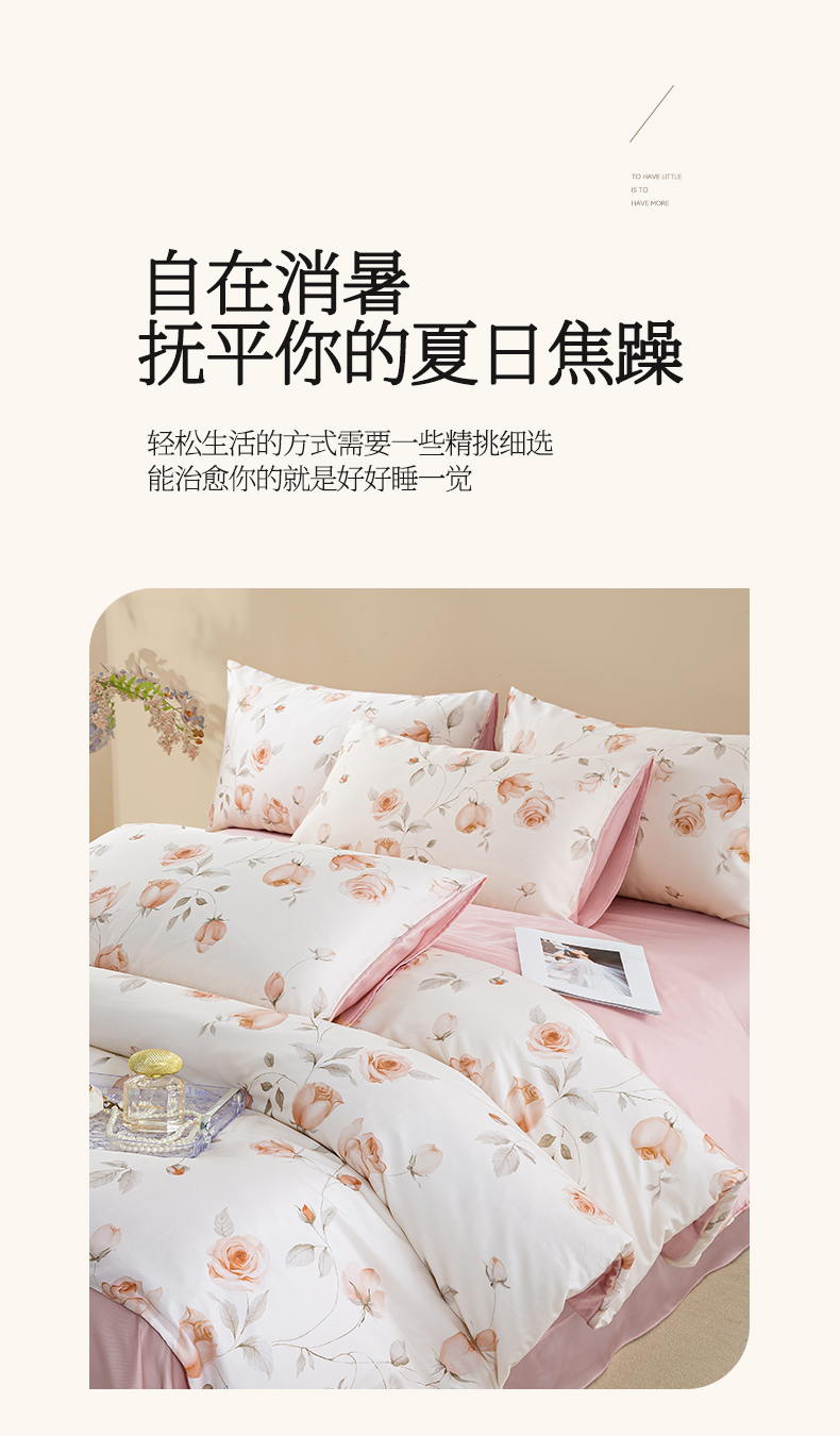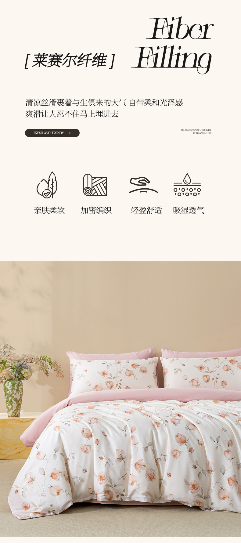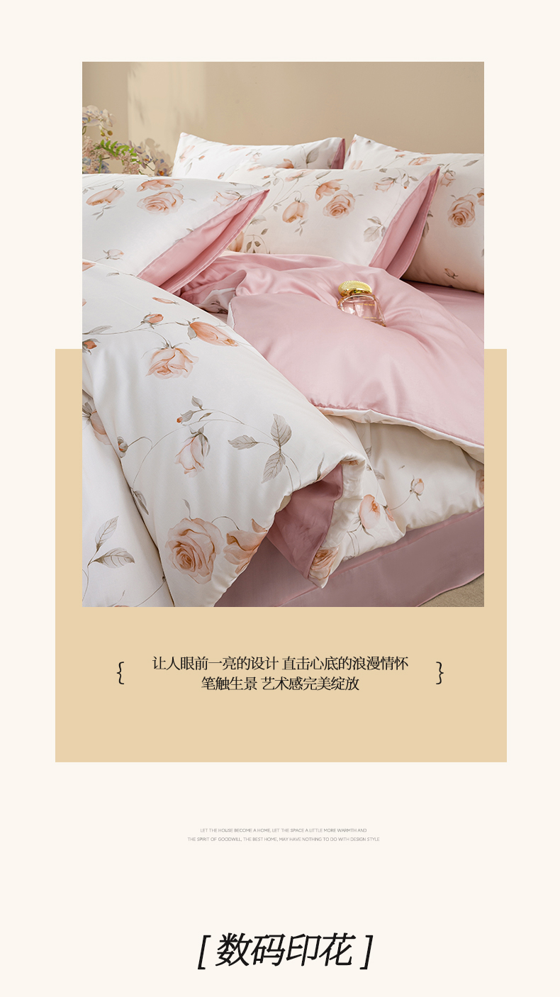 商品名称:麦田家纺 2025新款50S莱赛尔天丝印花四件套 花艺盈香-粉