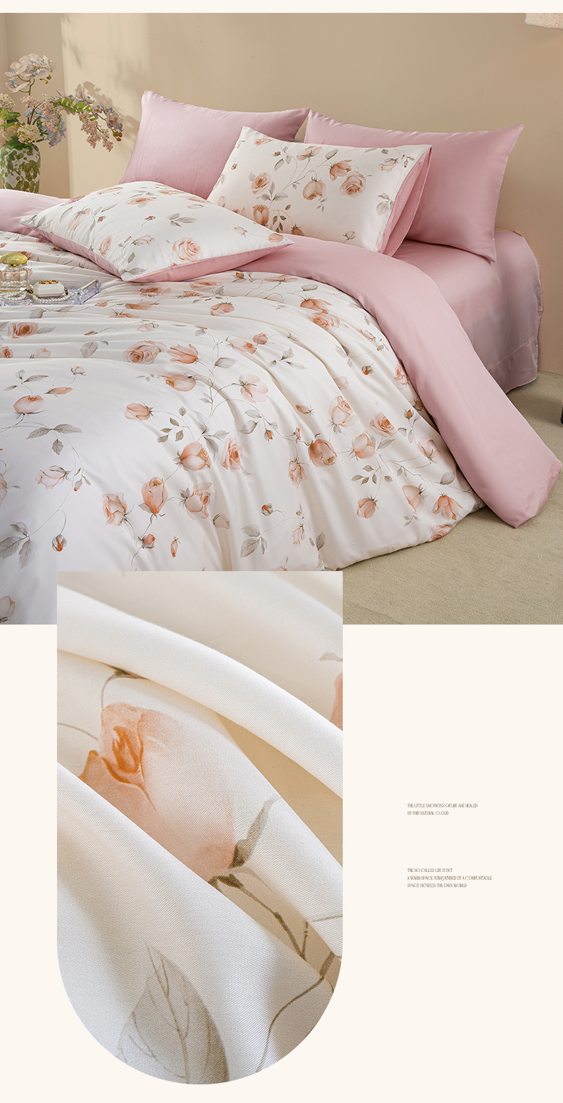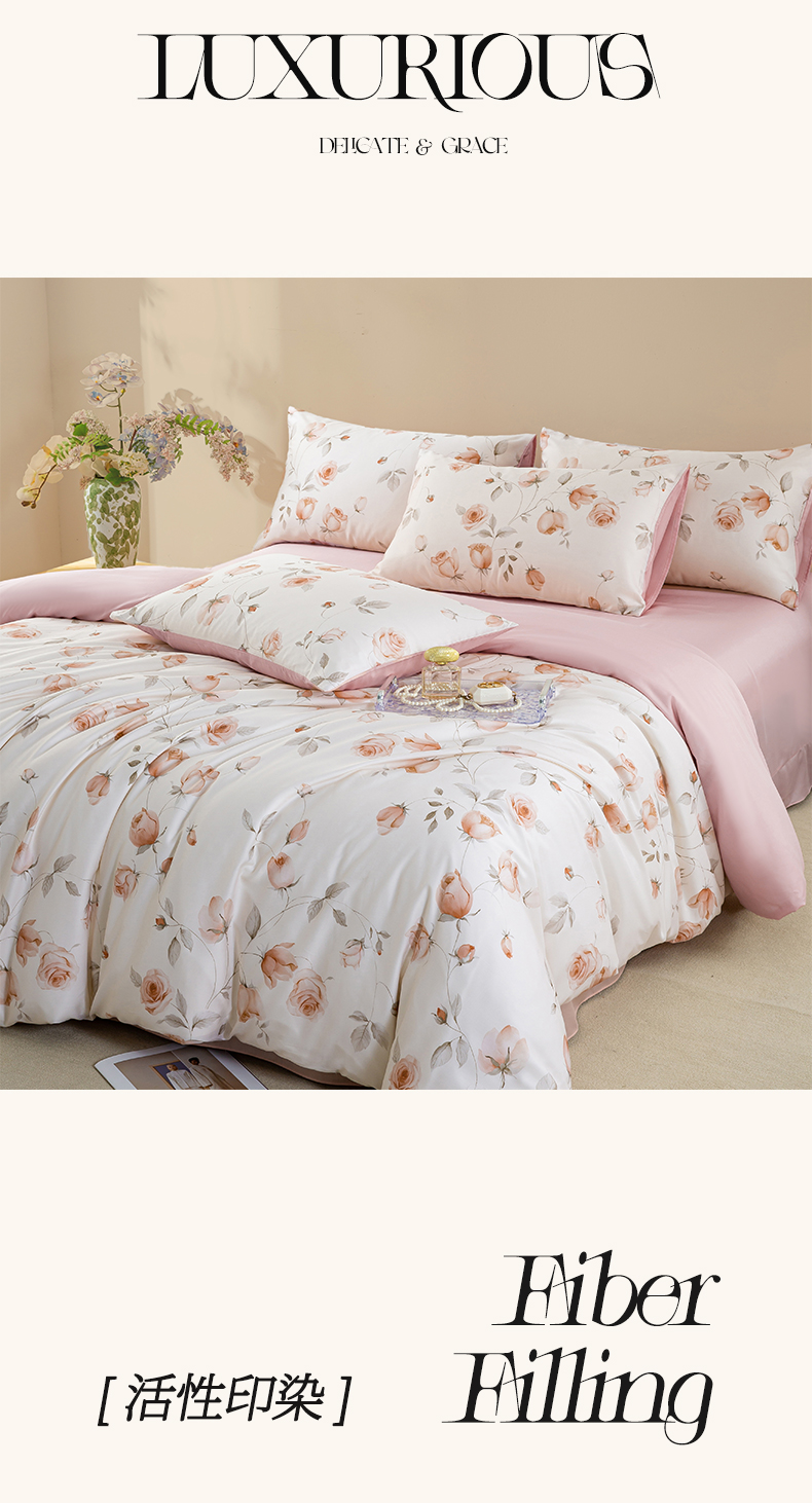 麦田家纺 2025新款50S莱赛尔天丝印花四件套 花艺盈香-粉