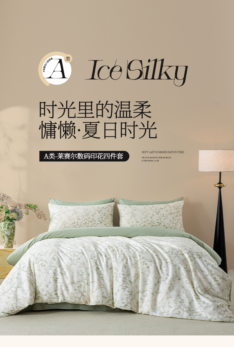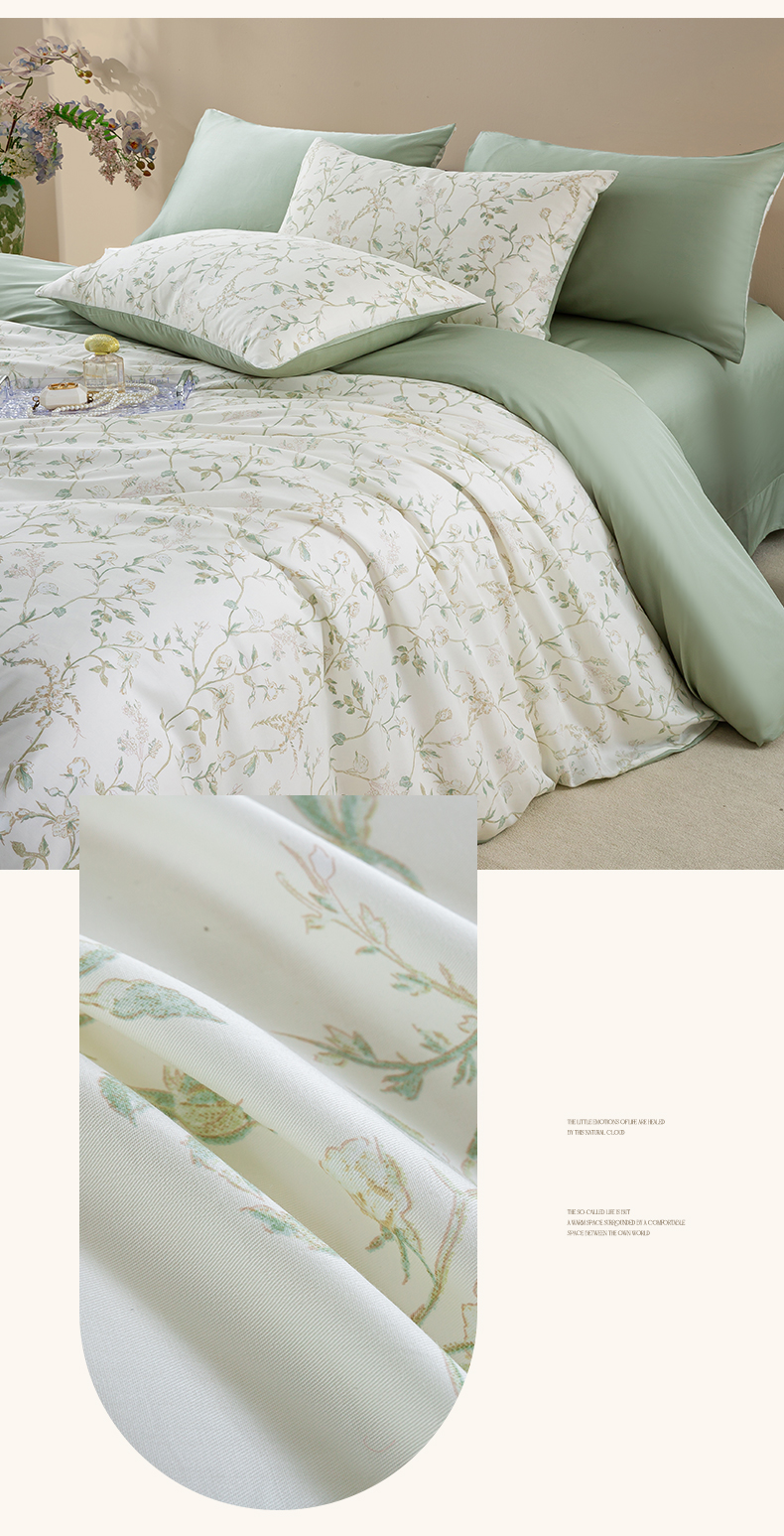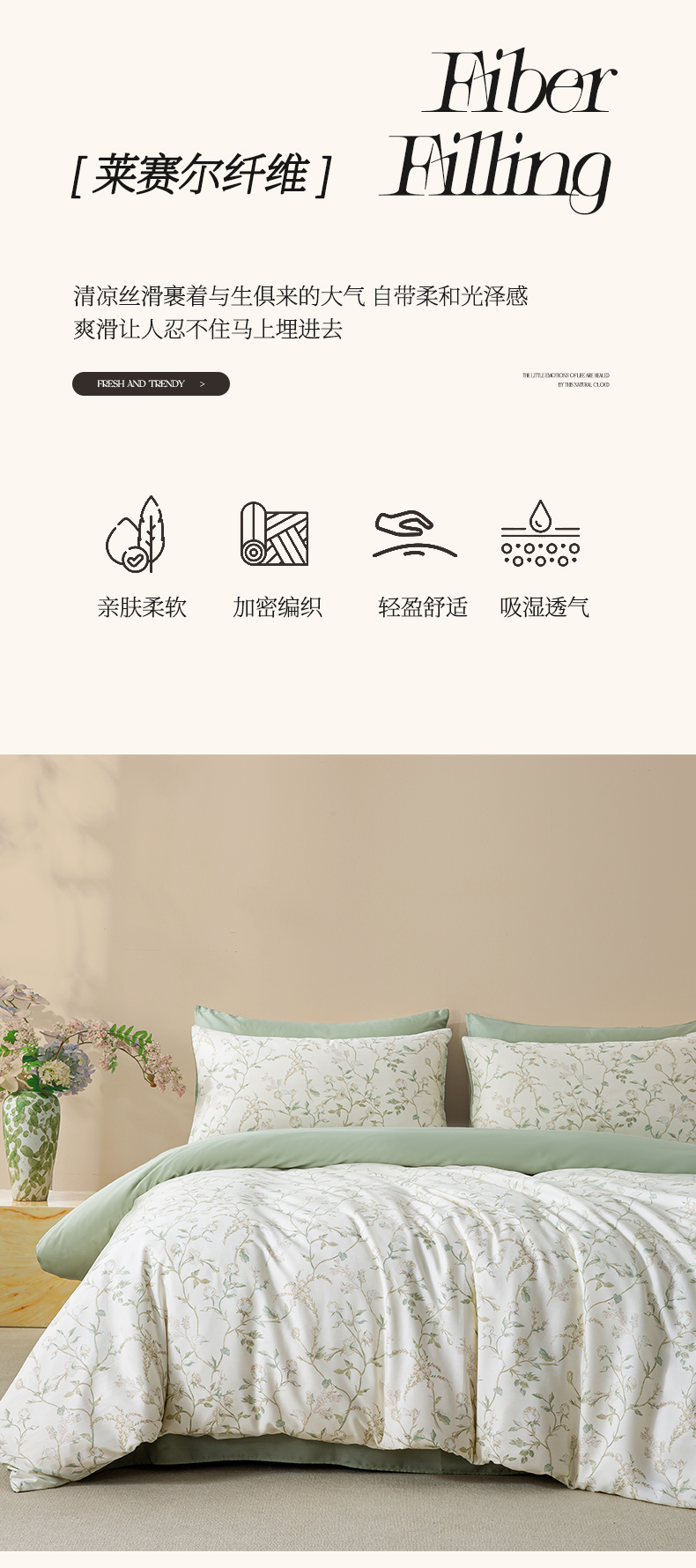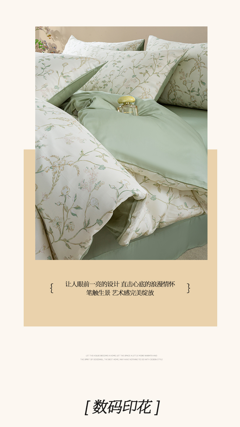 麦田家纺 2025新款50S莱赛尔天丝印花四件套 浅爱