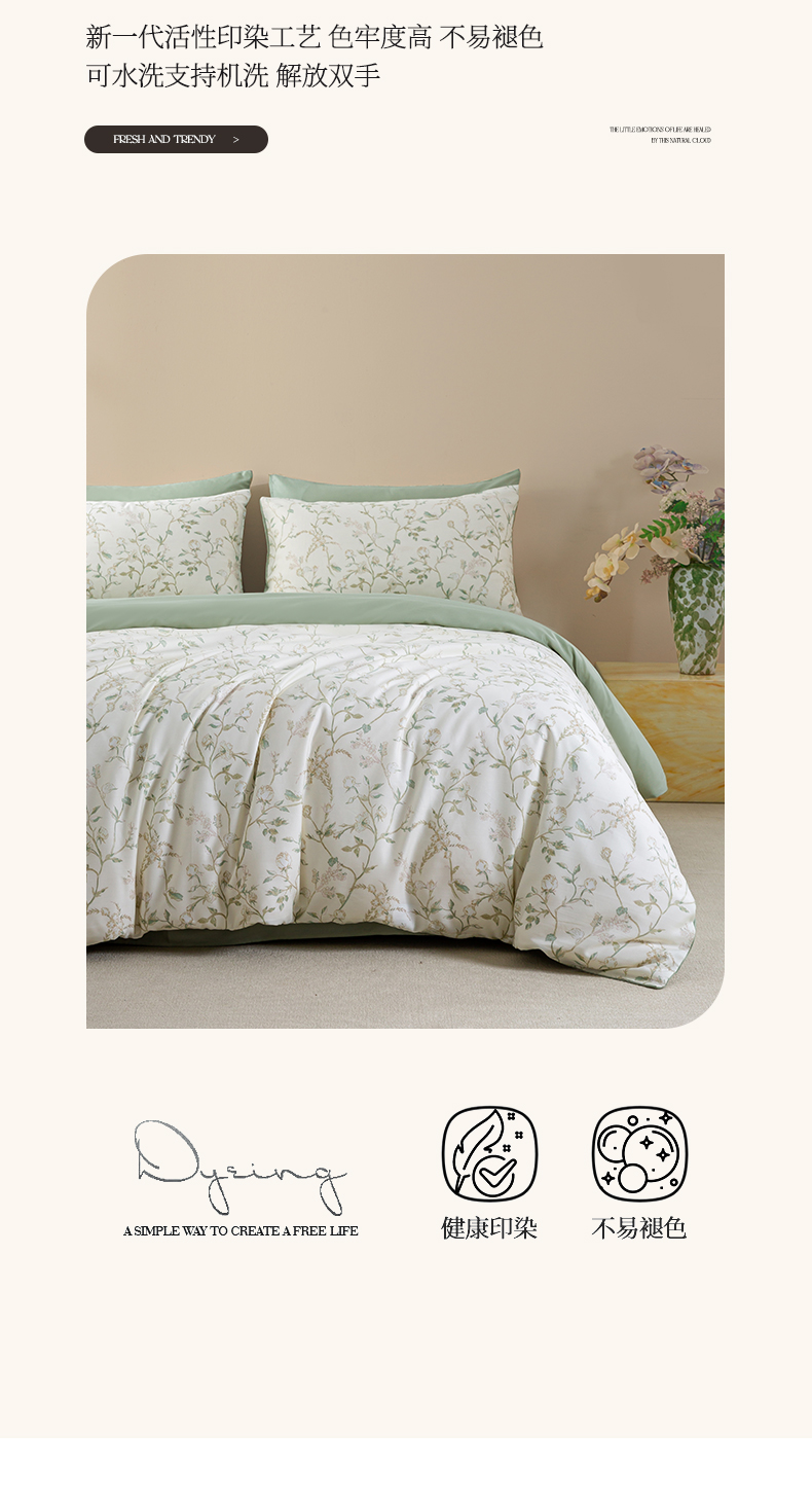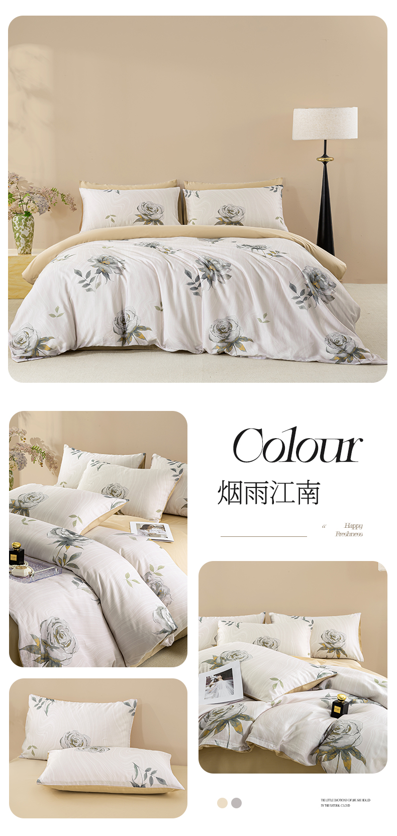 商品名称:麦田家纺 2025新款50S莱赛尔天丝印花四件套 浅爱