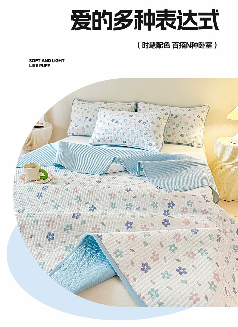 麦田家纺 2025新款珍珠绸印花双面床盖 朵朵花林-奶咖太阳花