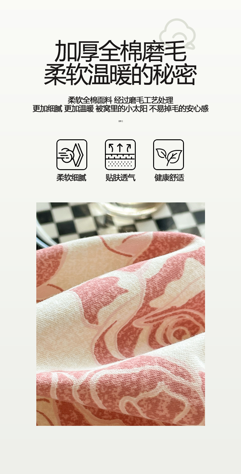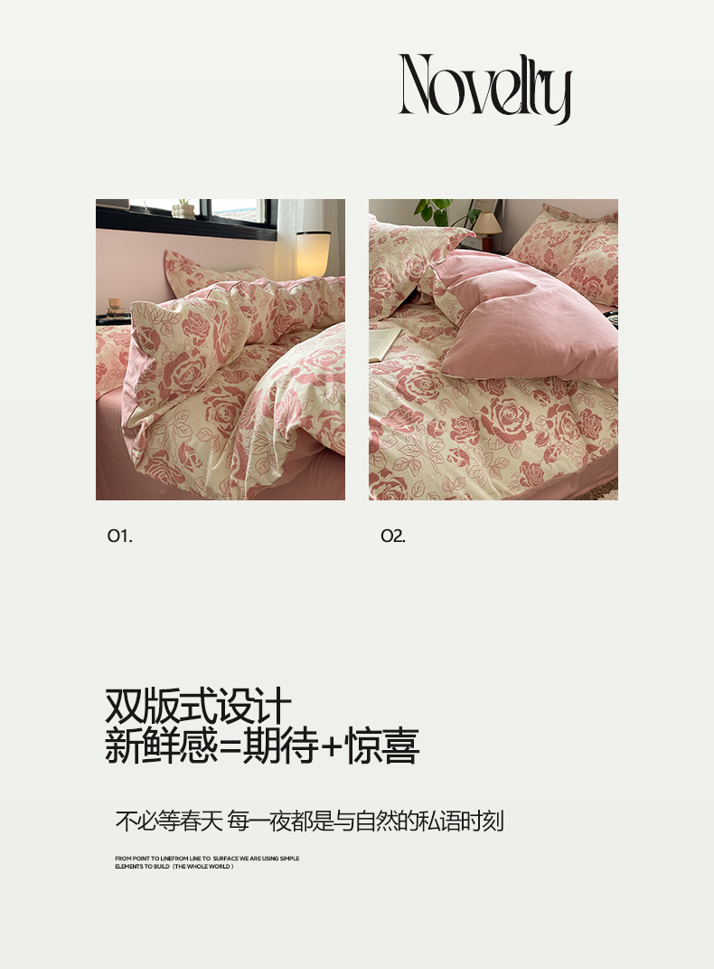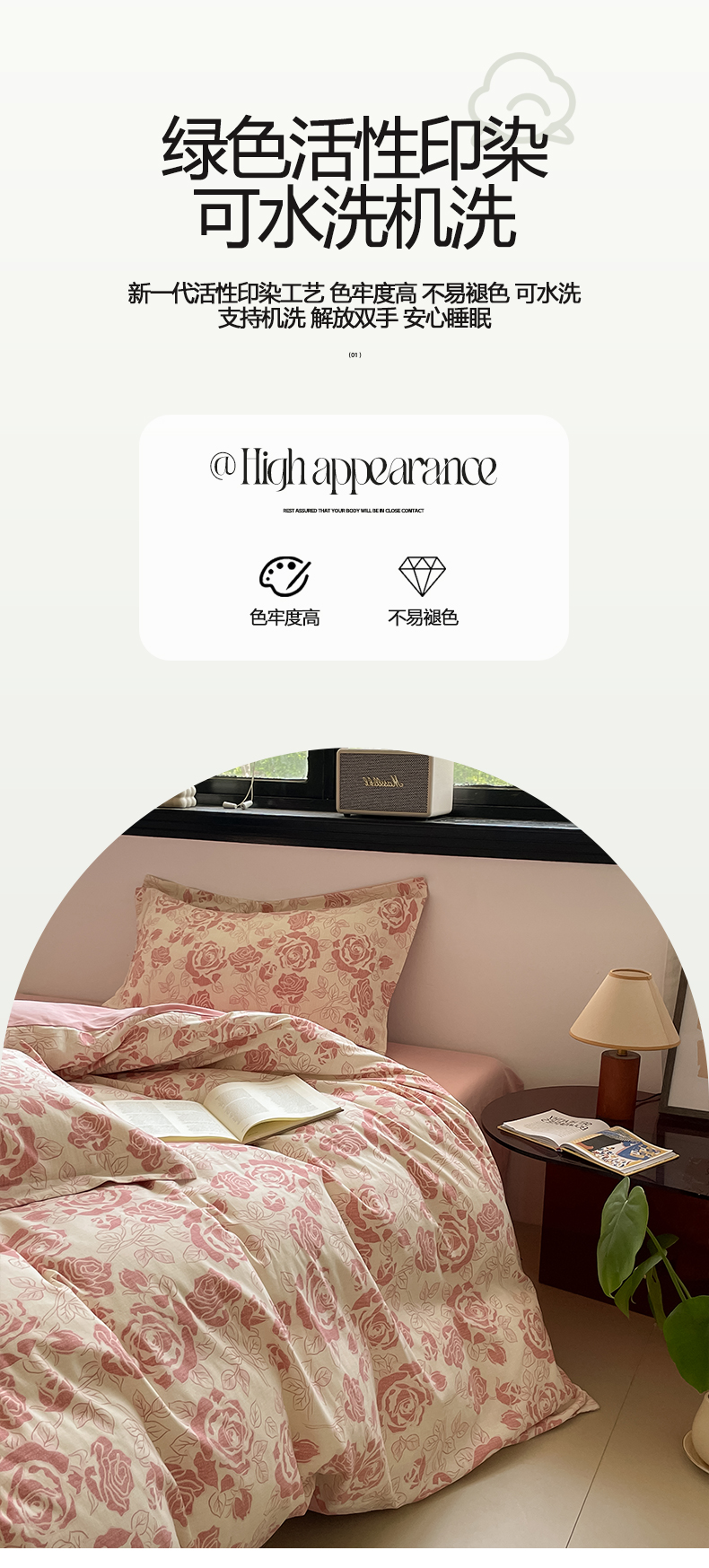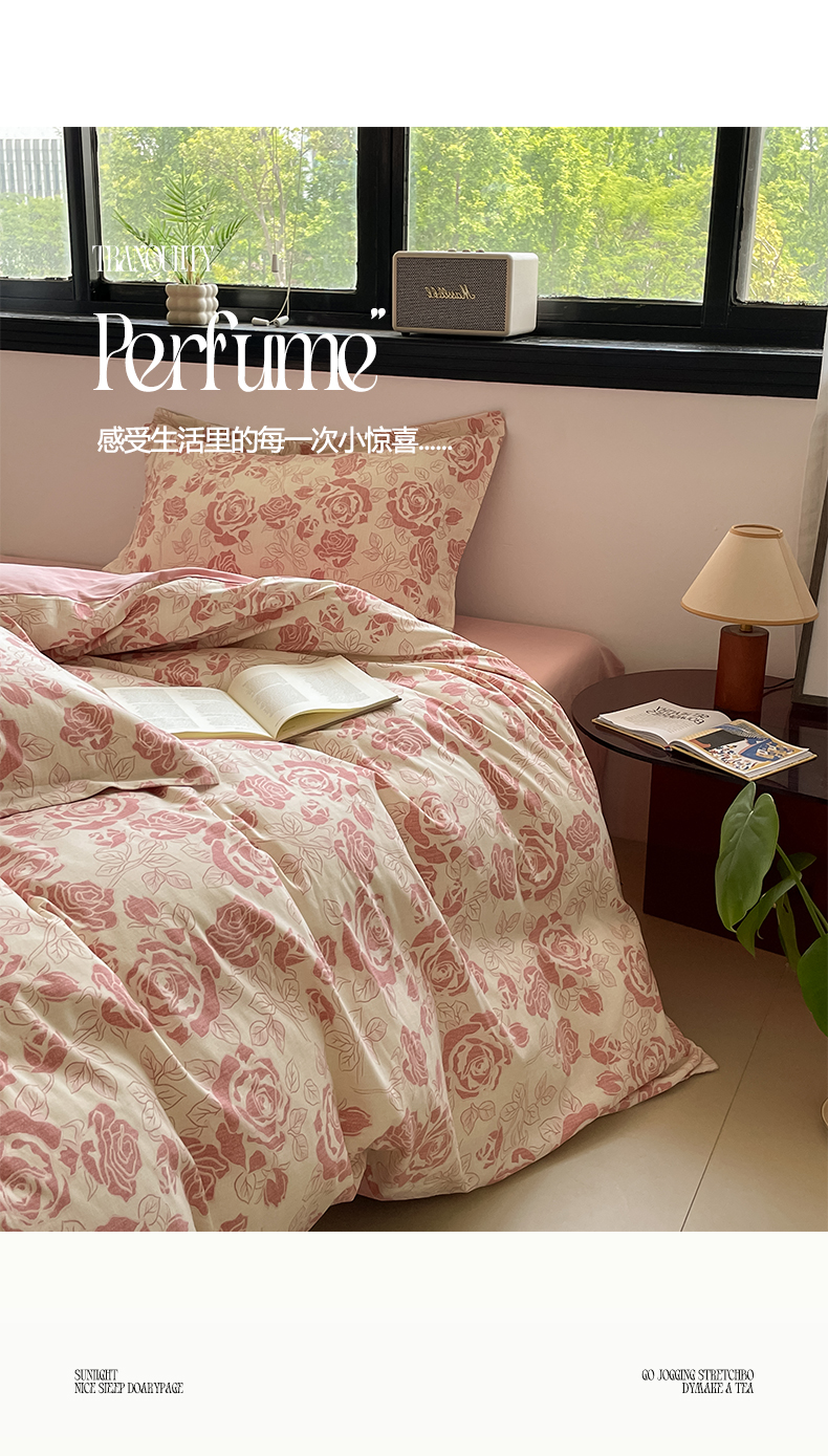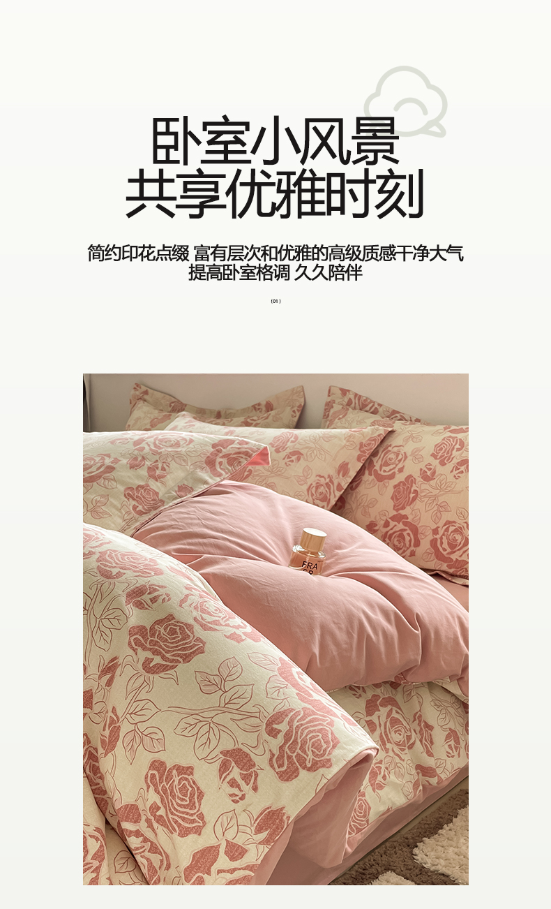 当前位置: 91家纺网 > 商品网购 > 床品套件 > 四件套 > 磨毛活性四件套 > 涵宸家纺 2025新款加厚全棉磨毛印花四件套--罗马系列 场景一 F花束