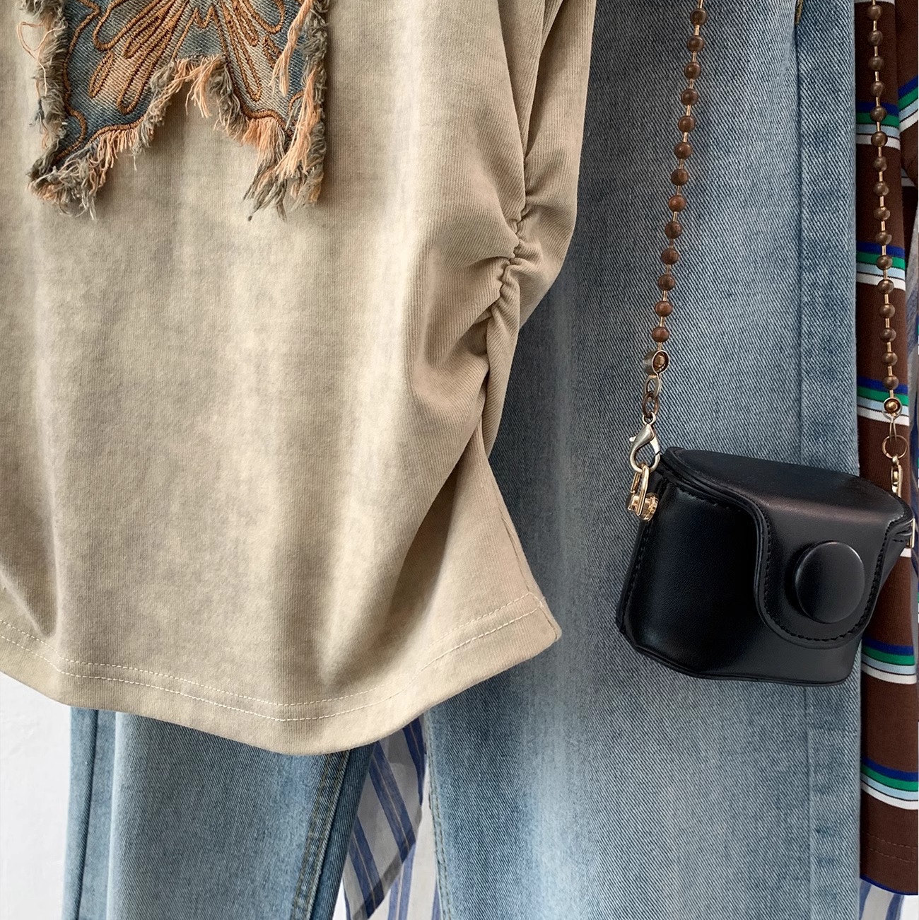 洛兰沙家居馆【只代发】【只代发】 2025新款扎染短袖t恤女莫代尔上衣美式复古夏季设计感小个子修身短款上 黑色