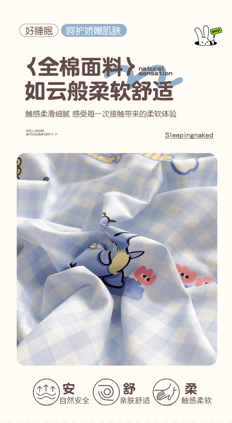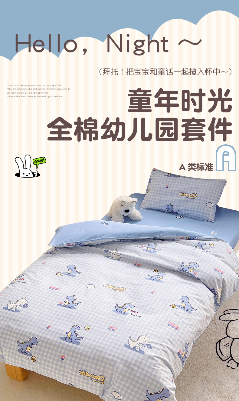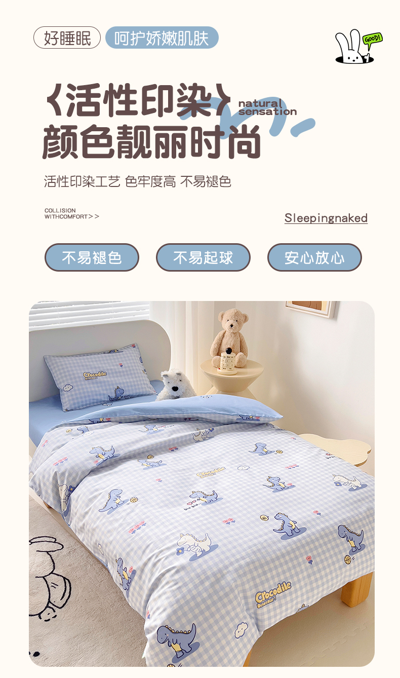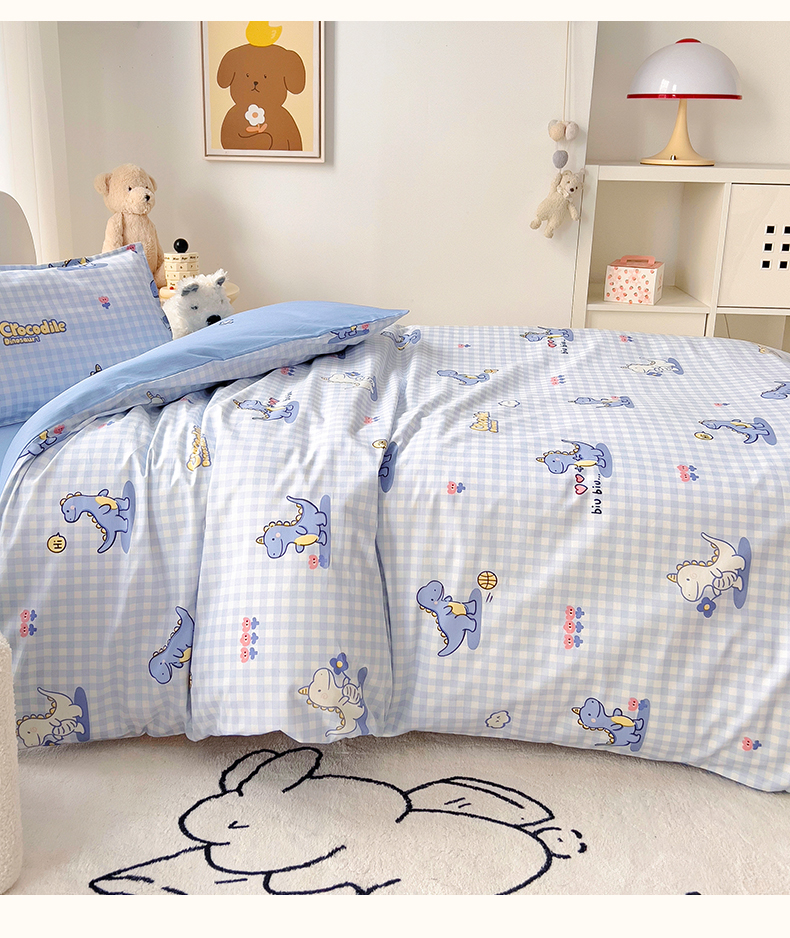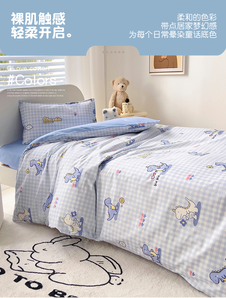 当前位置: 91家纺网 > 商品网购 > 床品套件 > 三件套 > 鱼宝 2025新款全棉幼儿园套件 三件套—童真系列 格子恐龙
