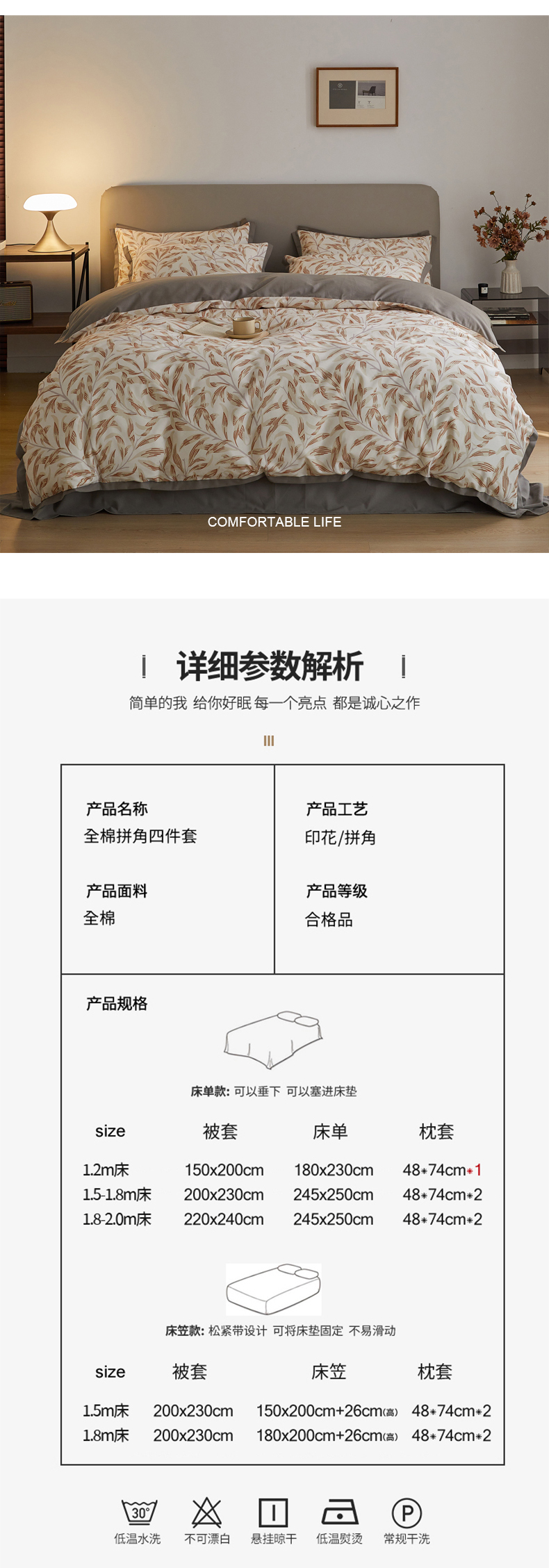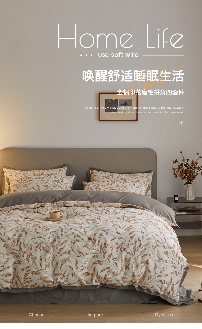 商品名称:千朵森 2025新款全棉高定印花磨毛拼角四件套-风格二 雅韵