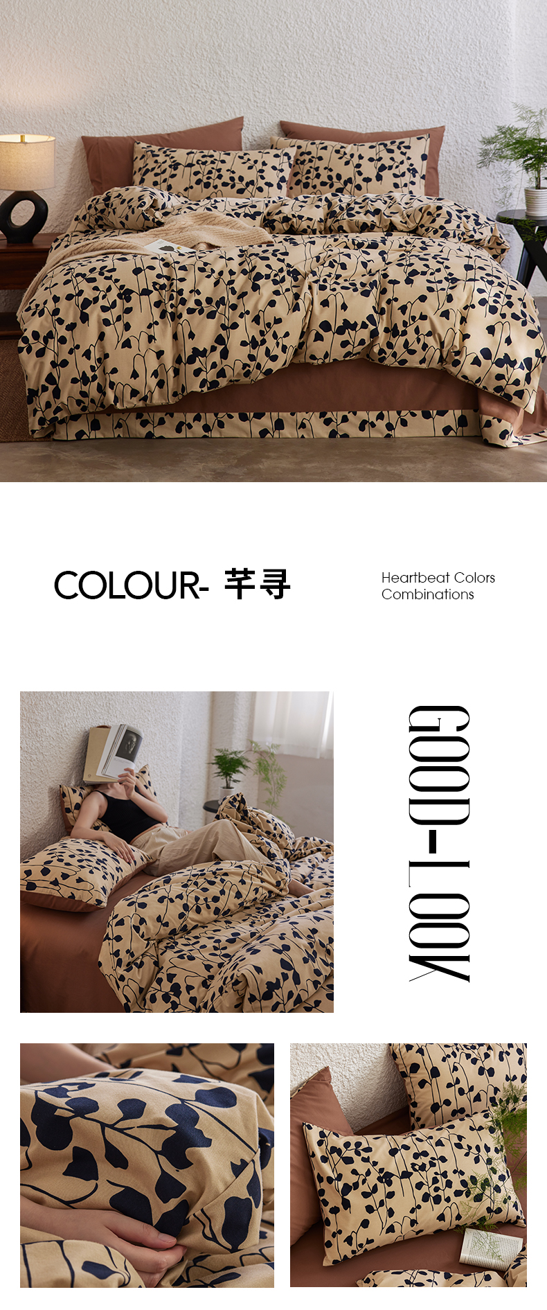 商品名称:千朵森 2025新款全棉高密陶瓷磨毛印花四件套 秋屿
