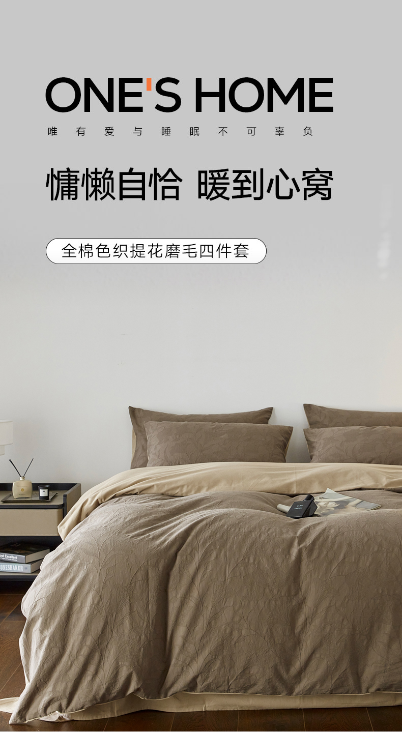 (总)千朵森 2025新款全棉纯棉色织提花磨毛四件套-秋思,秋思—粉漾,秋思—简雅,秋思—栖梦,秋思—叶影,秋思—织眠灰,秋思—织眠棕
