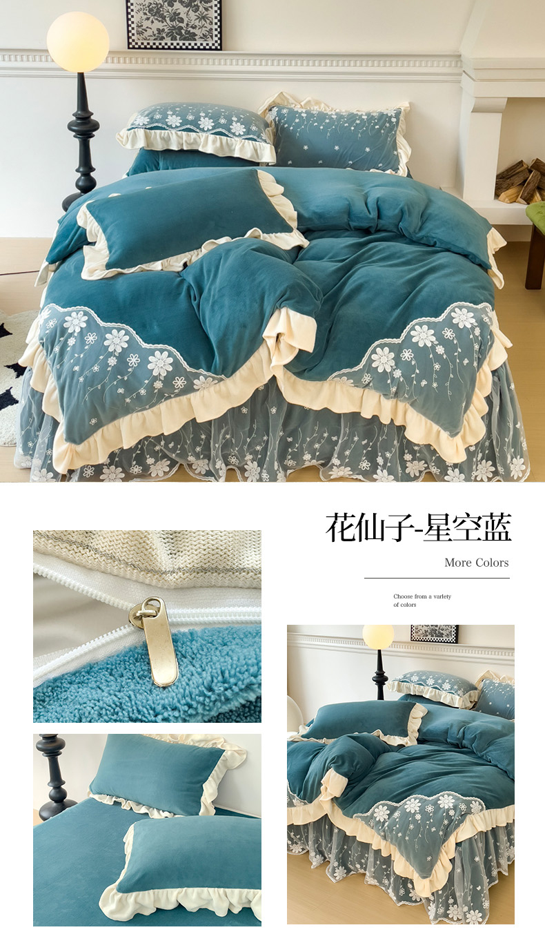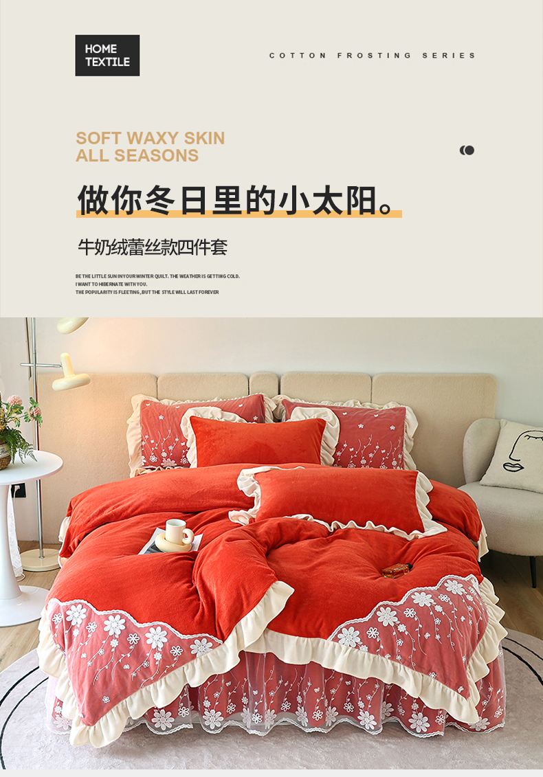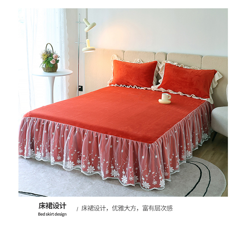 睡美人 2025新款牛奶绒蕾丝款床裙四件套花仙子系列 花仙子-爱玛橙