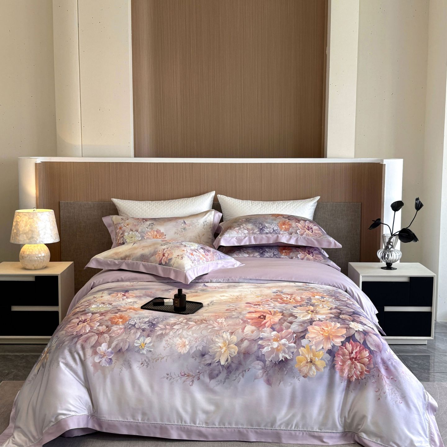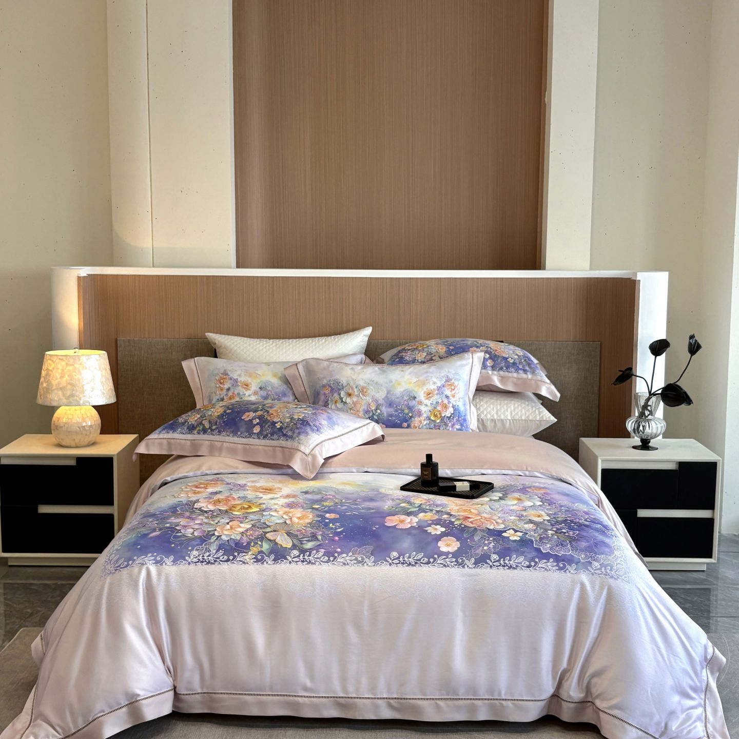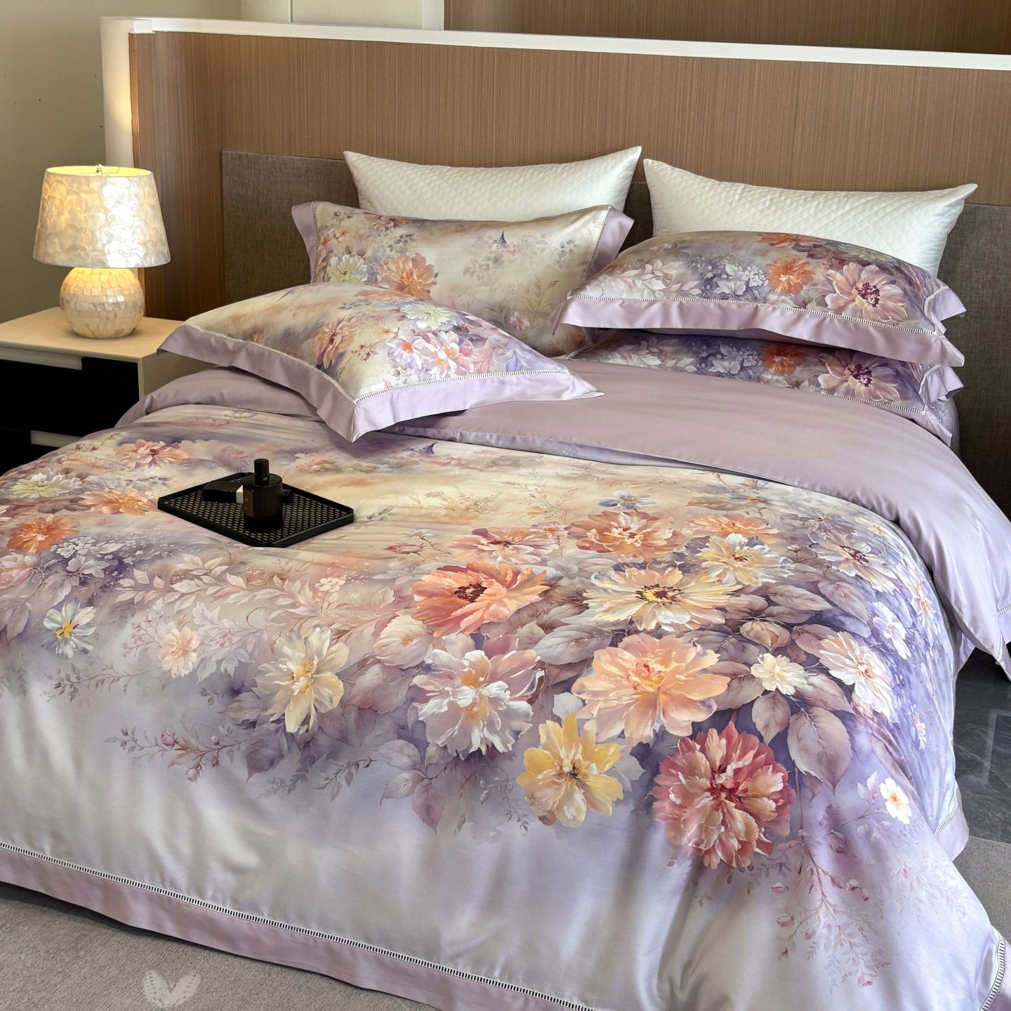 佳汐蓝家纺 2025新款天丝棉数码印花镂空床盖款四件套 花间悦-紫