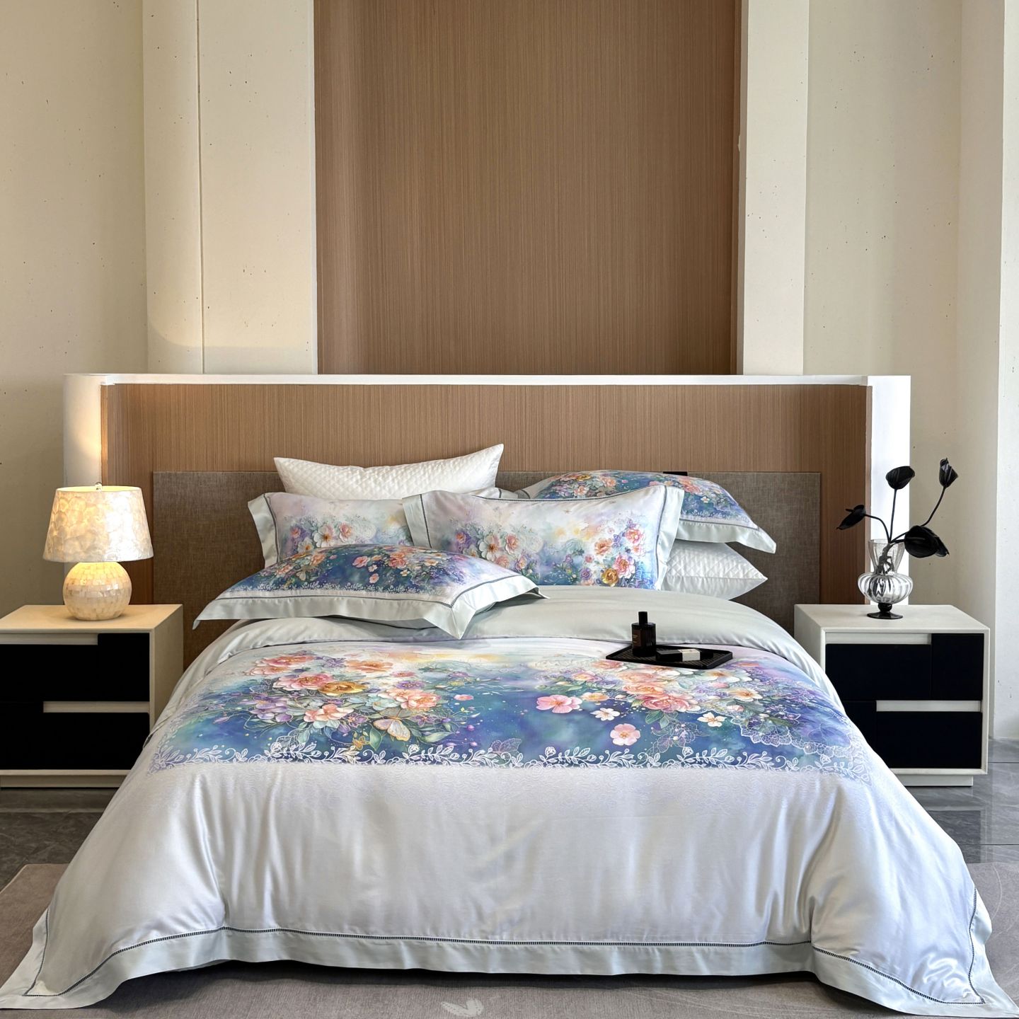 (总)佳汐蓝家纺 2025新款100支全棉贡缎数码印花四件套-画蝶,画蝶