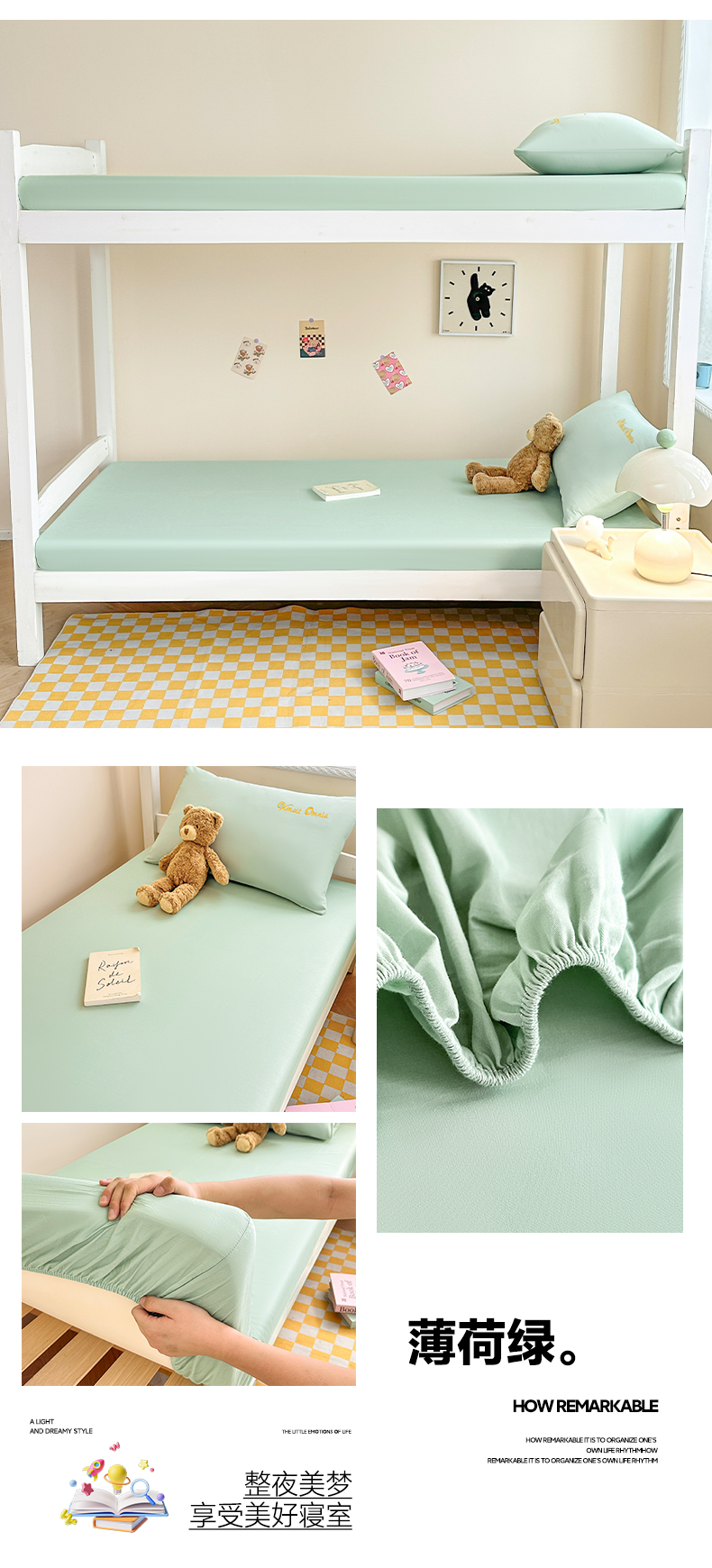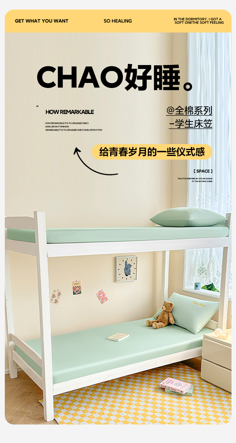 当前位置: 91家纺网 > 商品网购 > 床品套件 > 三件套 > 摩妮卡 2025新款学生床笠上下铺全棉床笠三件套 薄荷绿