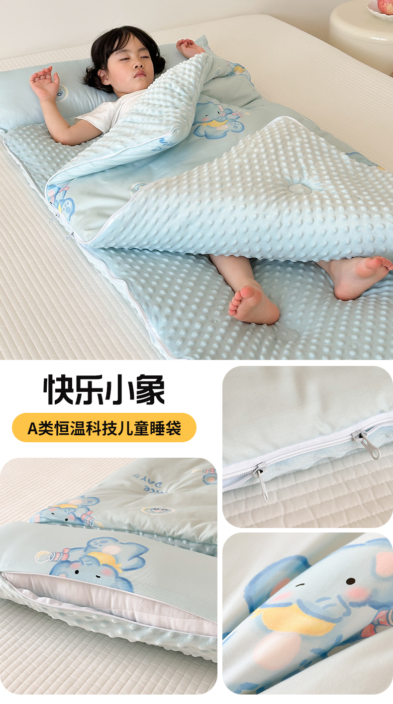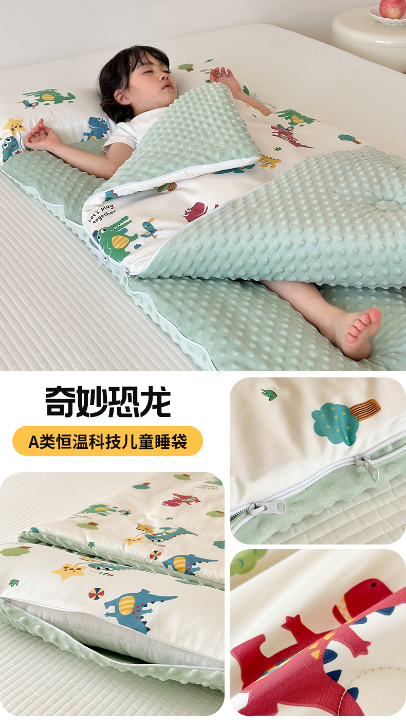 商品名称:嗨生活 2025秋冬加厚儿童睡袋全棉+豆豆绒一体防踢被儿童睡袋 蓝色挖掘