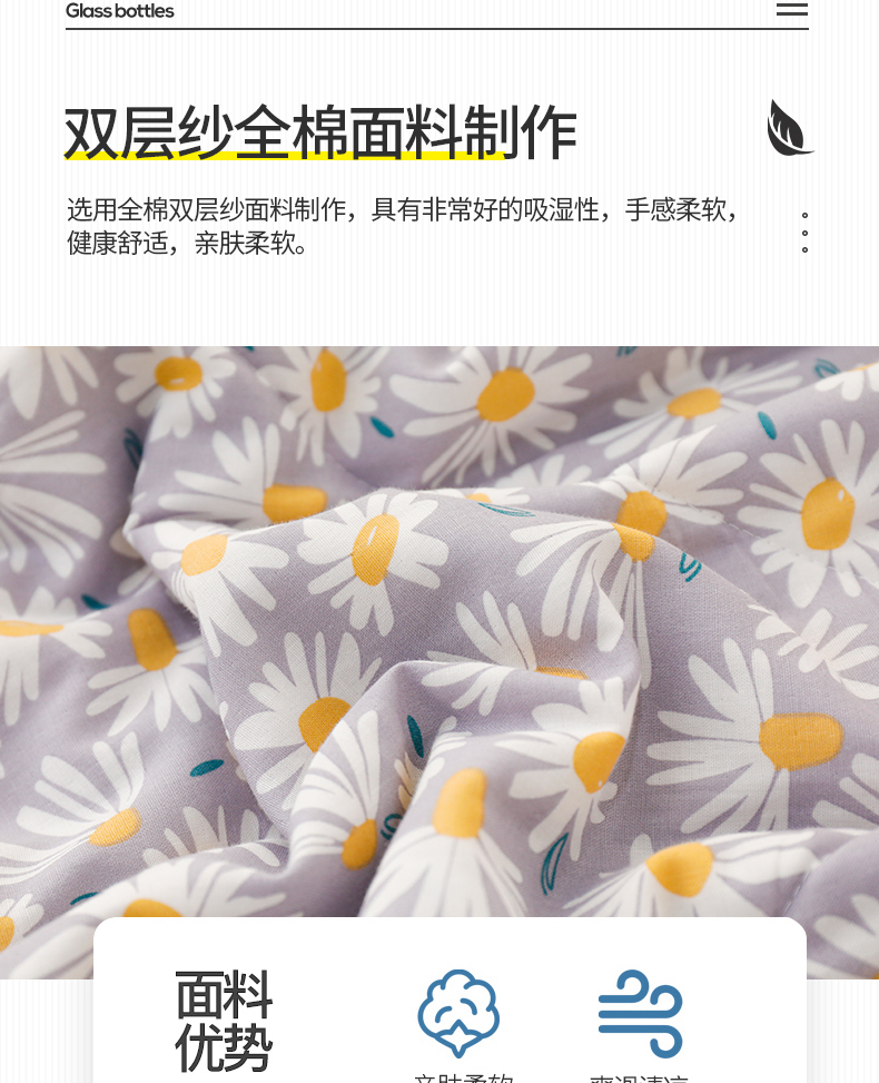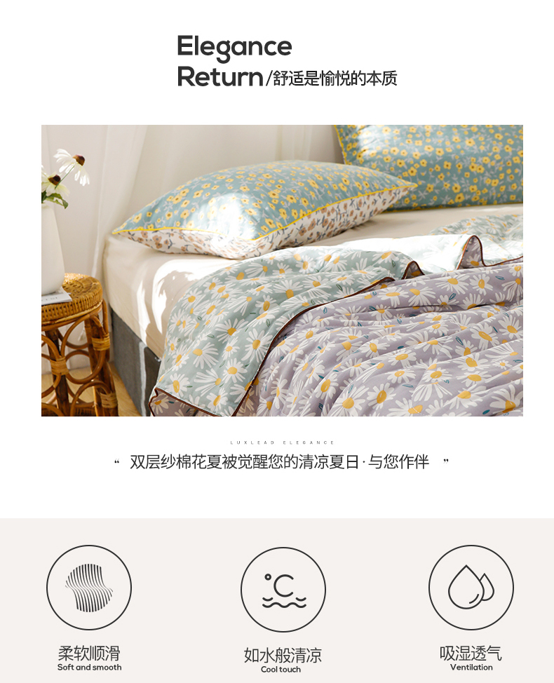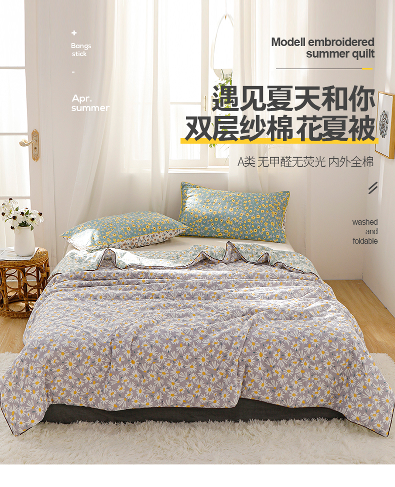 被子 > 夏被 > 贝尔 PELLHOME夏凉被A类纯棉双层纱新疆棉花被可水洗有质检报告春节不打烊(可抖音代发) 小雏菊
