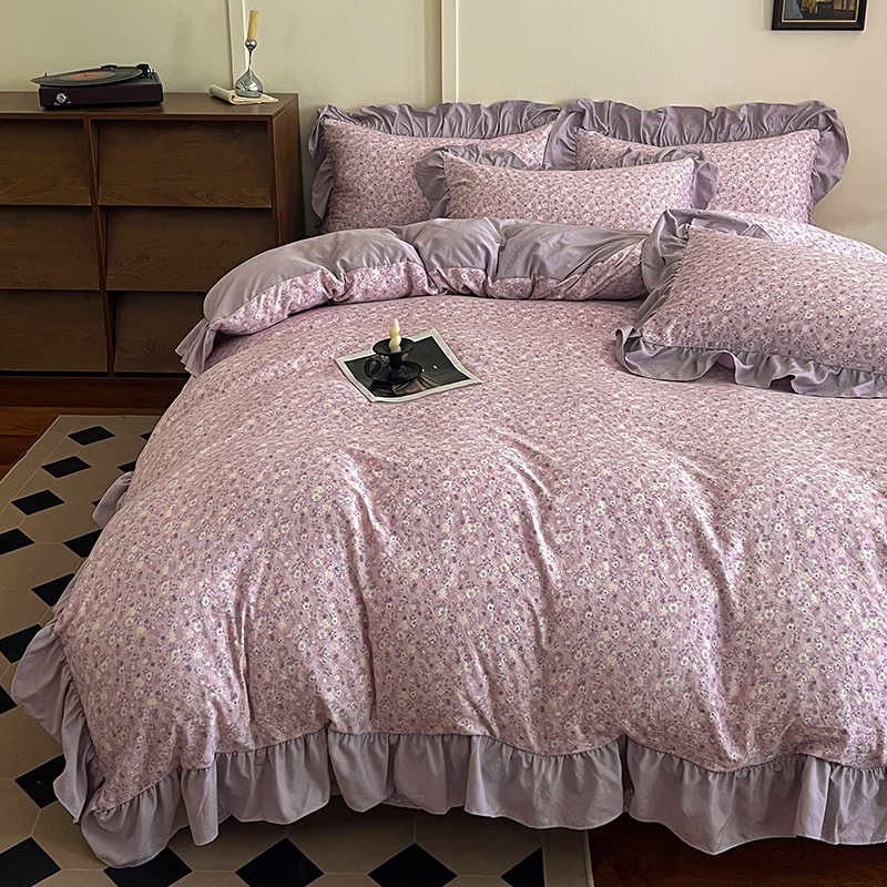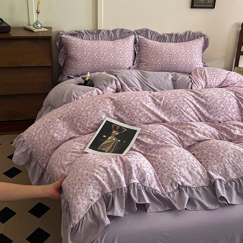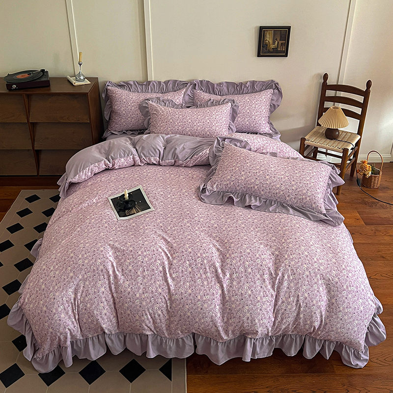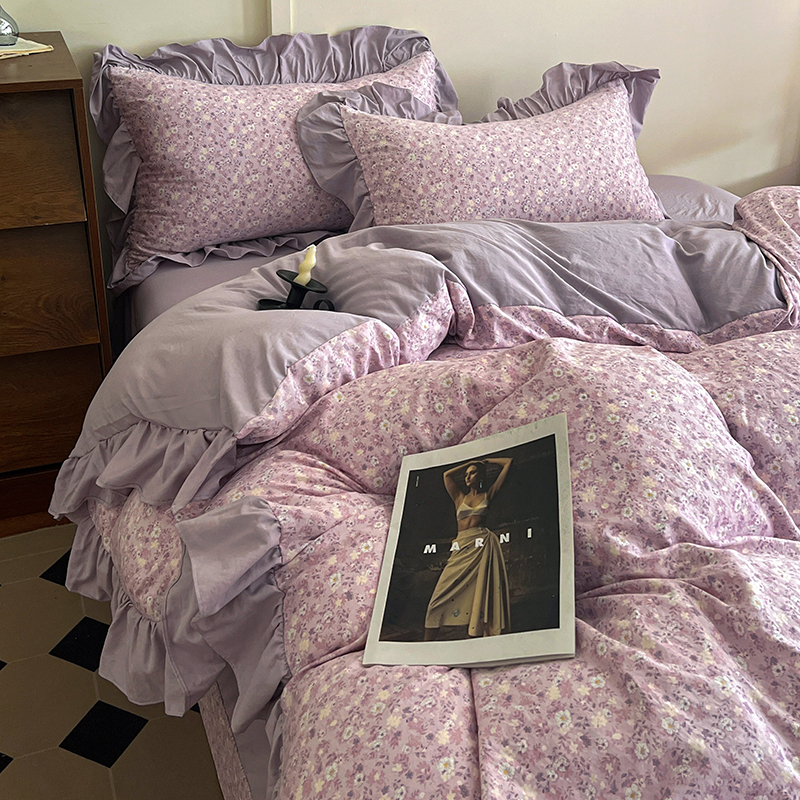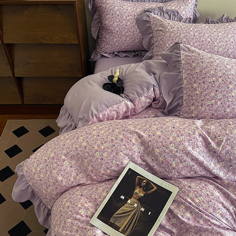(总) 梦莱斯 2026新款小清新可爱风纯棉花边床盖四件套,灰格心,漫野,午后时光,小玫瑰,紫菱花笺,小象,屿花,浅棠絮语,彩色波点,彩色小草莓,粉蔷薇,杏野繁花,狗狗家族,蝴蝶结,可爱狗狗,可爱胡萝卜,蓝色狗狗,雾紫汀兰,蓝色梦铃,漫花蝶舞,米色南瓜,熊熊乐园,紫色小兔