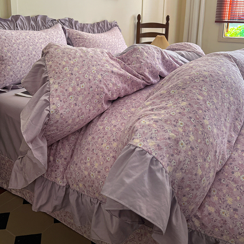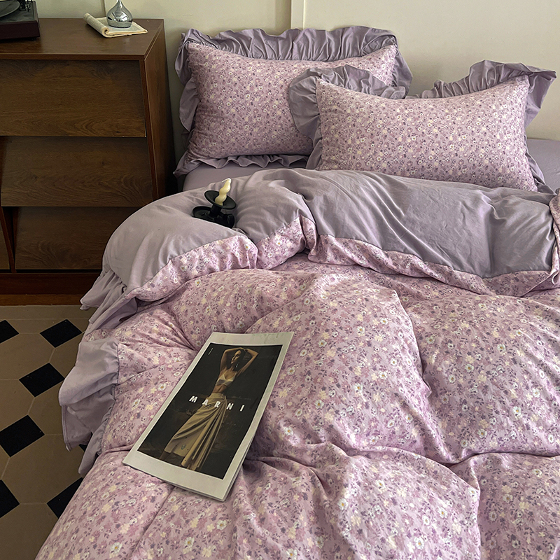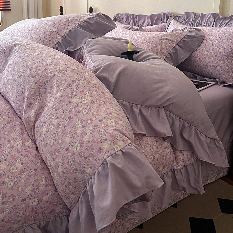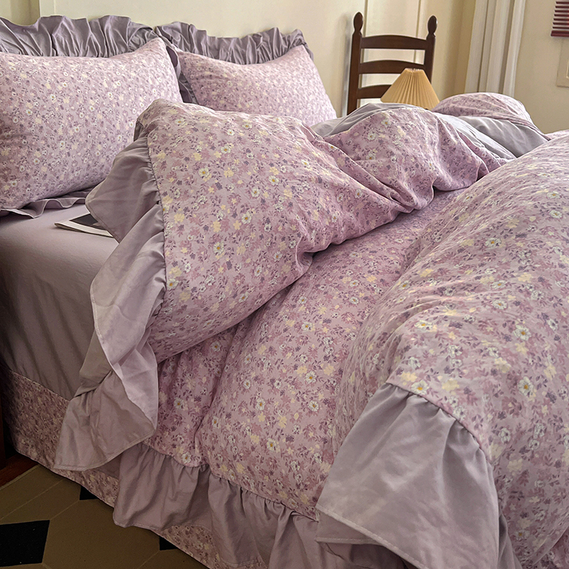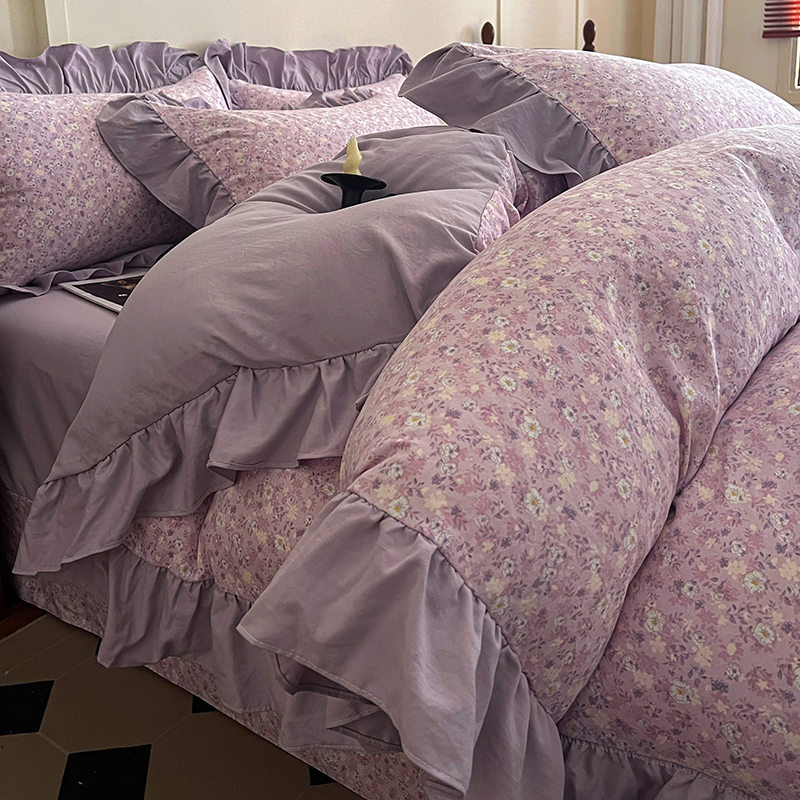 (总) 梦莱斯 2026新款小清新可爱风纯棉花边床盖四件套,灰格心,漫野,午后时光,小玫瑰,紫菱花笺,小象,屿花,浅棠絮语,彩色波点,彩色小草莓,粉蔷薇,杏野繁花,狗狗家族,蝴蝶结,可爱狗狗,可爱胡萝卜,蓝色狗狗,雾紫汀兰,蓝色梦铃,漫花蝶舞,米色南瓜,熊熊乐园,紫色小兔