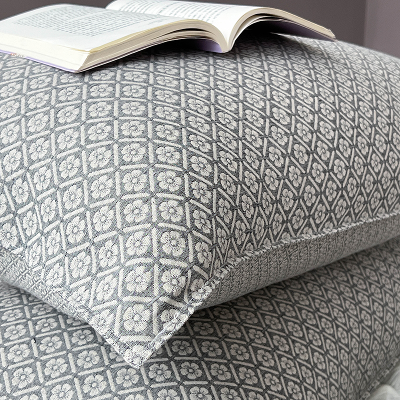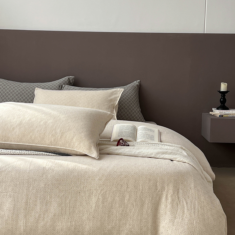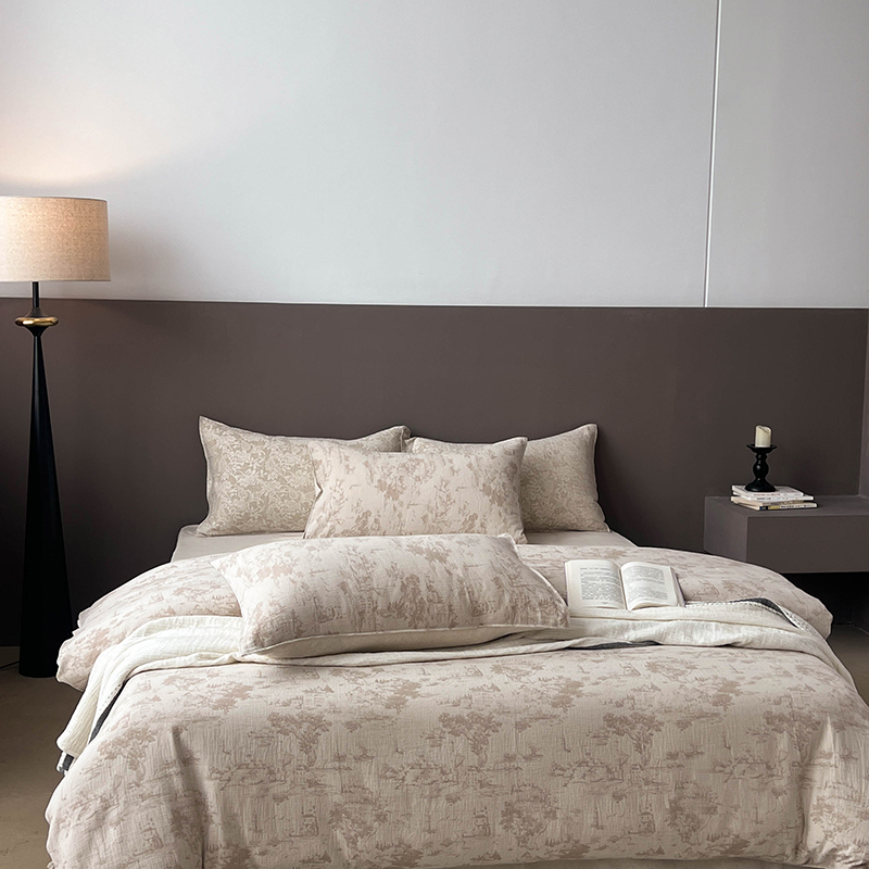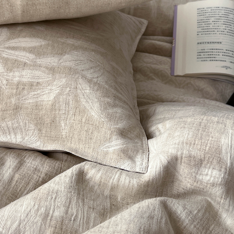 商品名称:贝尔 2025新款棉麻色织提花双层纱简单款四件套 简单款-铃兰浅色