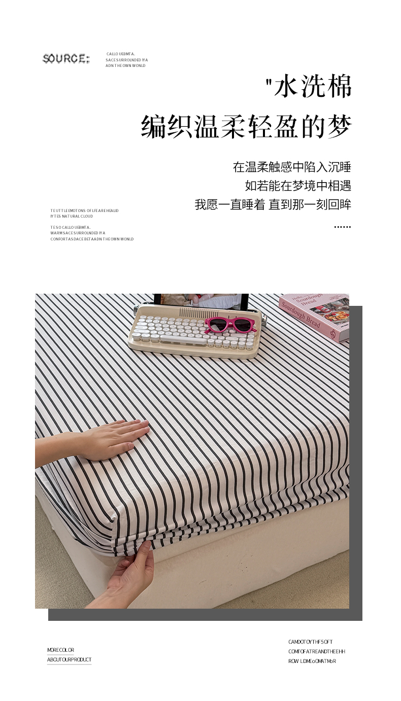 • 91家纺网 家纺一手货源 找家纺 (总)觅妮家纺 2025新款A类水洗棉韩系ins床笠三件套,黑条纹,纯粉,纯灰,纯紫,豆粉小格,粉条纹,黑白小格,黄小格,蓝条纹,绿条纹