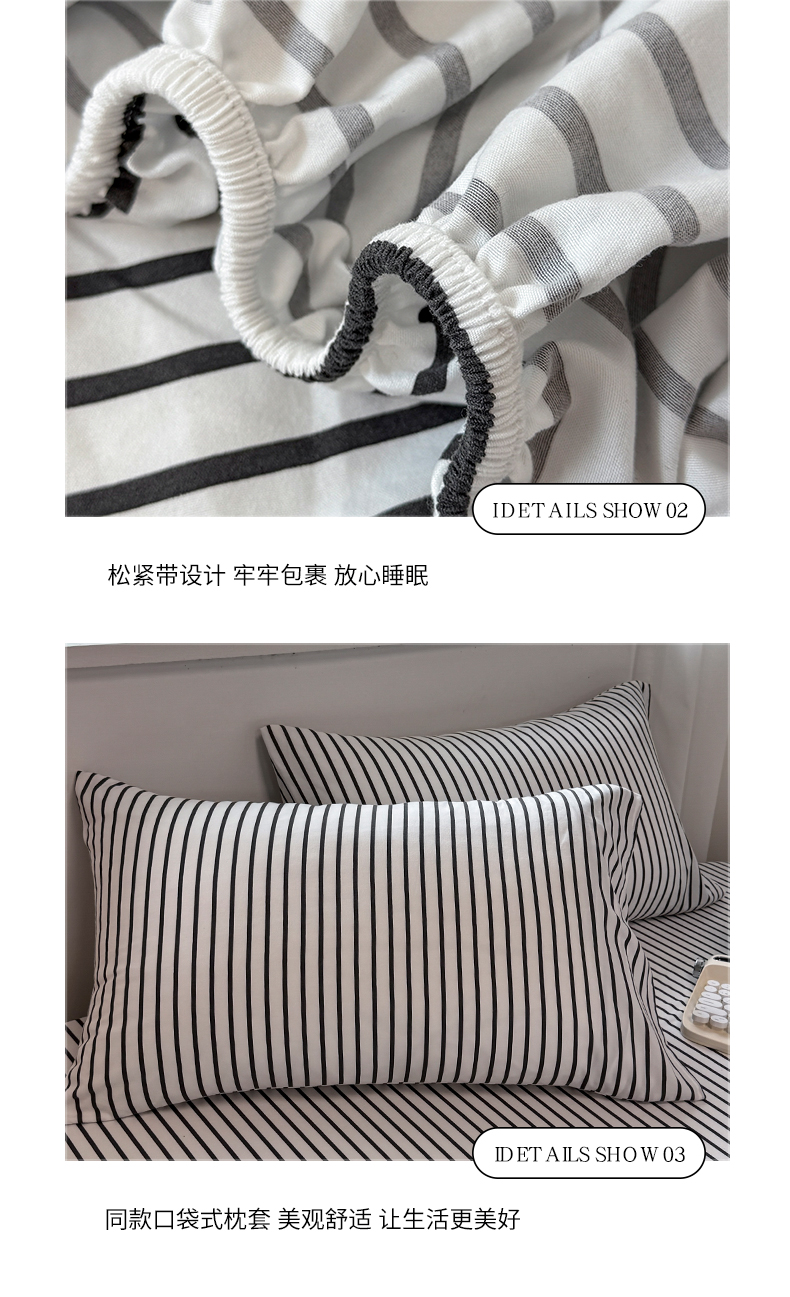 (总)觅妮家纺 2025新款A类水洗棉韩系ins床笠三件套,黑条纹,纯粉,纯灰,纯紫,豆粉小格,粉条纹,黑白小格,黄小格,蓝条纹,绿条纹