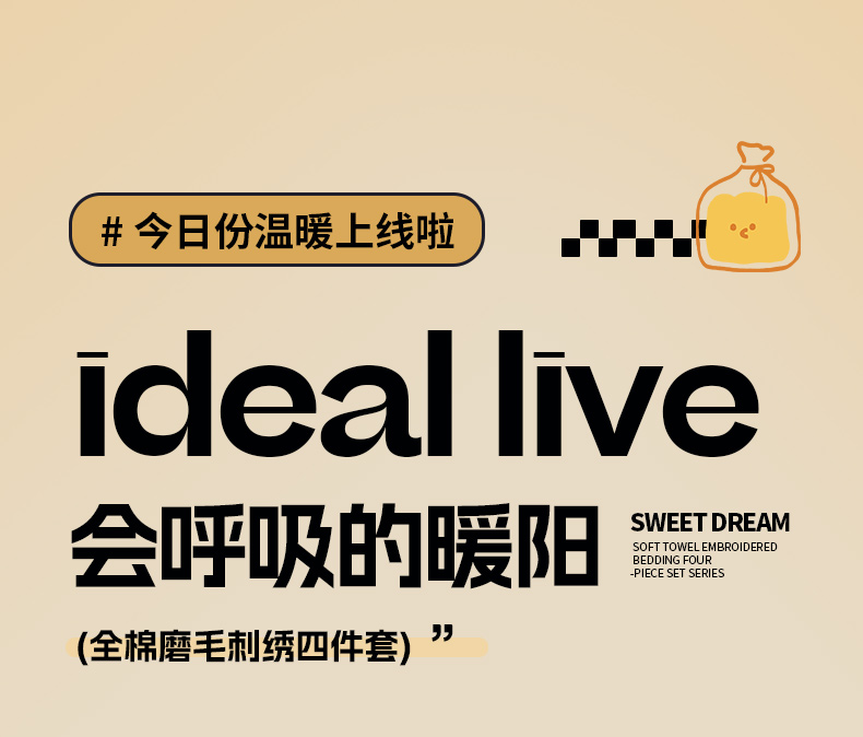 大境 2025秋冬专版刺绣A类全棉磨毛四件套三件套 篮球小熊-粉小格