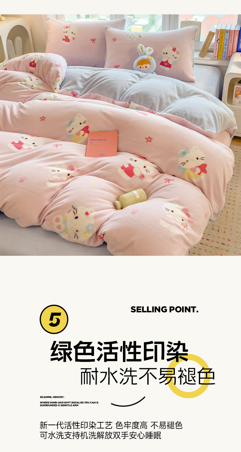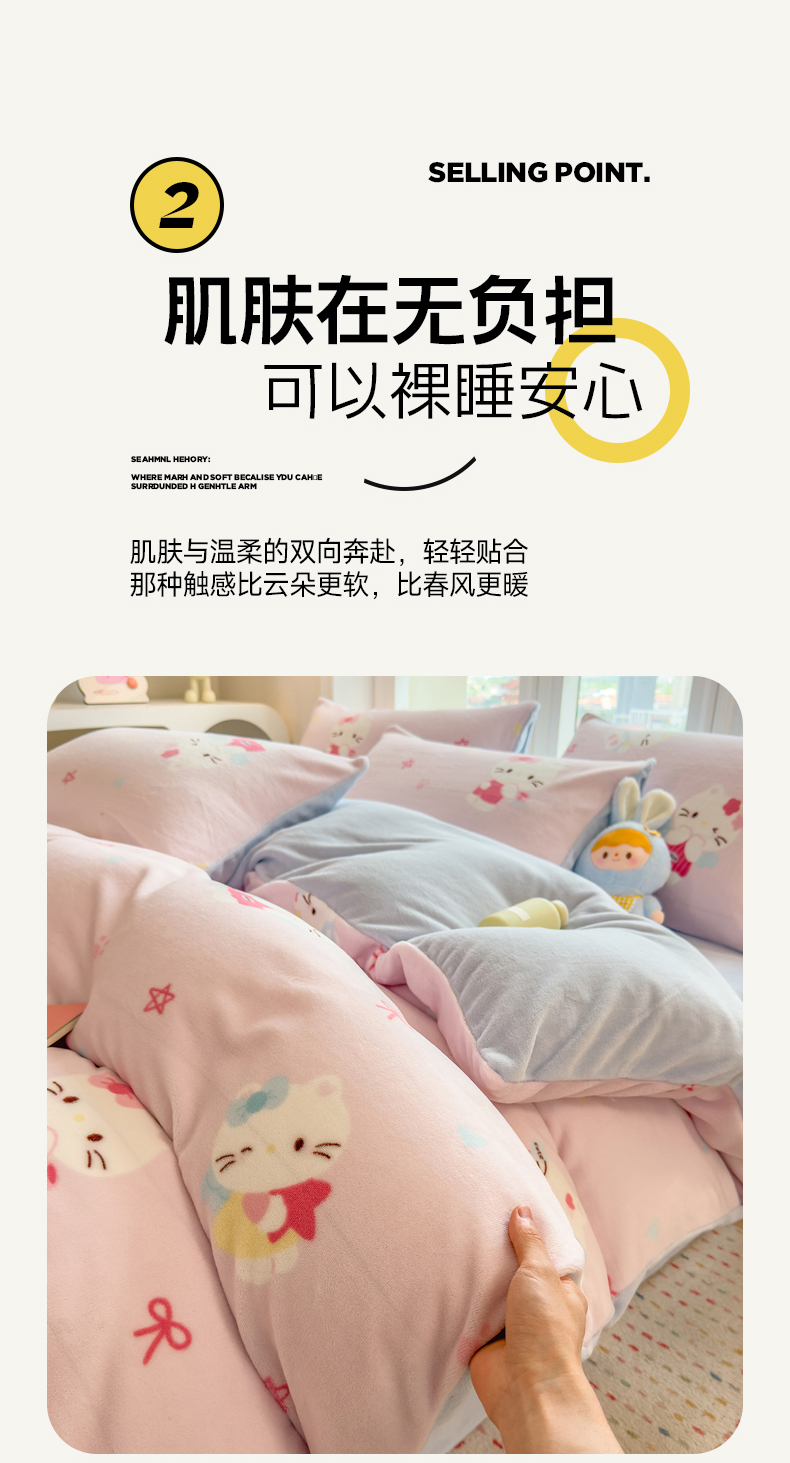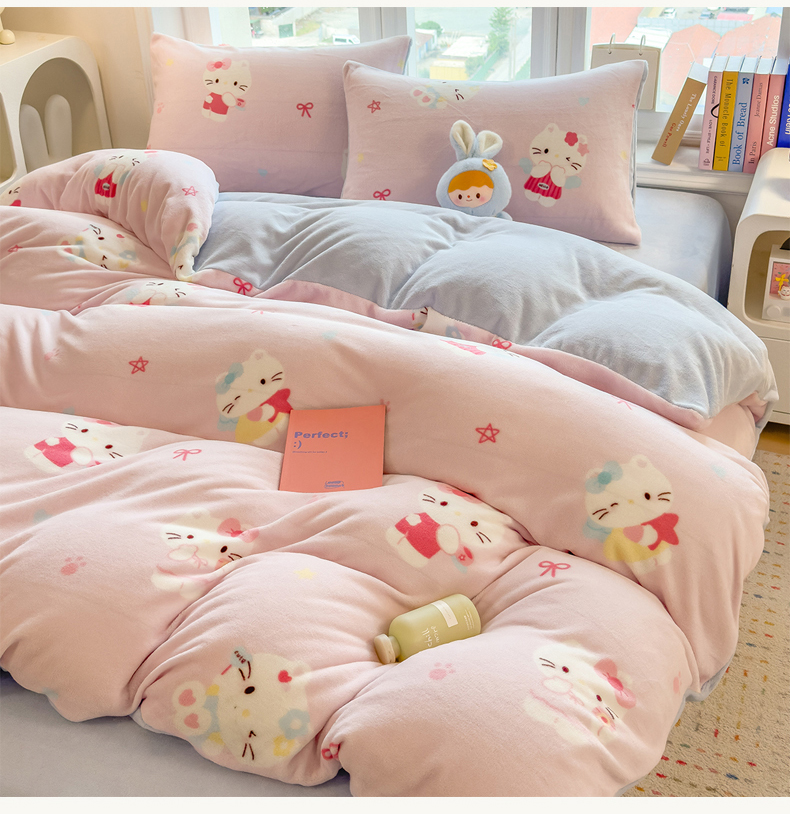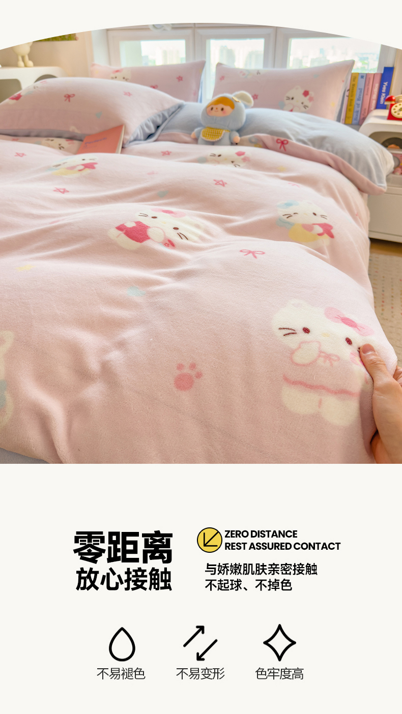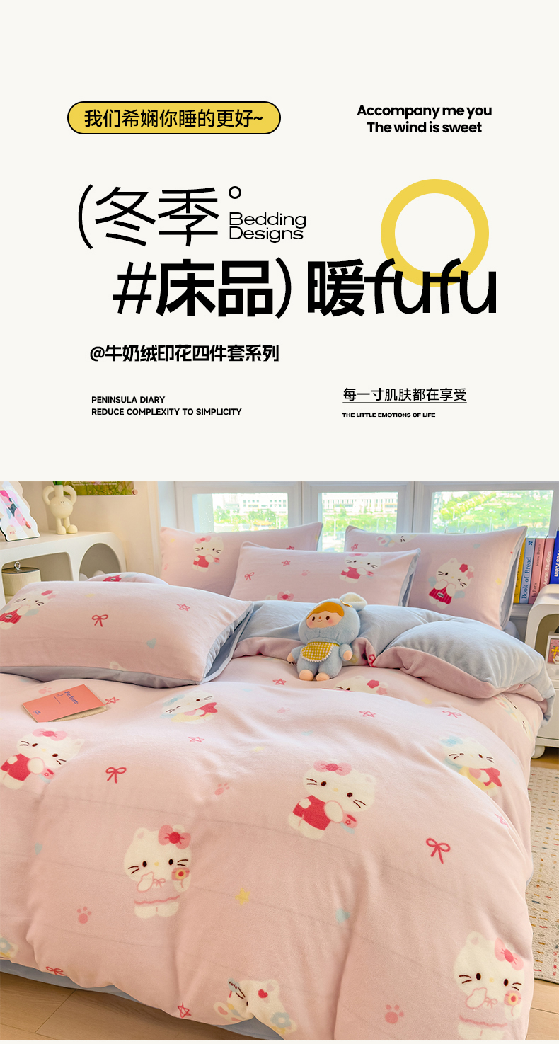 当前位置: 91家纺网 > 商品网购 > 床品套件 > 四件套 > 牛奶绒四件套 > 摩妮卡 摩妮卡 2025新款加厚款小清新牛奶绒印花四件套床单款床笠单被套 凯蒂粉梦