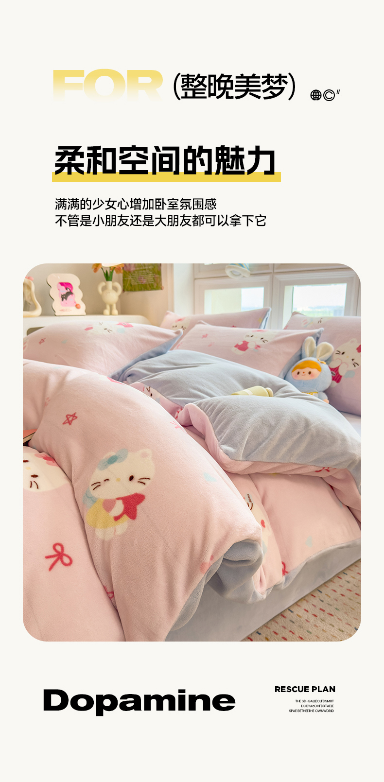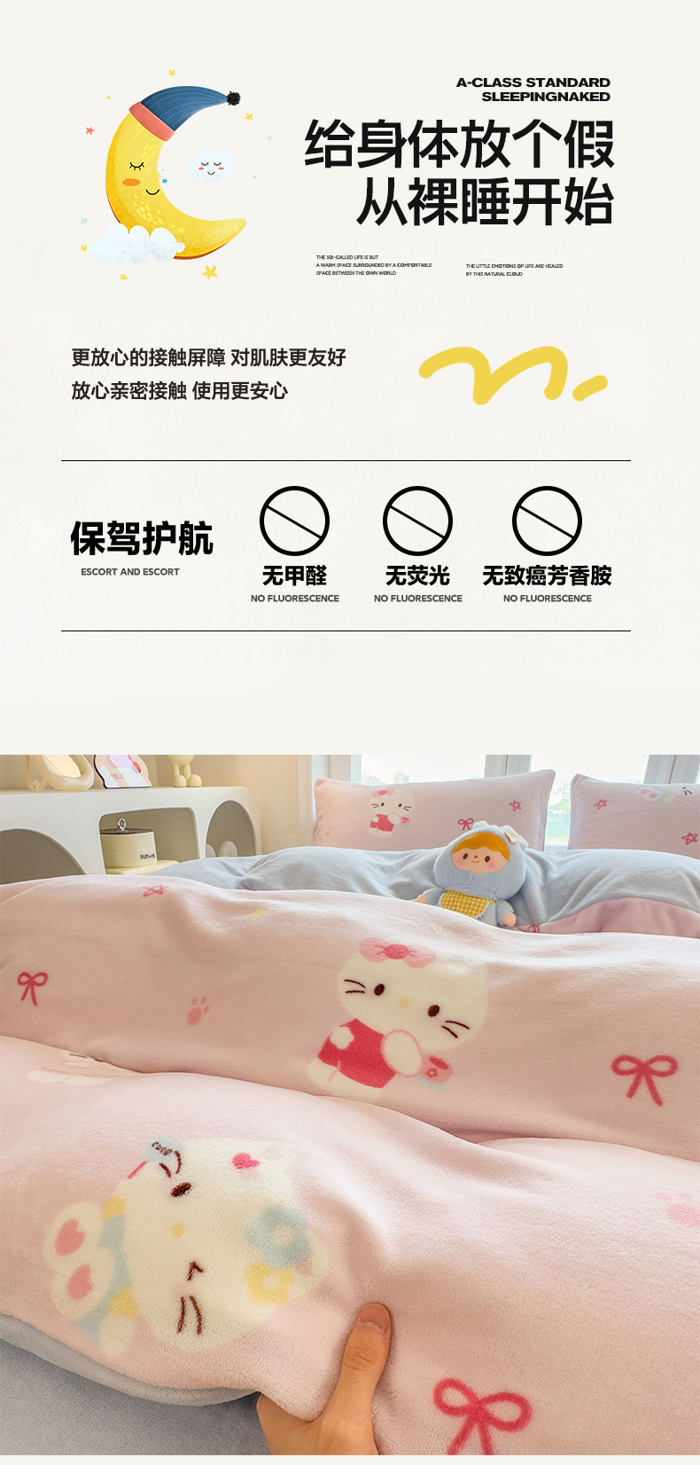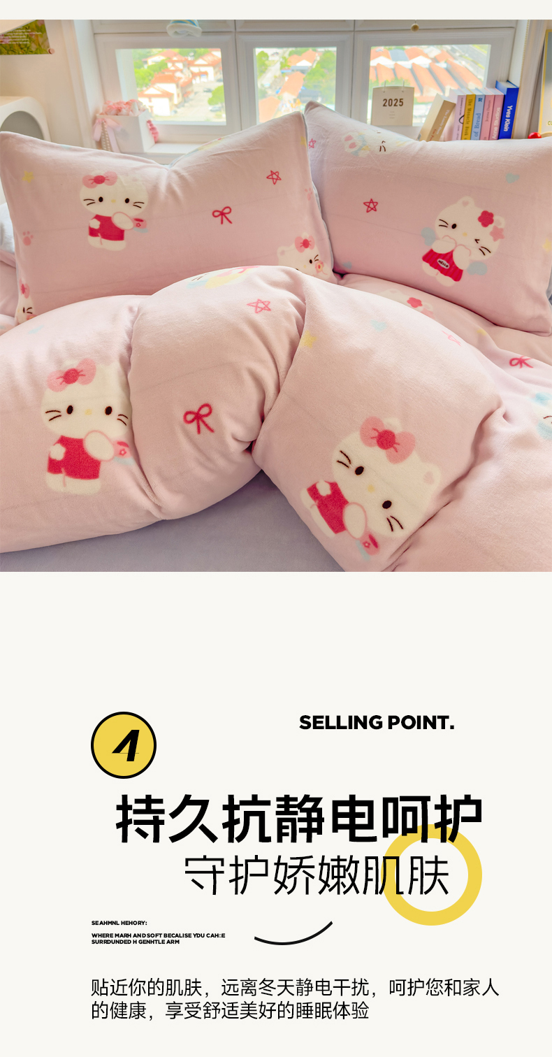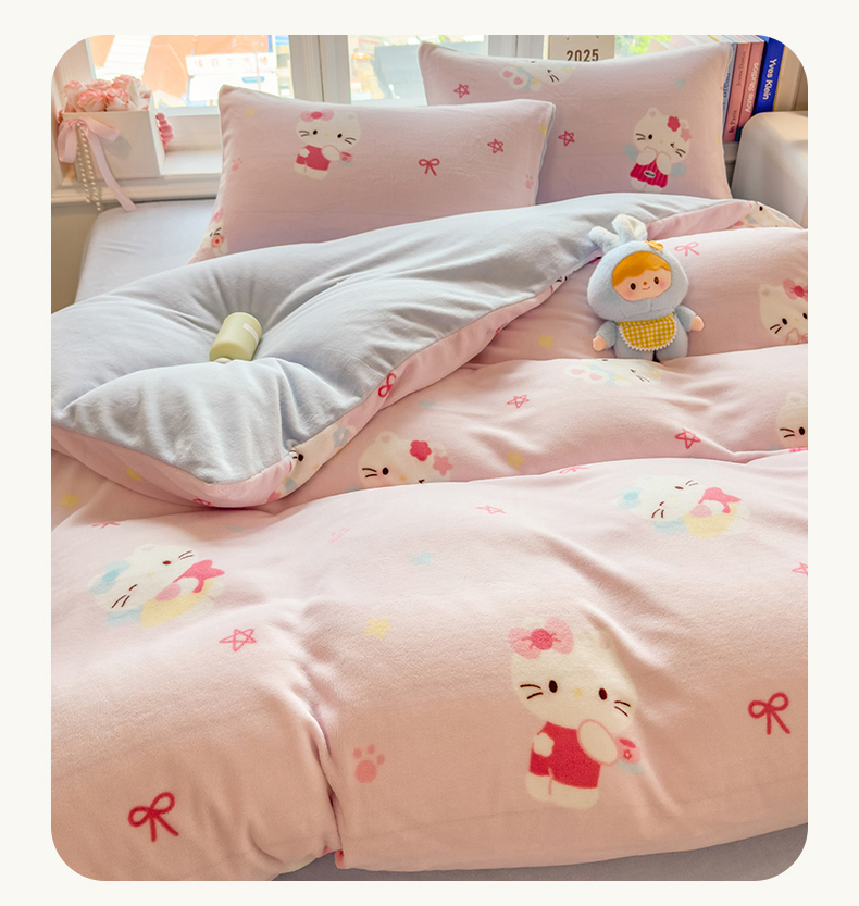 当前位置: 91家纺网 > 商品网购 > 床品套件 > 四件套 > 牛奶绒四件套 > 摩妮卡 摩妮卡 2025新款加厚款小清新牛奶绒印花四件套床单款床笠单被套 凯蒂粉梦