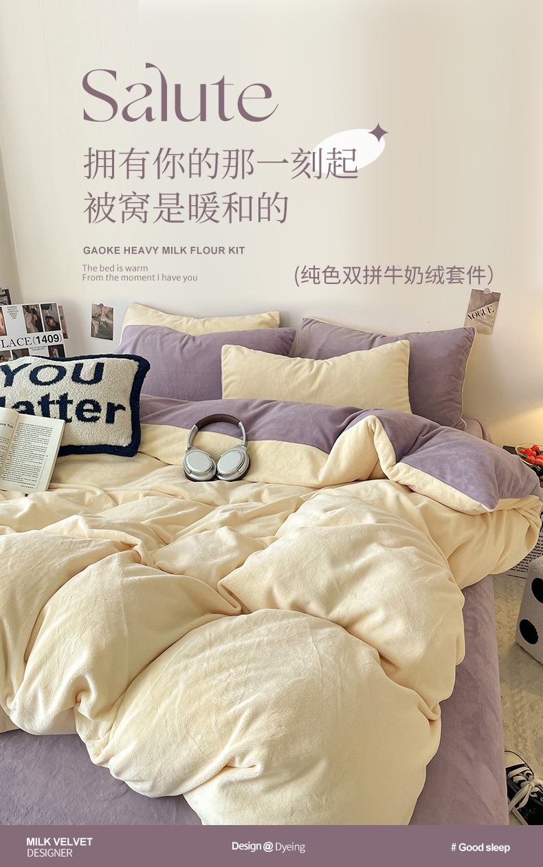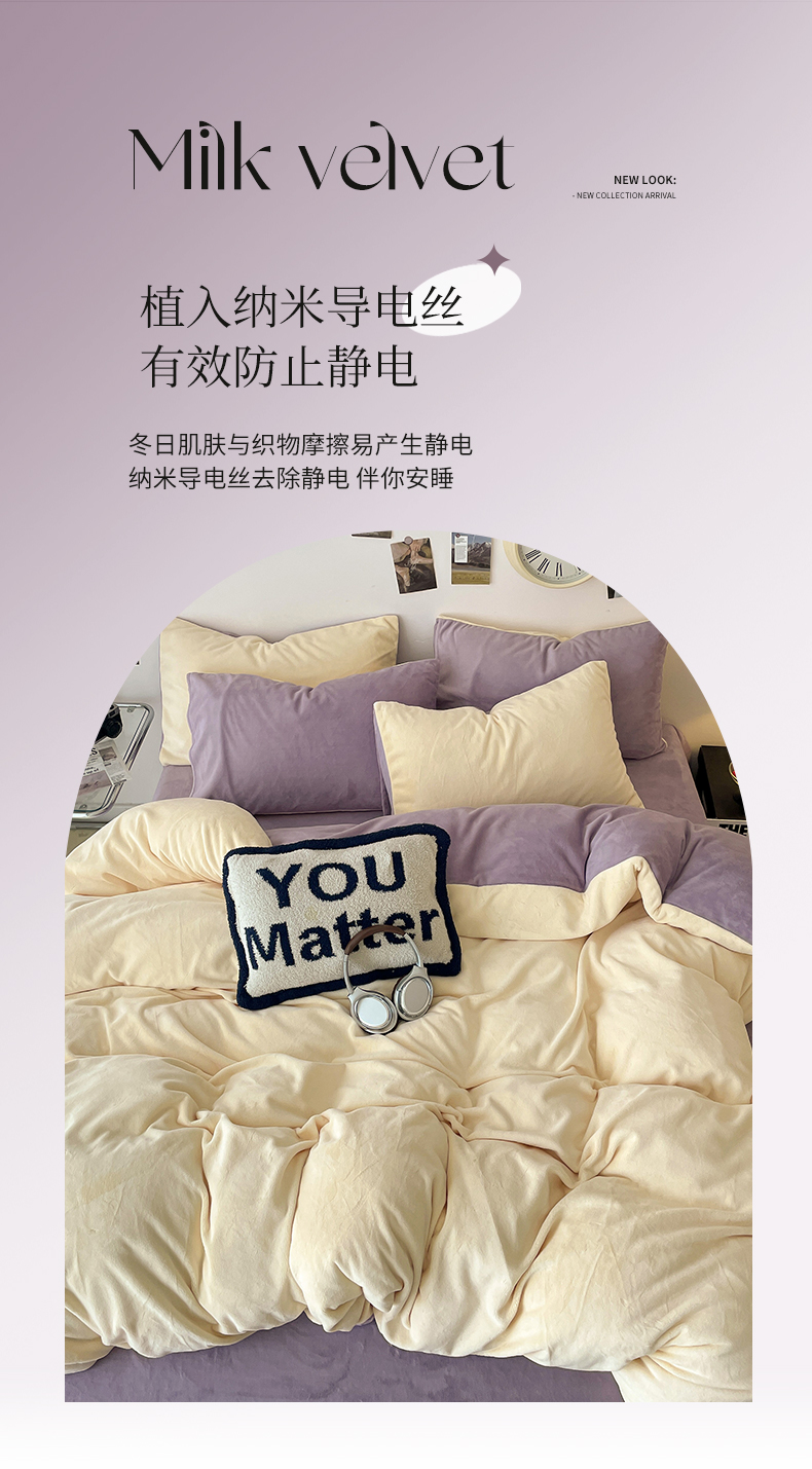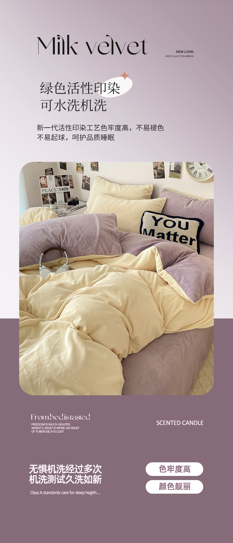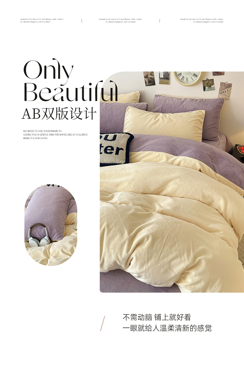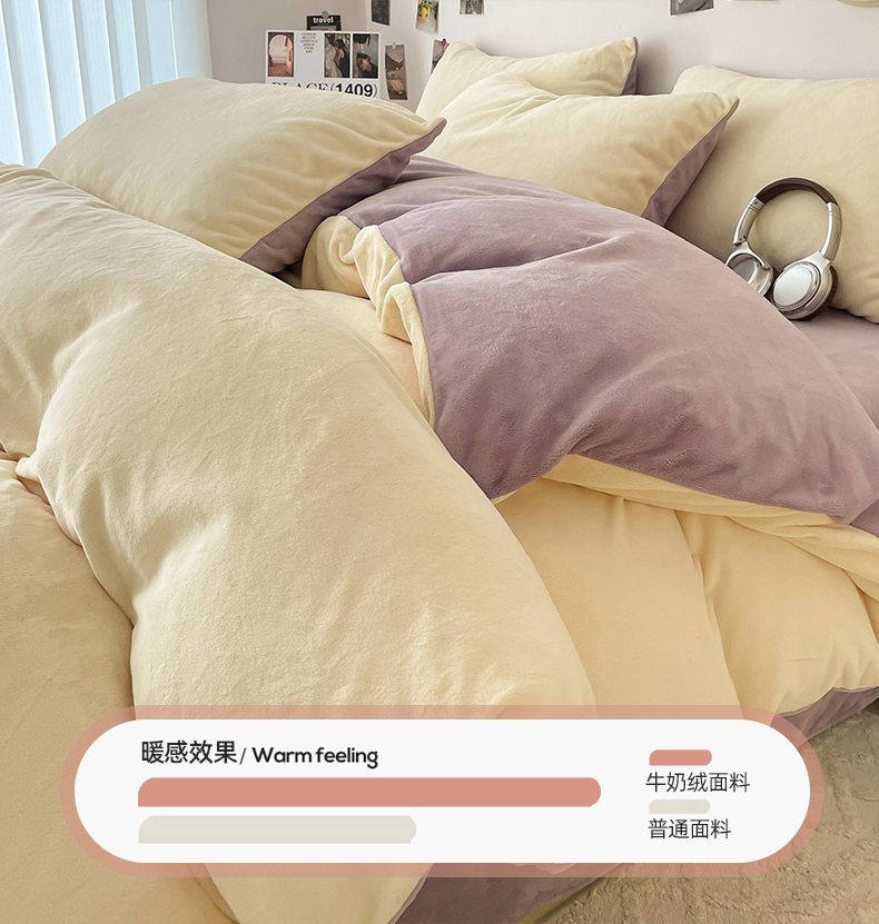 当前位置: 91家纺网 > 商品网购 > 床品套件 > 四件套 > 牛奶绒四件套 > 顺兴家居 2025新款简约纯色双拼牛奶绒四件套(风格一) 奶昔黄+罗兰紫