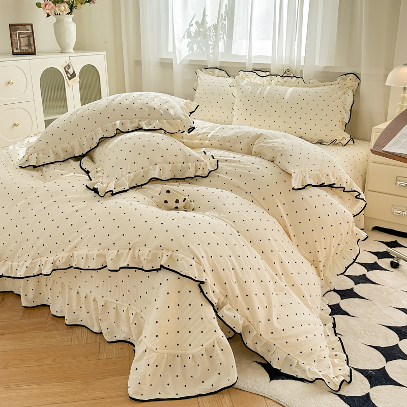 商品名称:尚美 2025新款法式小黑边云感四件套床盖款 爱心粉