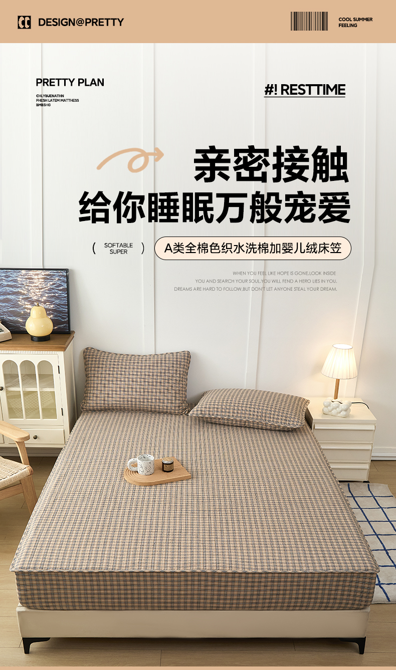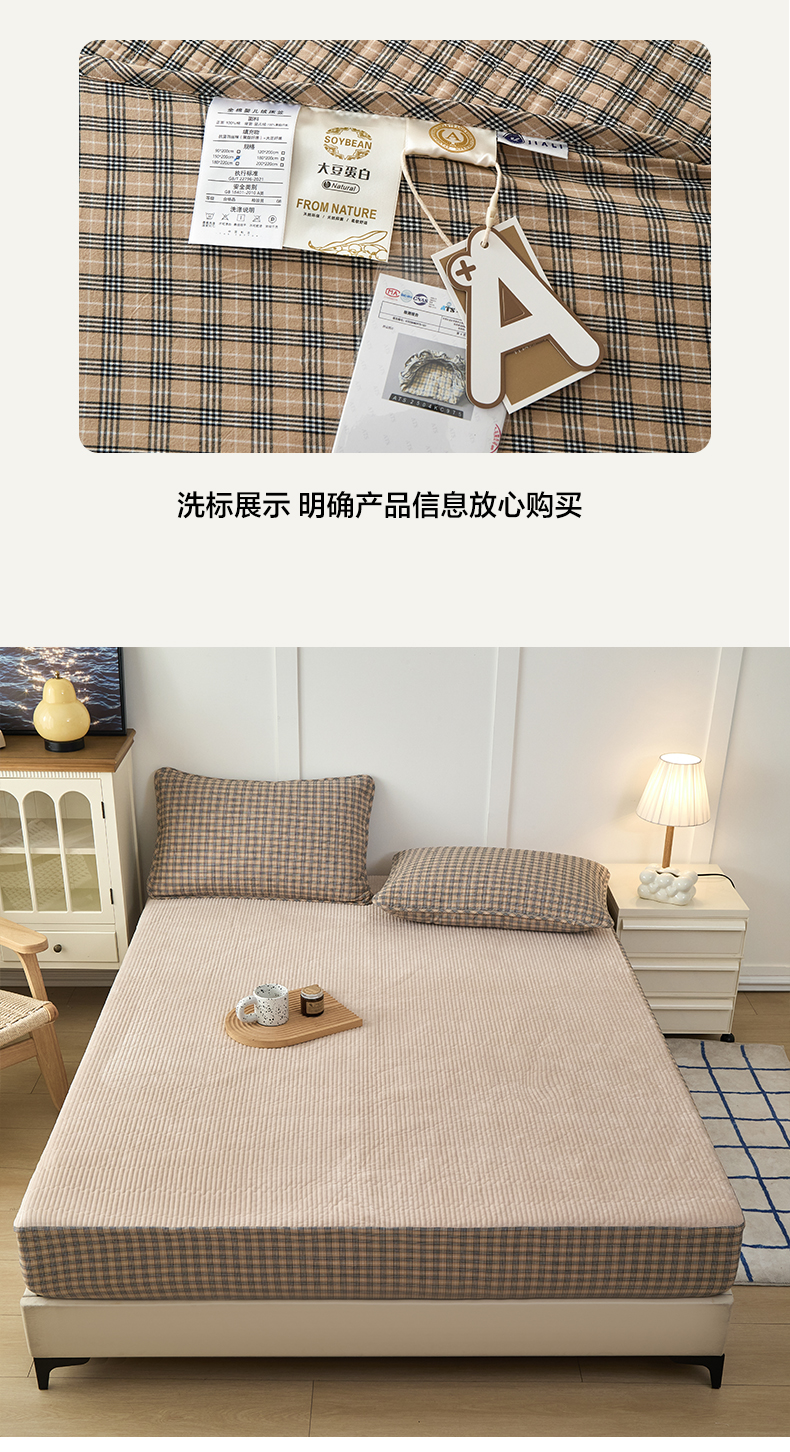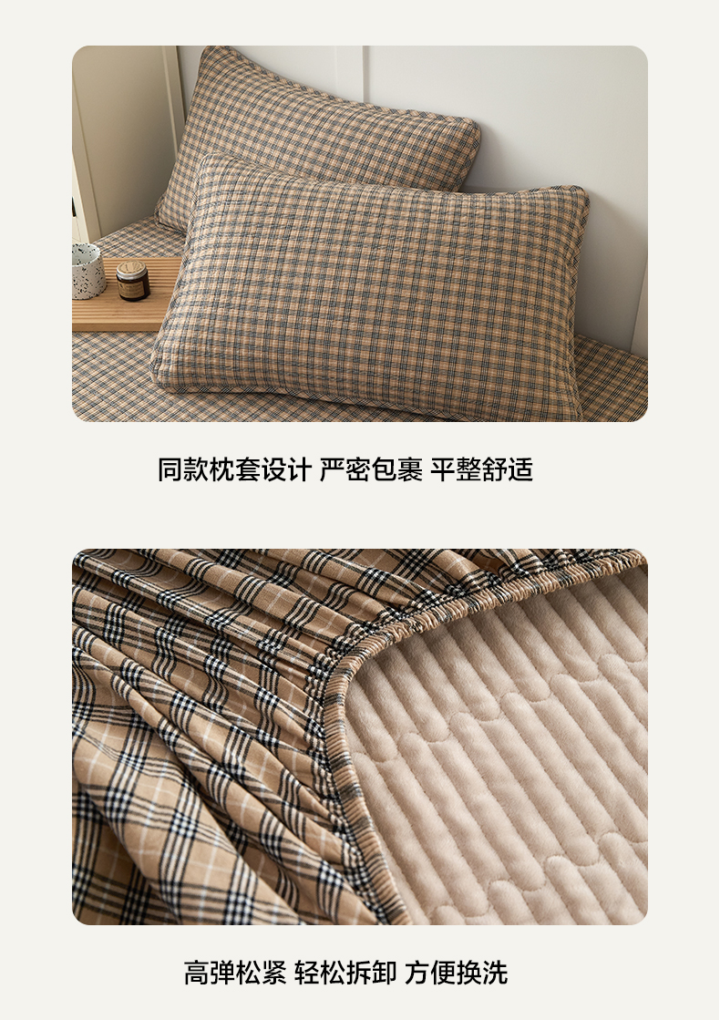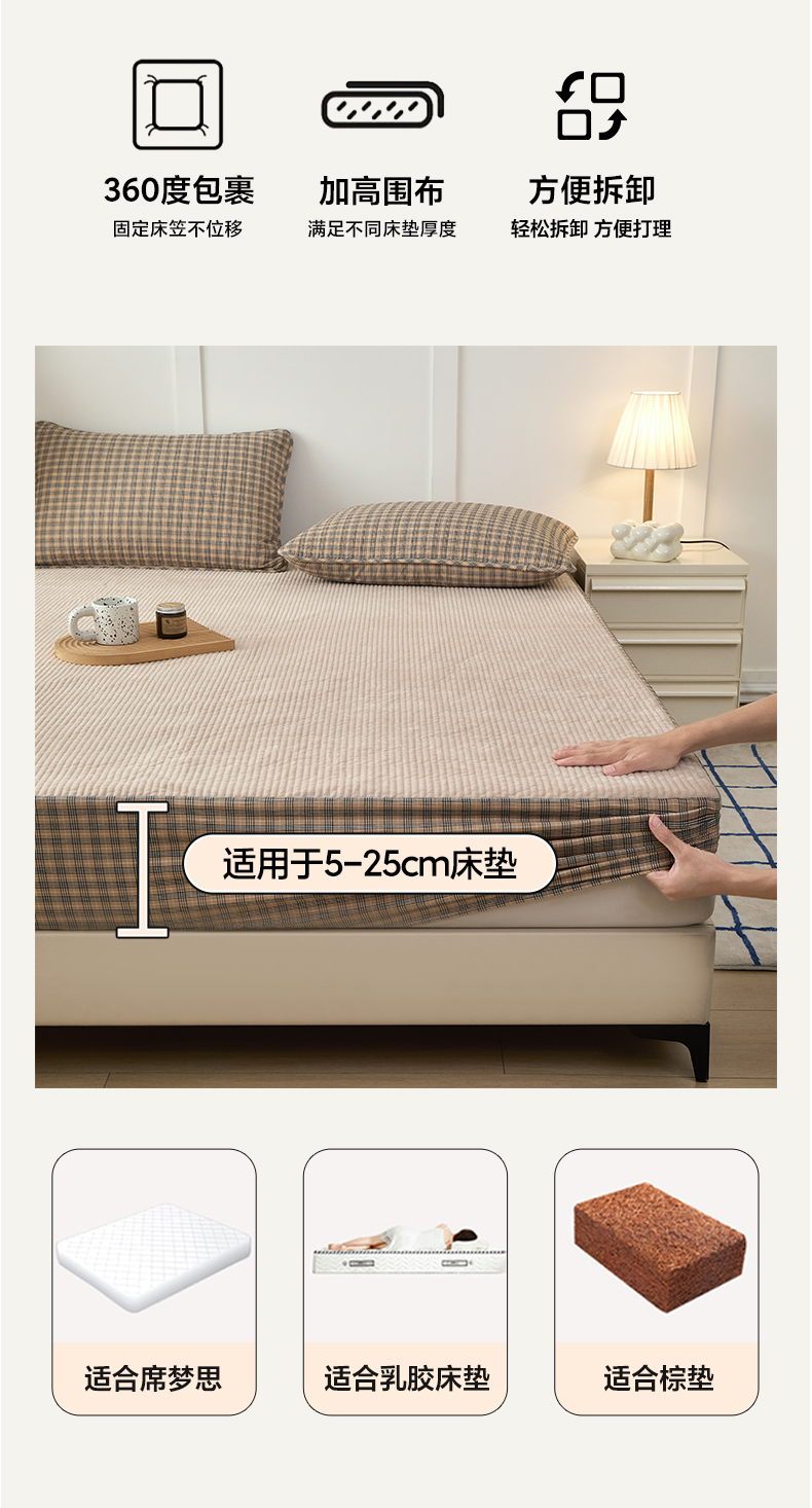 商品名称:佳笠家居 2025新款全棉纯棉水洗棉小格子加婴儿绒床笠单床笠单品床笠单件床笠 暖绒-卡其格