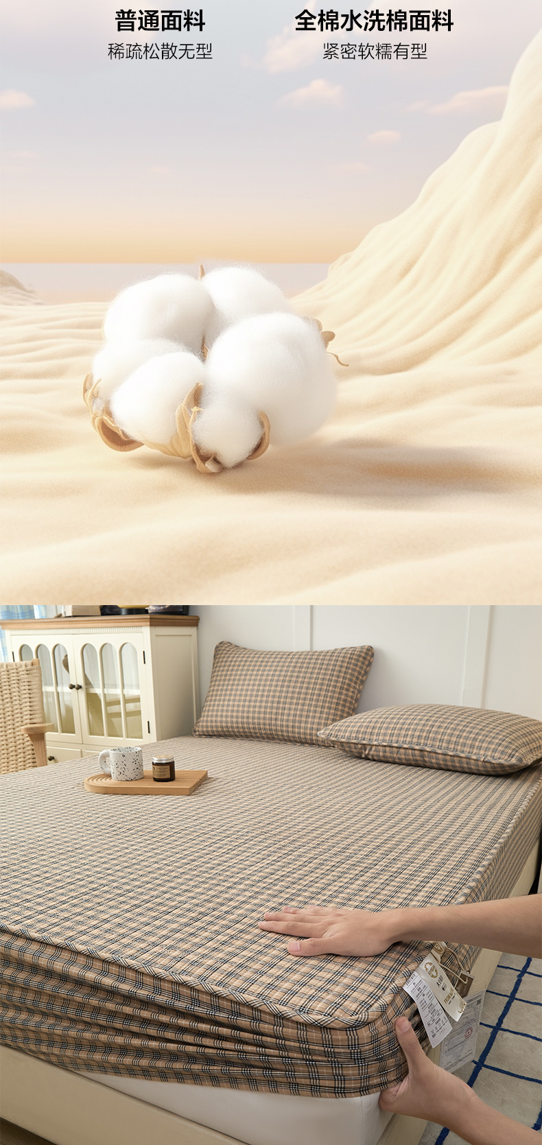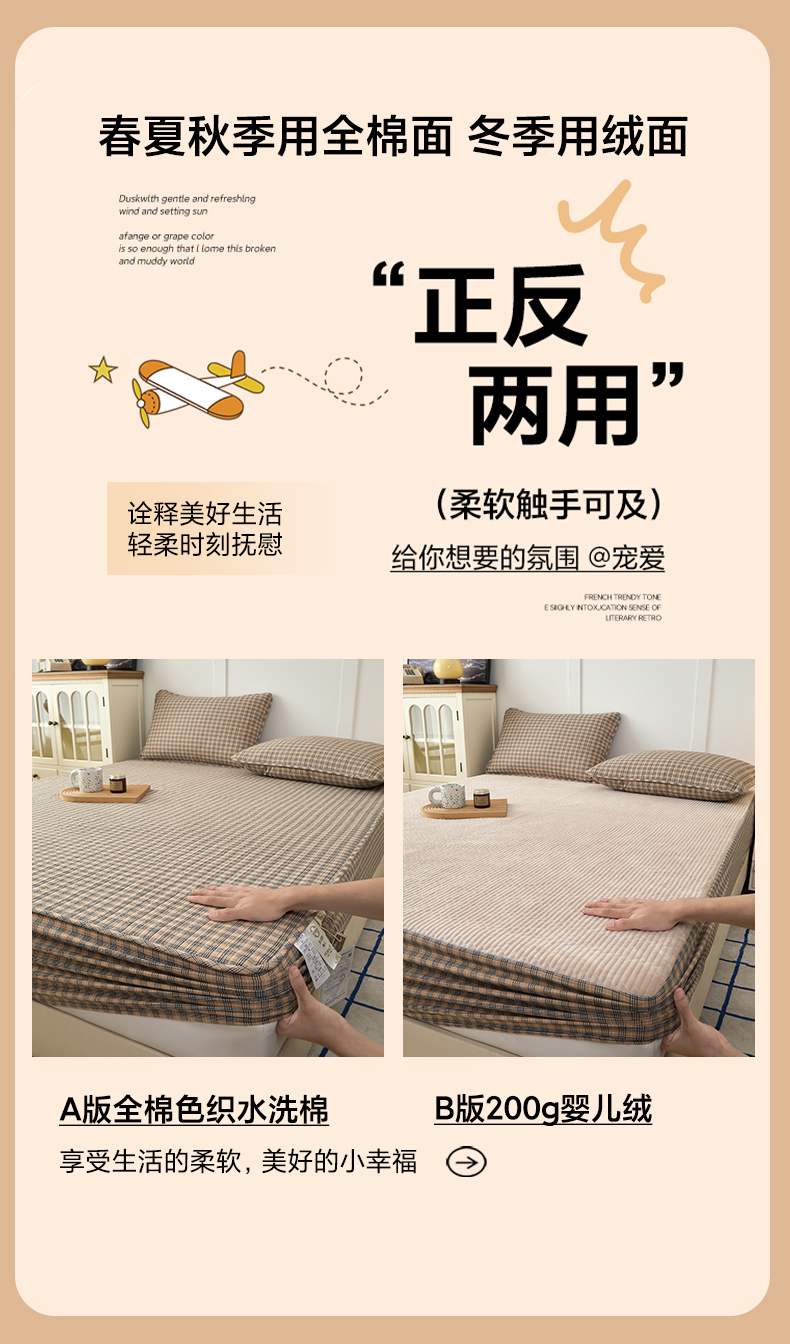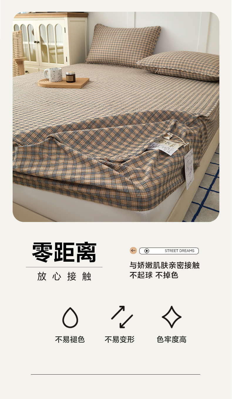 商品名称:佳笠家居 2025新款全棉纯棉水洗棉小格子加婴儿绒床笠单床笠单品床笠单件床笠 暖绒-卡其格
